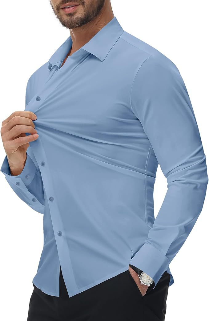 Слабая четырехсторонняя эластичная рубашка мужская шелковистая без горячих мышц стройная мужская эластичная рубашка Amazon
