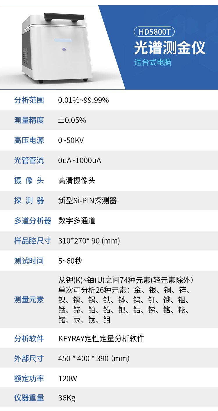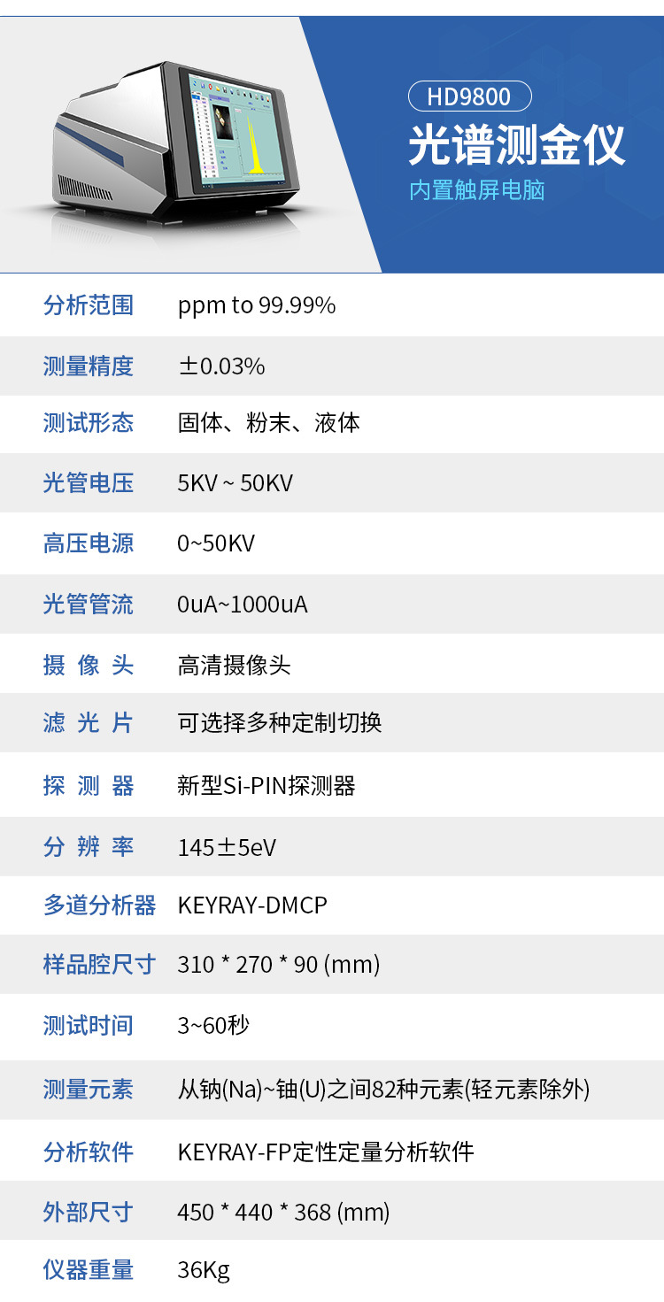 Спектроскопический измеритель золота Полноэлементный анализатор флуоресцентного анализа драгоценных металлов