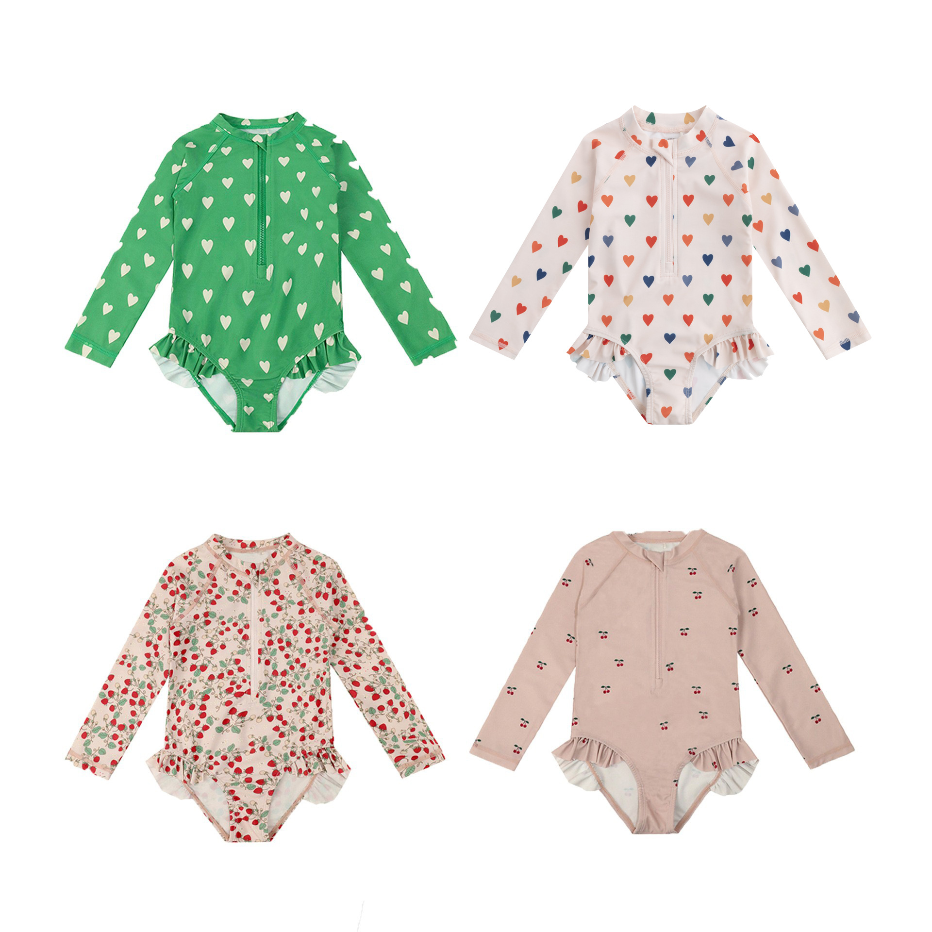 Цельный маленький вишневый купальник для девочек [бесплатная шапочка для плавания того же цвета]; Цельное изумрудно-зеленое сердечко для девочек [бесплатная шапочка для плавания того же цвета]; Цельный клубничный цветок для девочек [бесплатная шапочка для плавания того же цвета]; Цельные разноцветные сердечки для девочек [бесплатная шапочка для плавания того же цвета]; [Предзаказ] Детский слитный купальник для девочек с ярким принтом сердечек