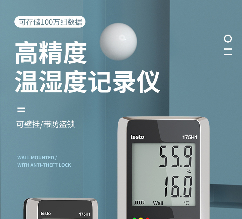 Регистратор температуры TESTO Destu 176T2/176H4 Экспорт данных измерений Регистратор температуры для пищевых продуктов Холодная цепь