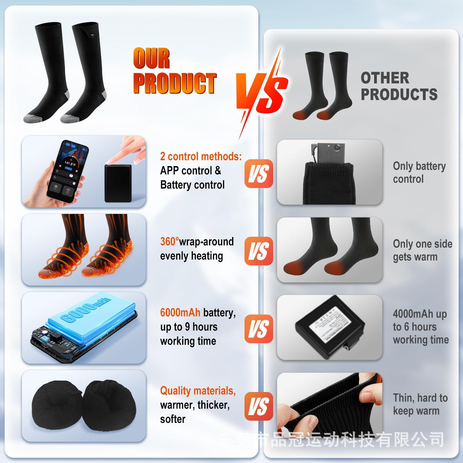 Трансграничный смартфон APP6000 мАч с контролем температуры нагрева носки с электрическим подогревом на открытом воздухе лыжи с подогревом носки
