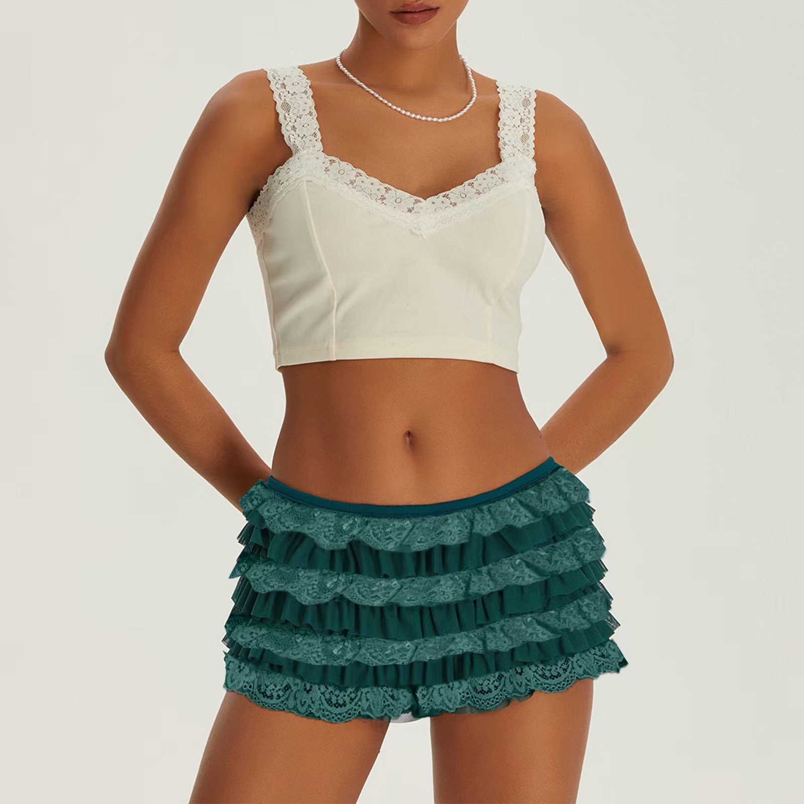 Трансграничные европейские и американские сексуальные новые модные удобные четыре слоя кружева кружева три слоя кружева сетчатые торты шорты