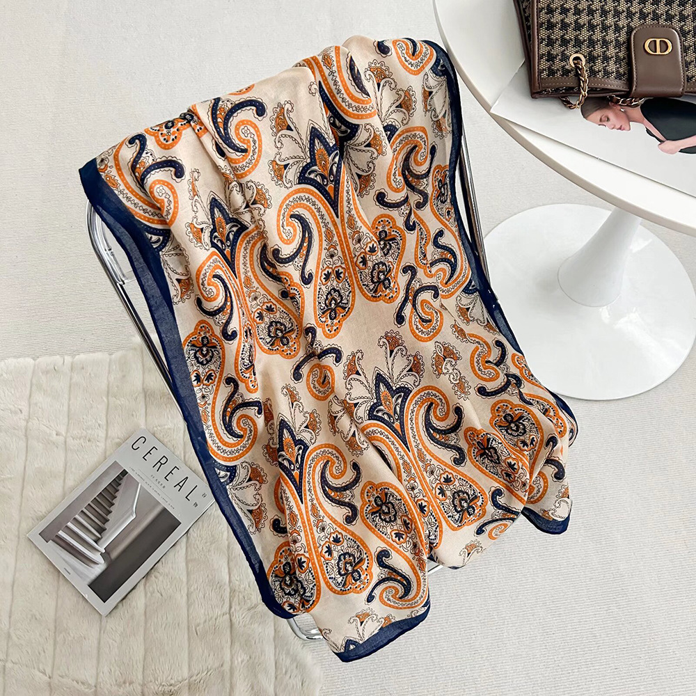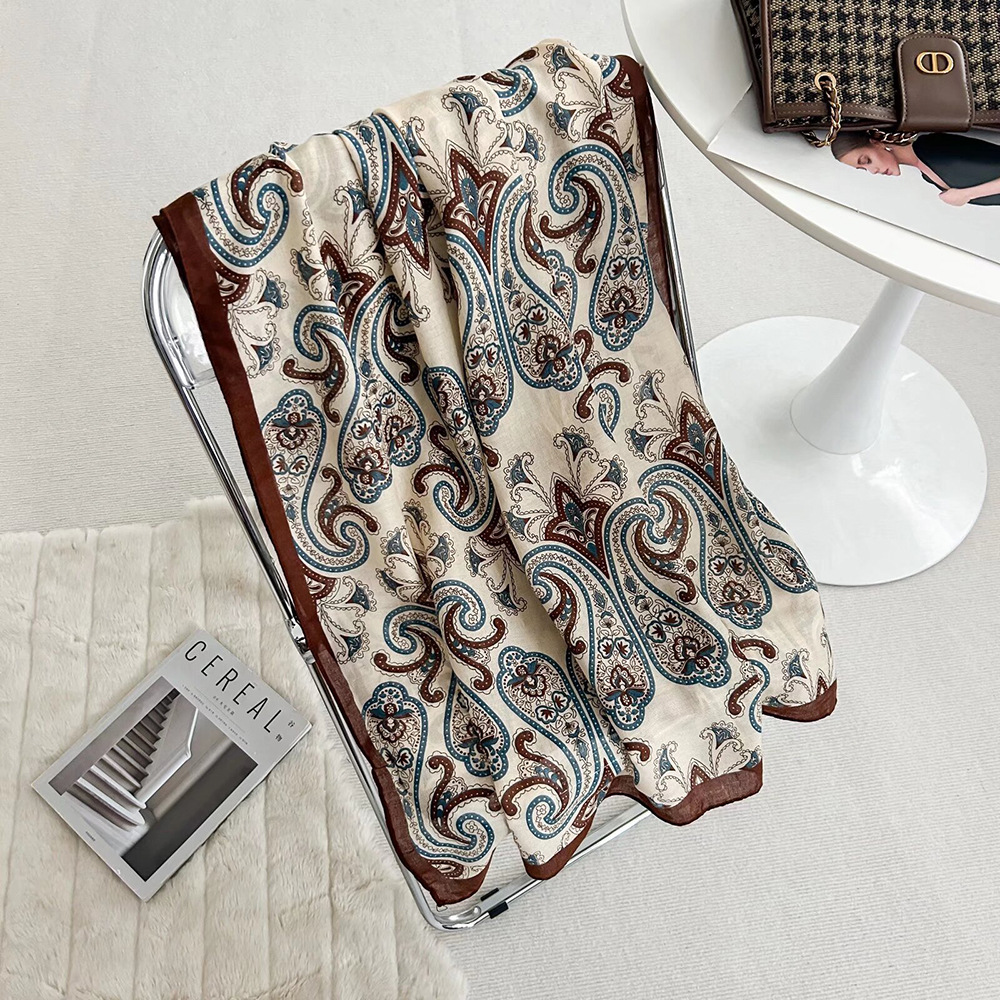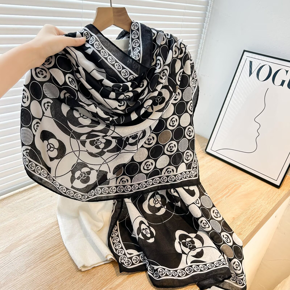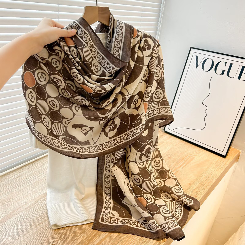 2025 Новый весенний и осенний хлопок и льняное длинное полотенце кешью Qianpiry горный камелия модный элемент шарф женская мода шаль прилив