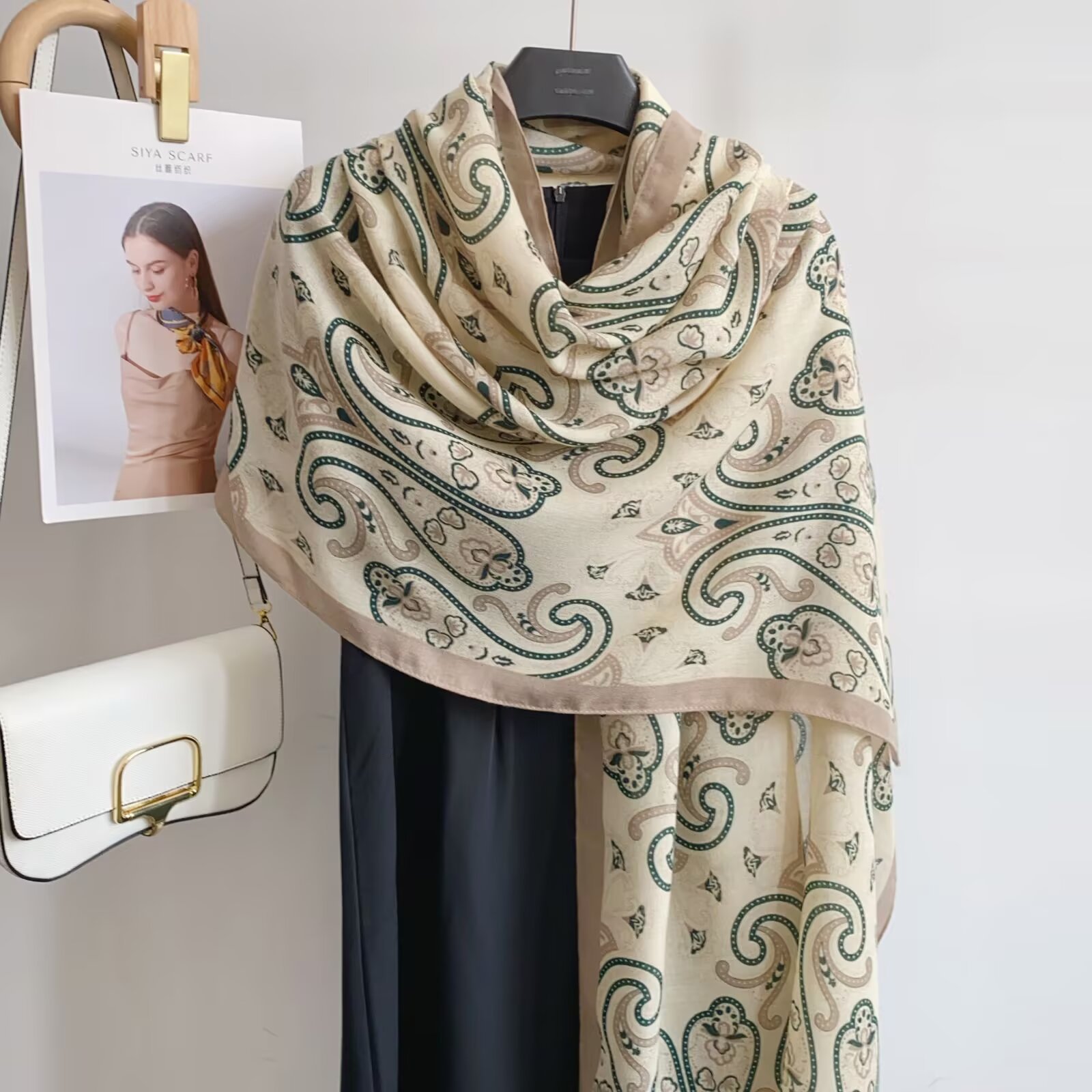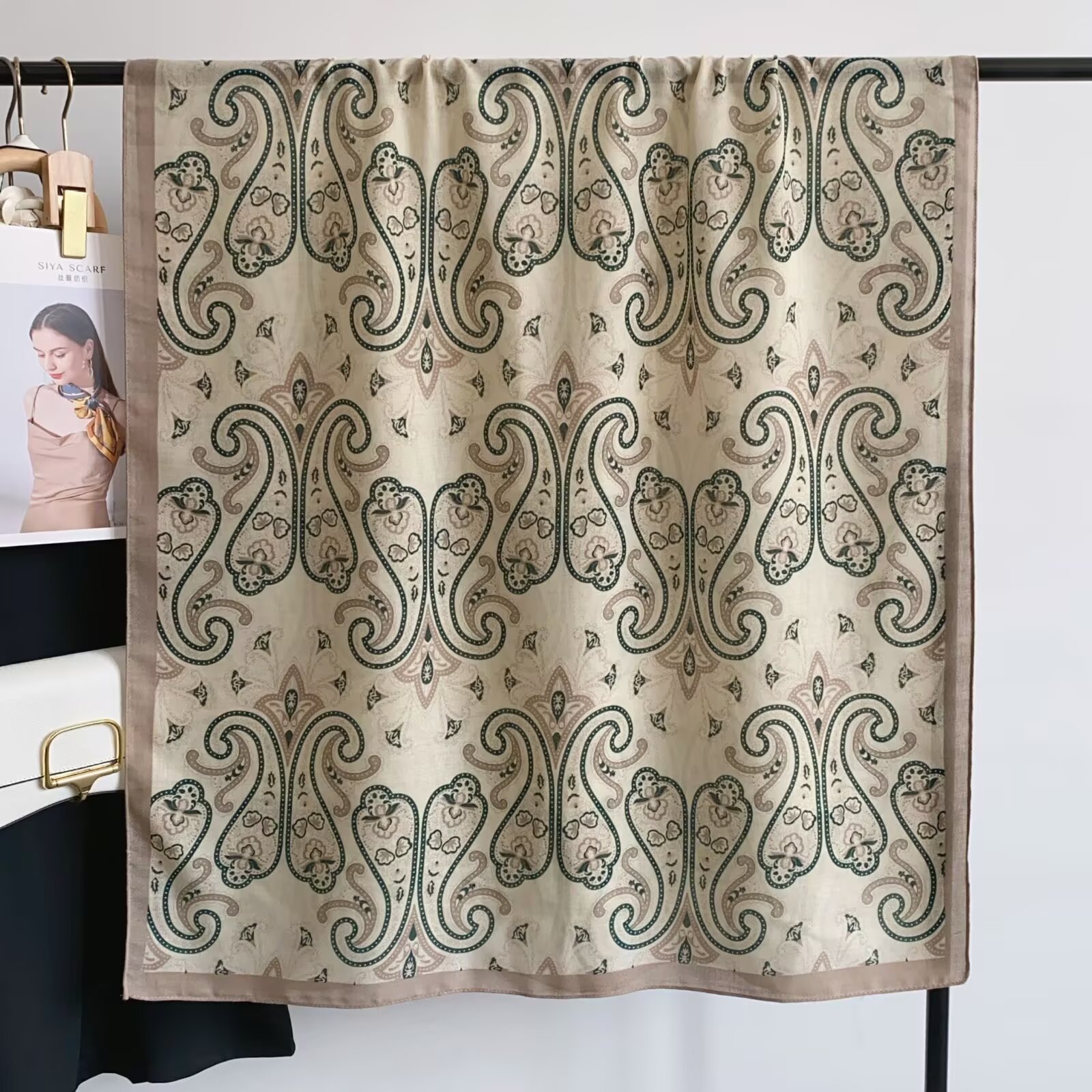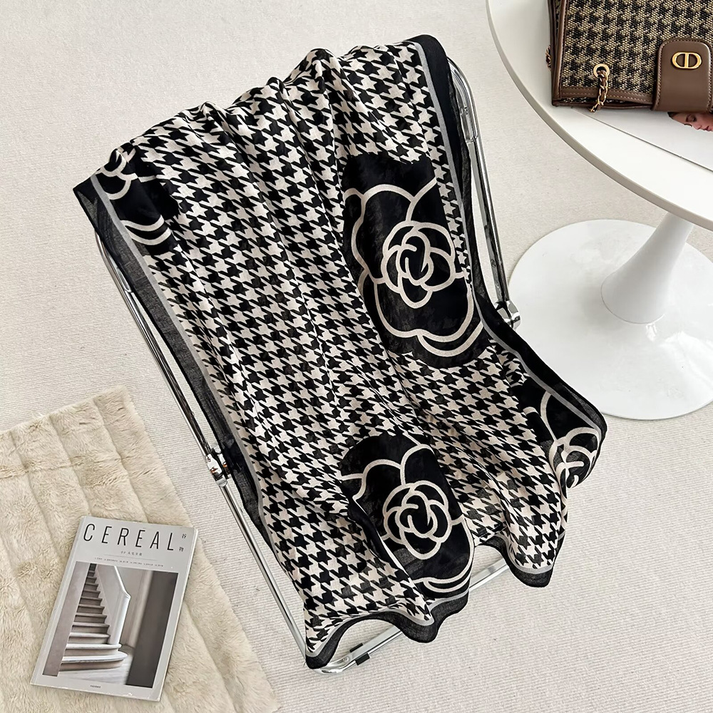 2025 Новый весенний и осенний хлопок и льняное длинное полотенце кешью Qianpiry горный камелия модный элемент шарф женская мода шаль прилив