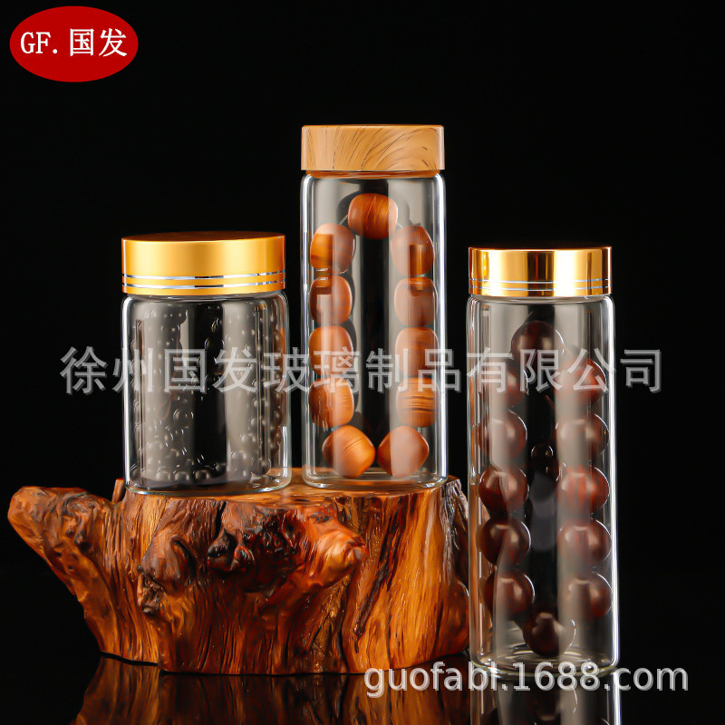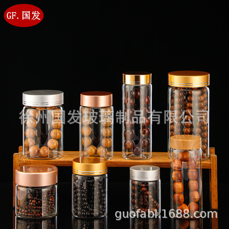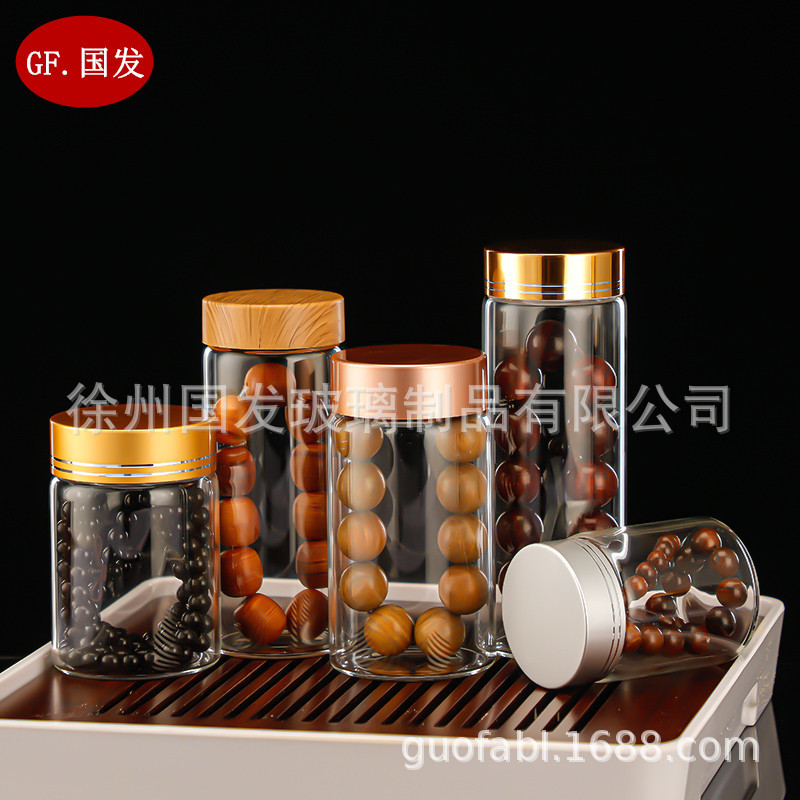 Высококачественный браслет из агарового дерева/сандалового дерева, высокоборосиликатное стекло, широкая бутылка с розовым деревом, банка для хранения бусин Будды, прозрачная печать