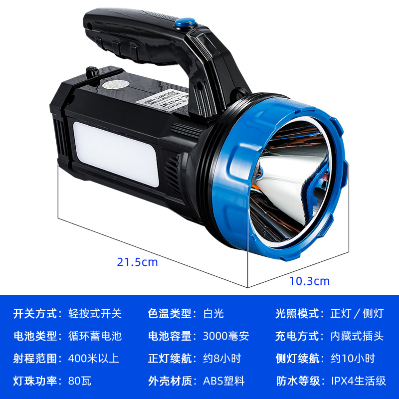 Sisen сильный свет светодиодный большой портативный фонарик с боковым фонариком зарядка многофункциональный дальний пожарный аварийный прожектор