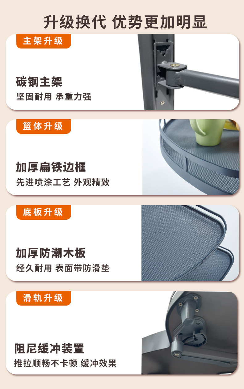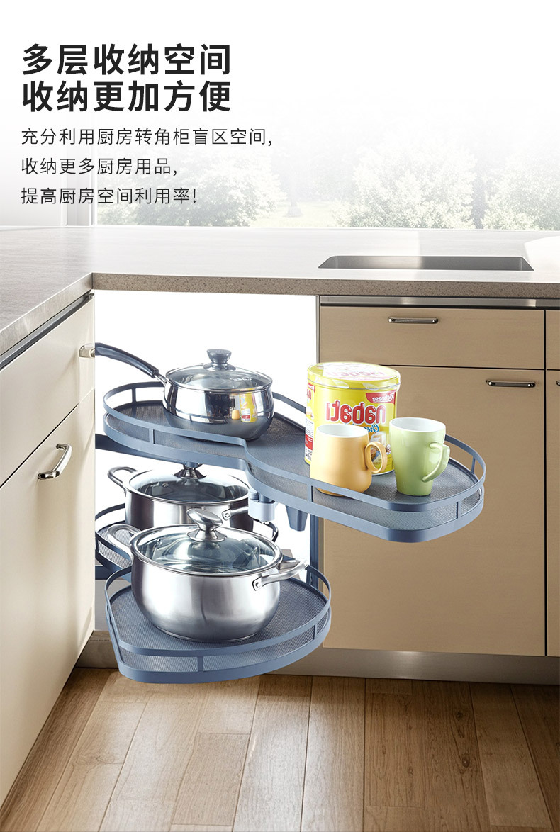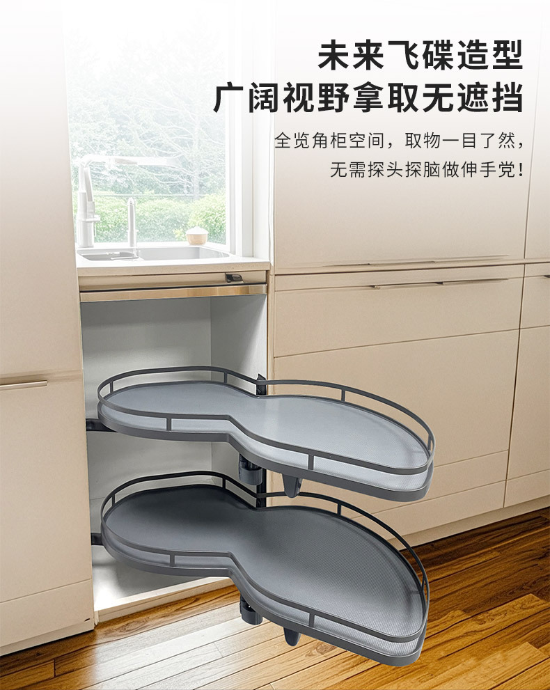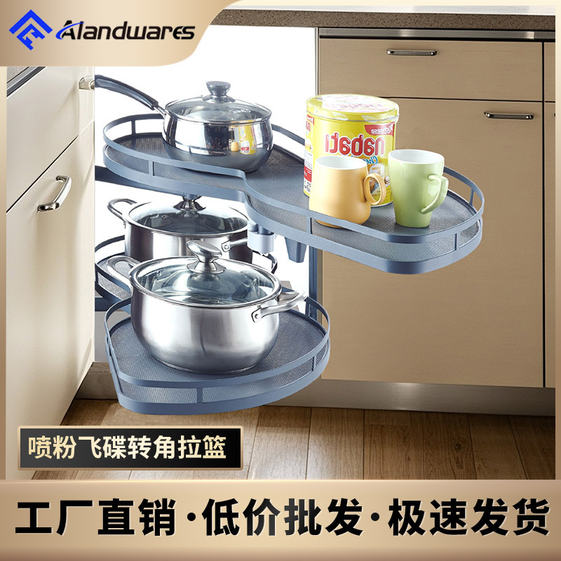 Выдвижная угловая корзина для кухни, выдвижная корзина UFO, двухуровневая полка для хранения с направляющими, угловая выдвижная корзина с демпферным механизмом.