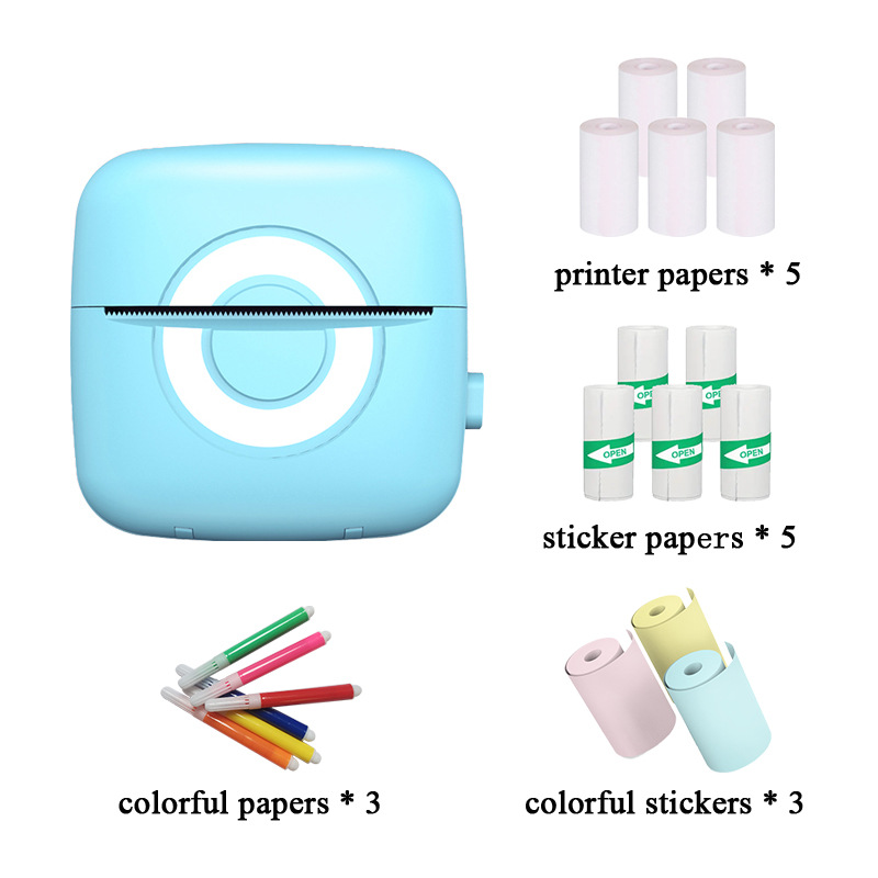 Розовый [стандартная-с рулоном бумаги]; Синий [стандартная-с рулоном бумаги]; Розовая 5 рулонов бумаги для печати 5 рулонов наклейки 3 рулона цветной бумаги (6 палок); 5 рулонов синей бумаги для печати 5 рулонов наклейки 3 рулона цветной бумаги цветной ручки (6 палок)