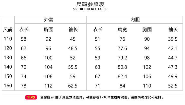 110cm; 120cm; 130cm; 140cm; 150cm; 160cm; 170cm