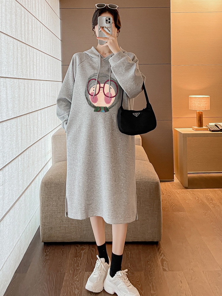 Весеннее платье для беременных модная мама новая мода повседневная свободная толстушка с капюшоном длинная юбка весна и осень юбка для беременных