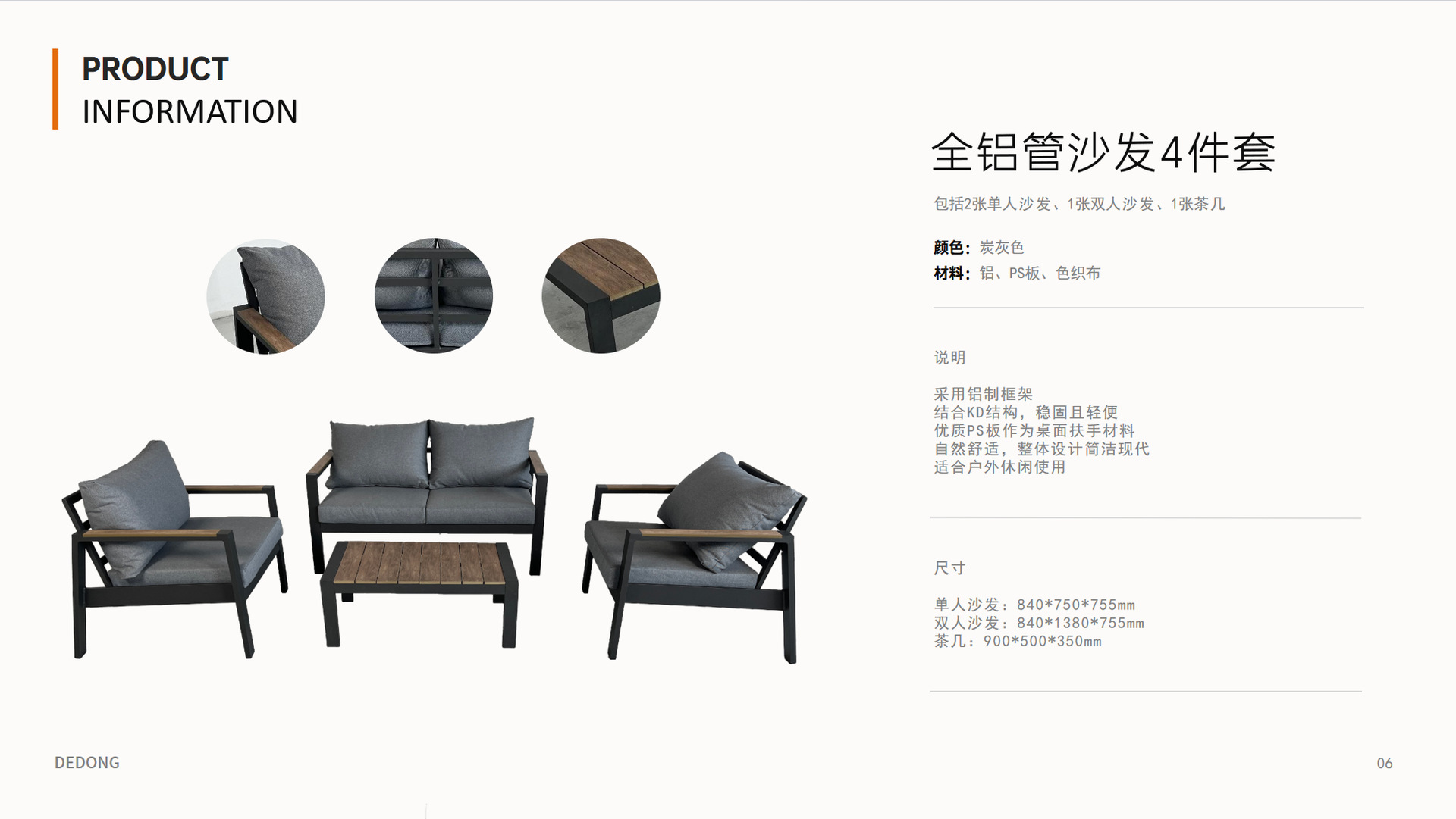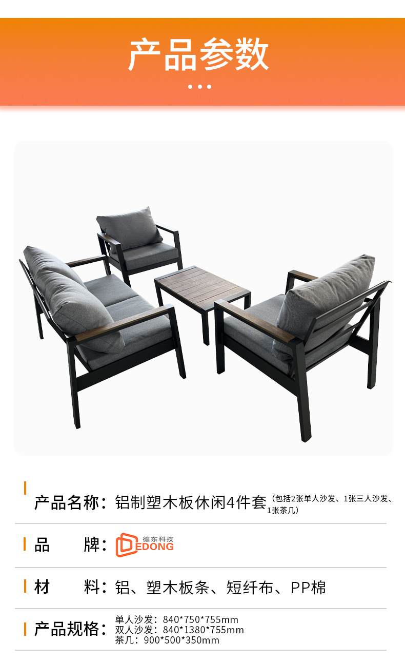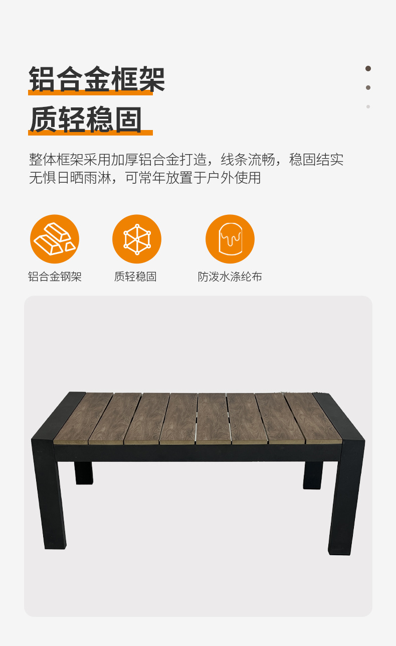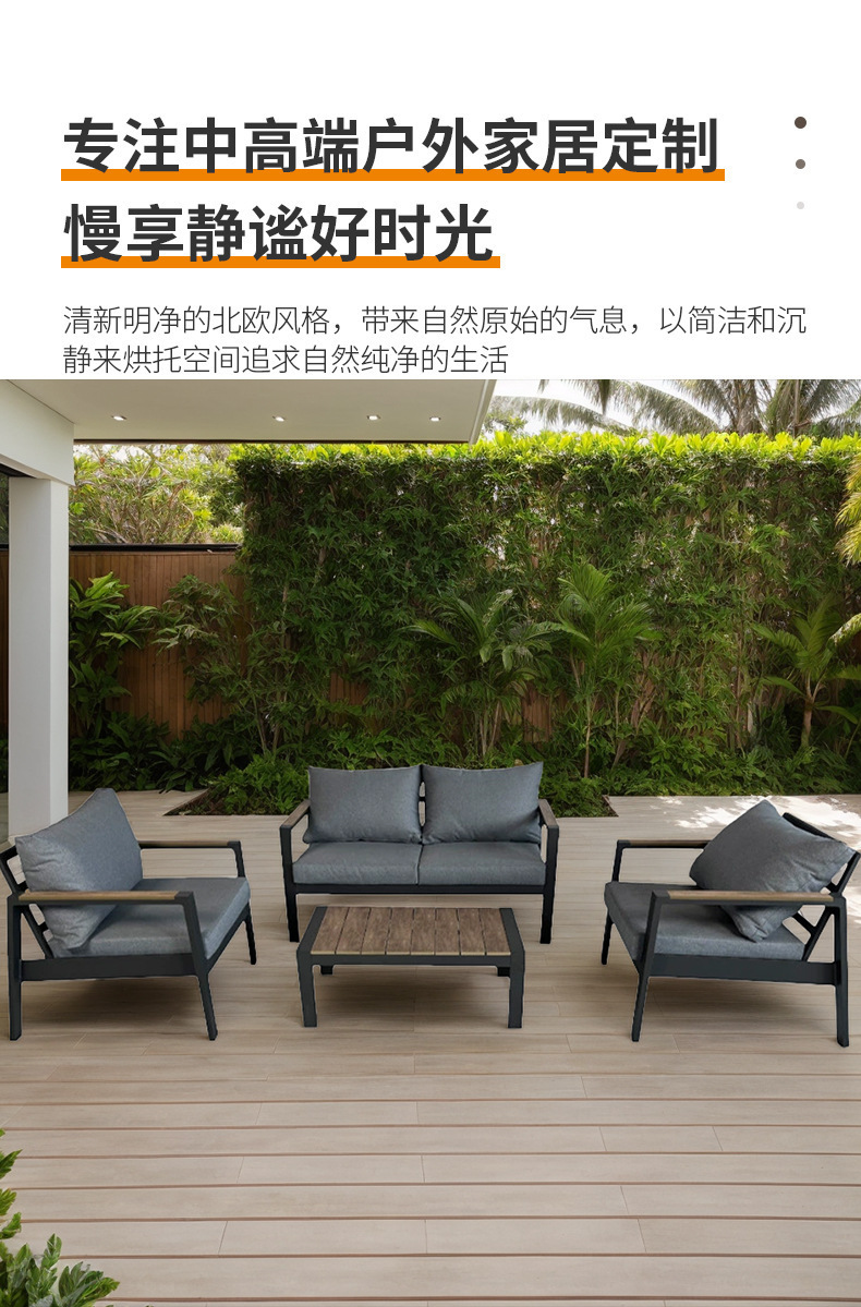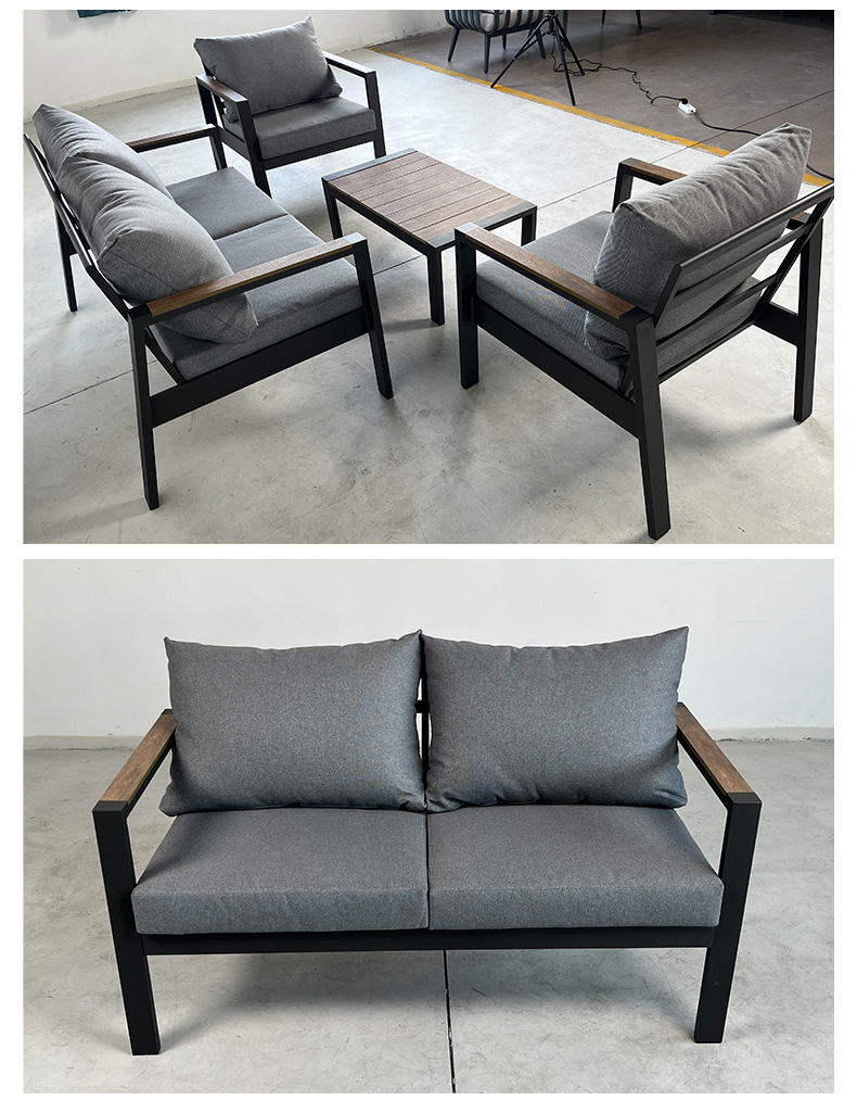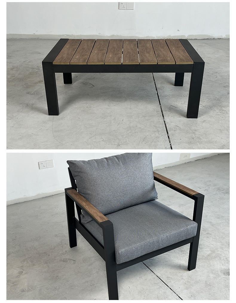 Открытый одноместный двойной диван внутренний дворик Открытый водонепроницаемый солнцезащитный крем Терраса сад алюминиевый сплав повседневный журнальный столик Мебель