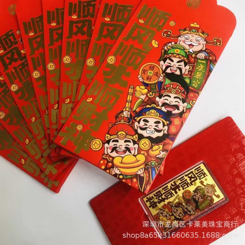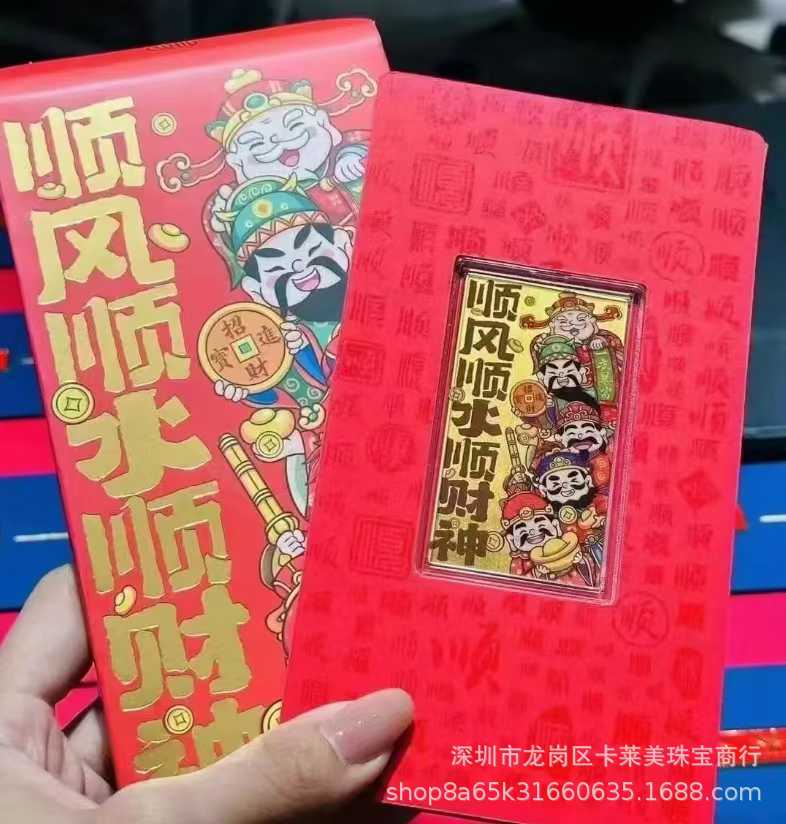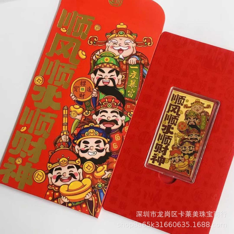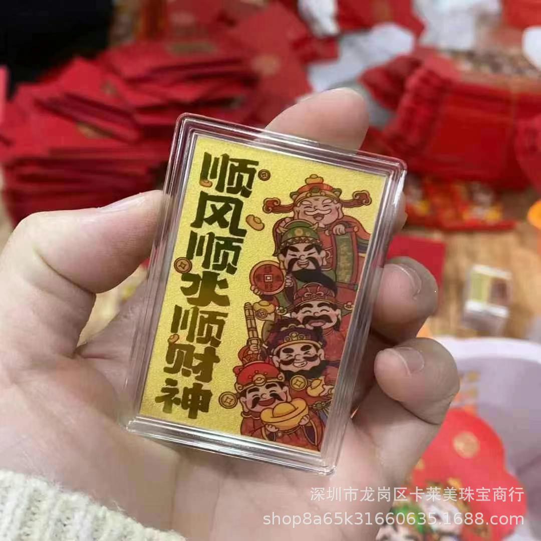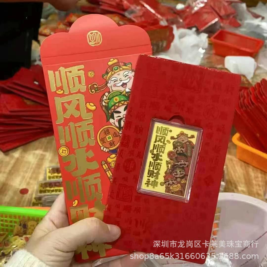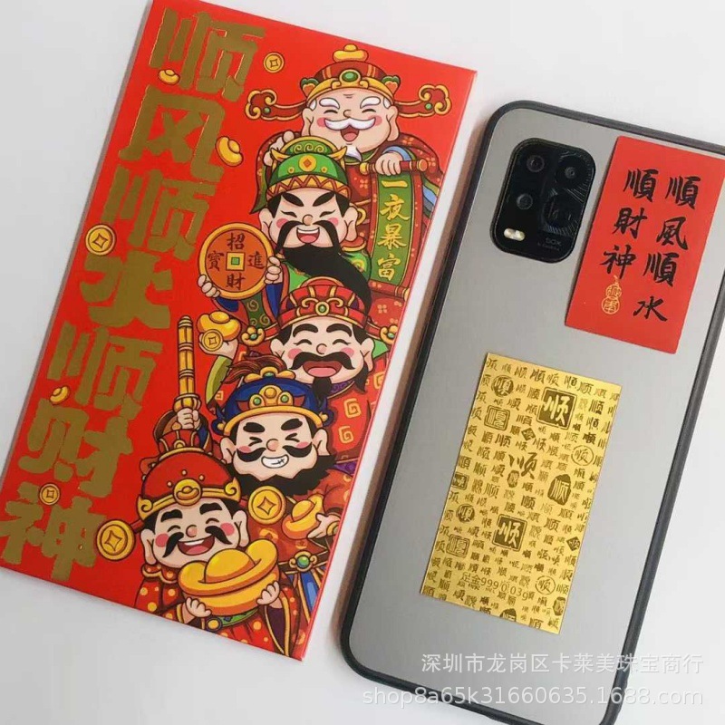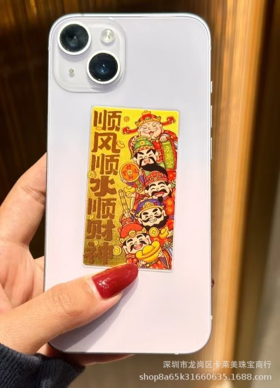Наклейки на телефон из чистого золота 999 пробы, гладкая парусность и богатство, золотой бог богатства в пяти направлениях, красные конверты на Новый год, прямая трансляция, оптовая продажа.