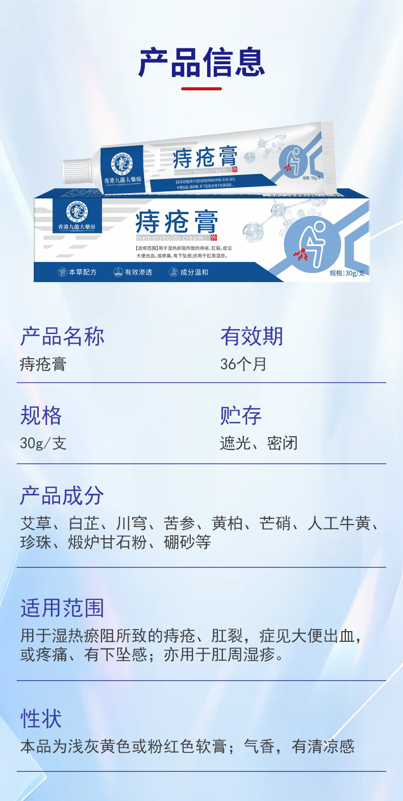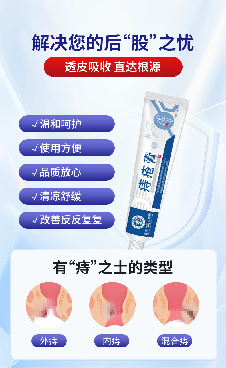 Гонконгская аптека Крем от геморроя Травяная формула устраняет мясные гранулы и отек анального отверстия Производитель крема Sophora Angustifolia Оптовая продажа