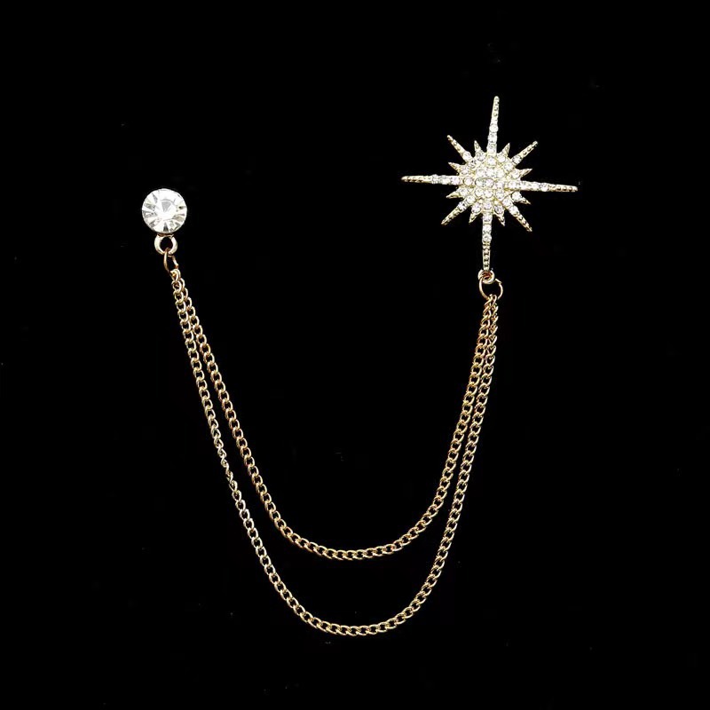 Мужской костюм Корейская коронная брошь Корейская версия цепной воротник костюм пятиконечная звезда брошь минималистичный аксессуар