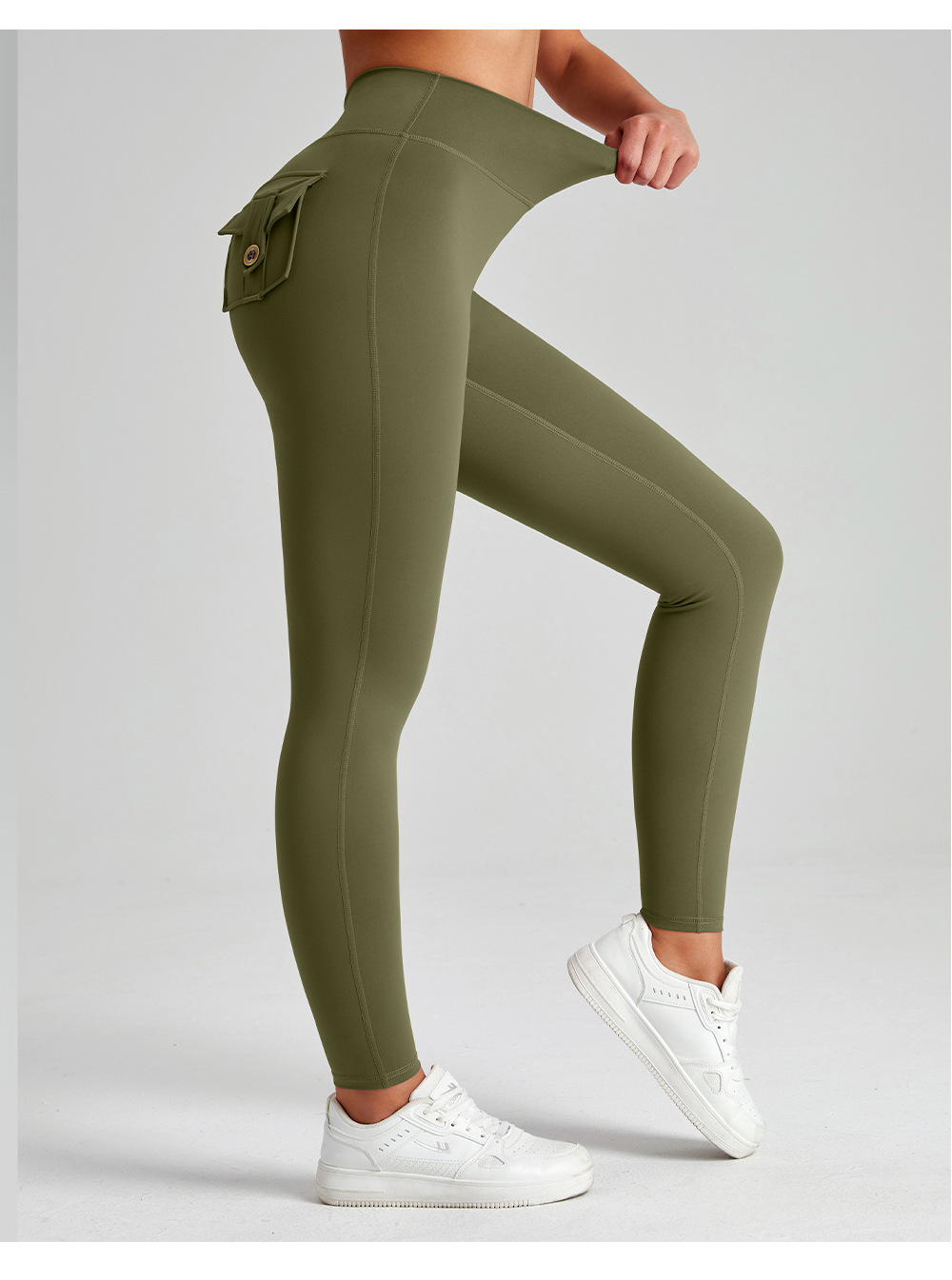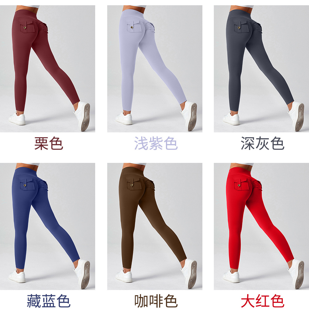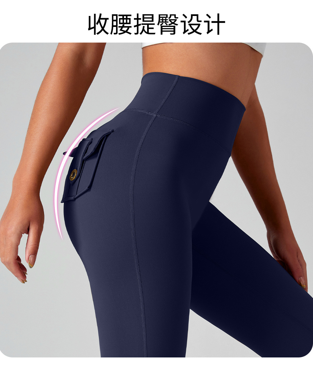 Карманные персиковые бедра фитнес-штаны для йоги женские с высокой талией и обнаженными бедрами
