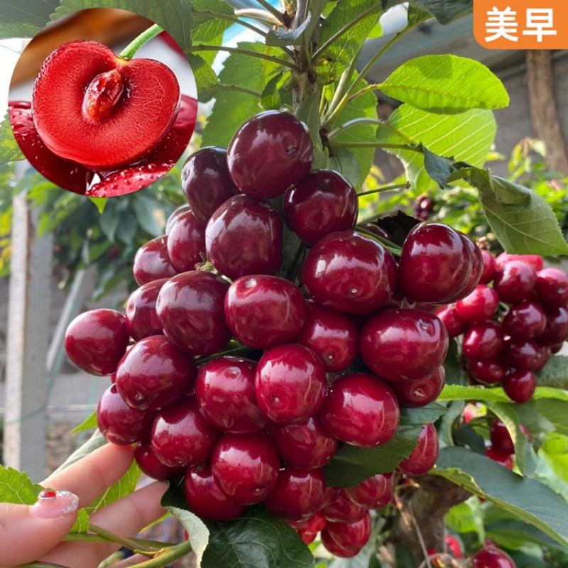 Саженцы вишни, саженцы вишневых деревьев, южные и северные посадки фруктовых деревьев в горшках во дворе, гномьи вишневые деревья, большие саженцы вишни.