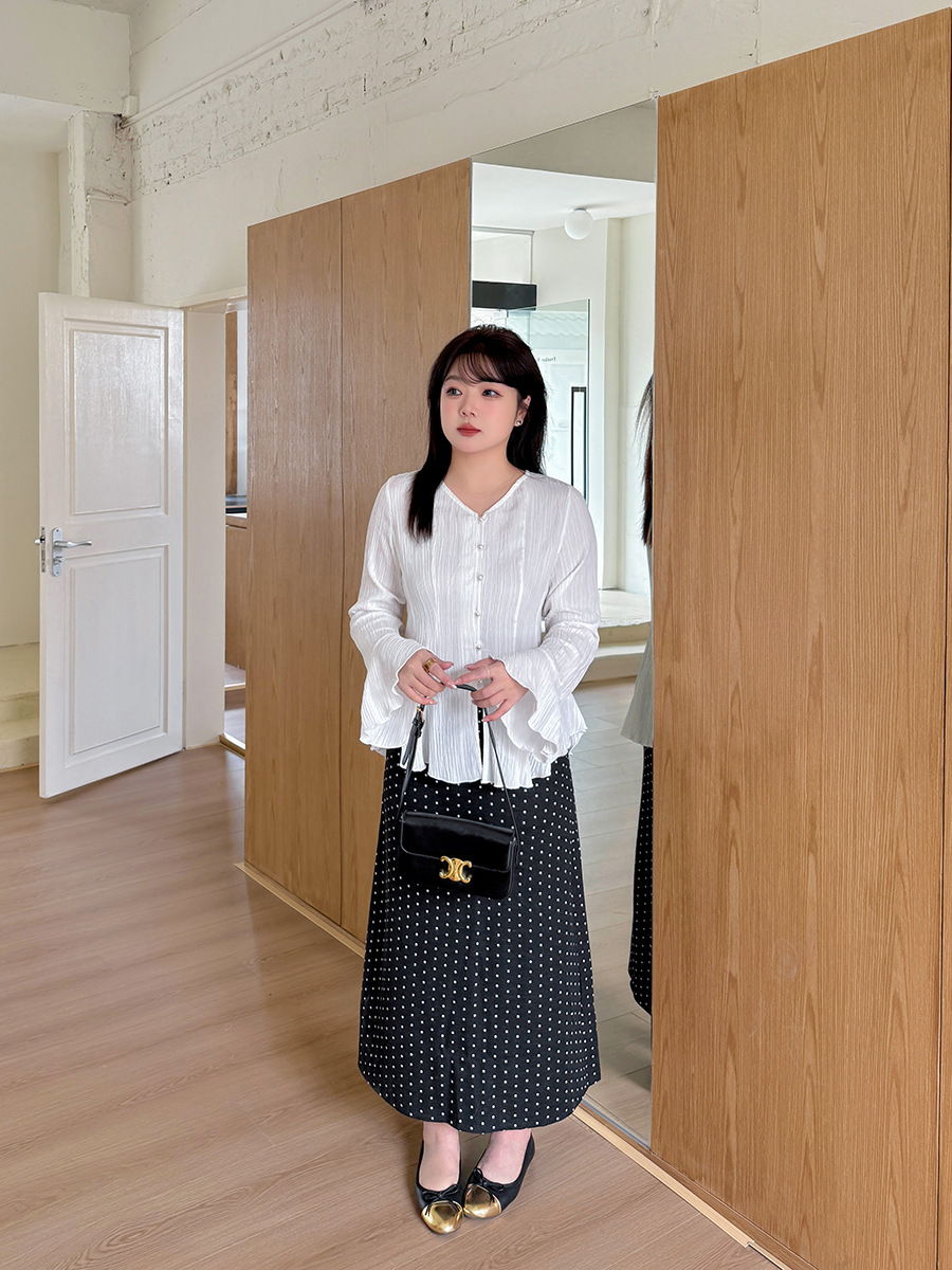 Двойной день 2025 новый весенний большой размер женской одежды удобный сладкий 200 кг жирный мм подковы рукава рубашка L338