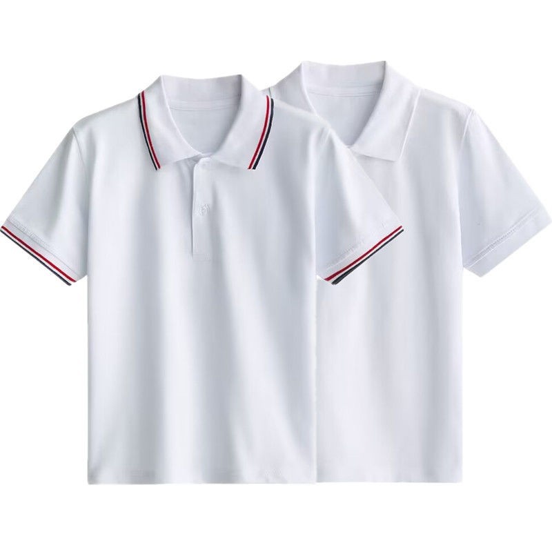 Футболка-поло для летней школьной формы с эластичным воротником и манжетами, горизонтальная машинная ребристая отделка