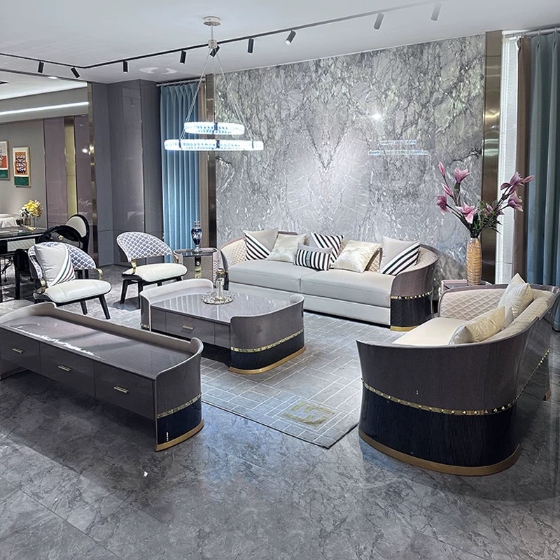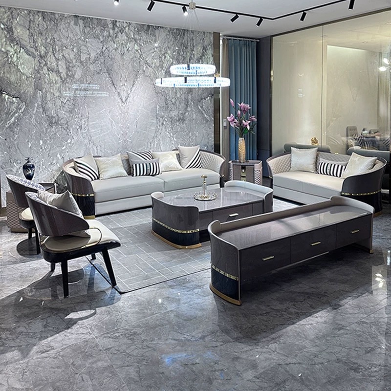 Современный легкий и роскошный кожаный диван высокого класса вилла пустая большая плоская гостиная большая квартира роскошная квартира роскошная итальянская простота
