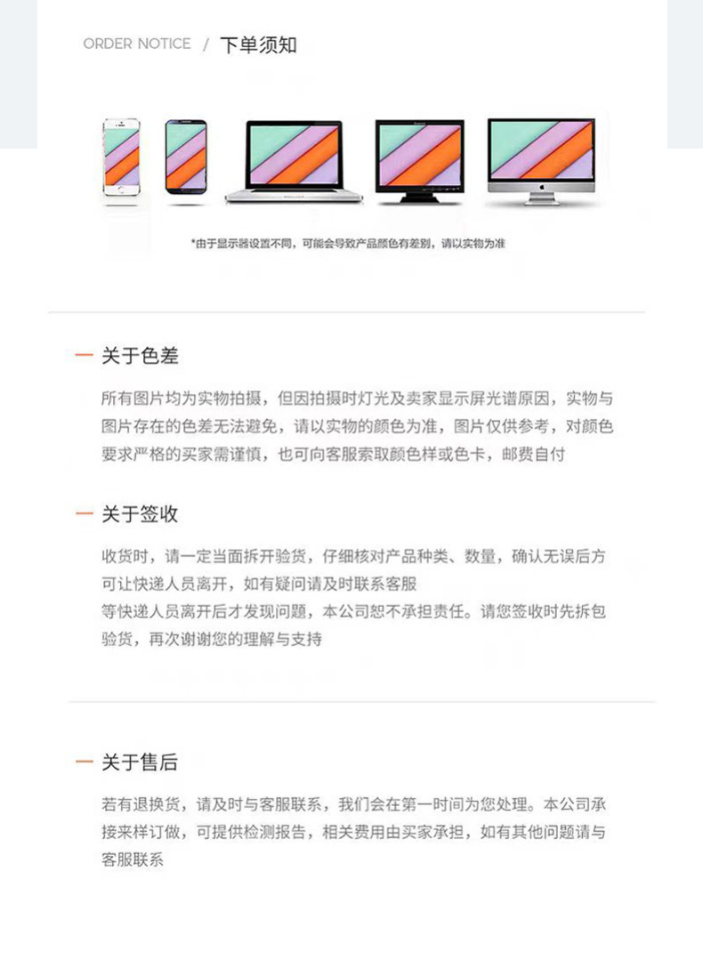 下单:由于产品特殊性,样板需要裁剪,下单前请联系客服,谢谢理解