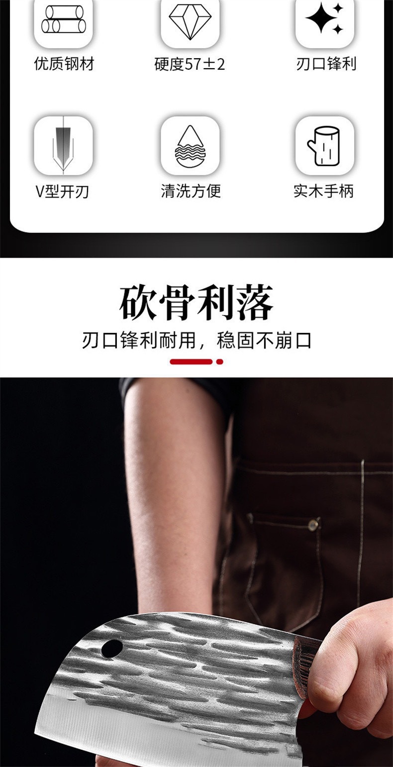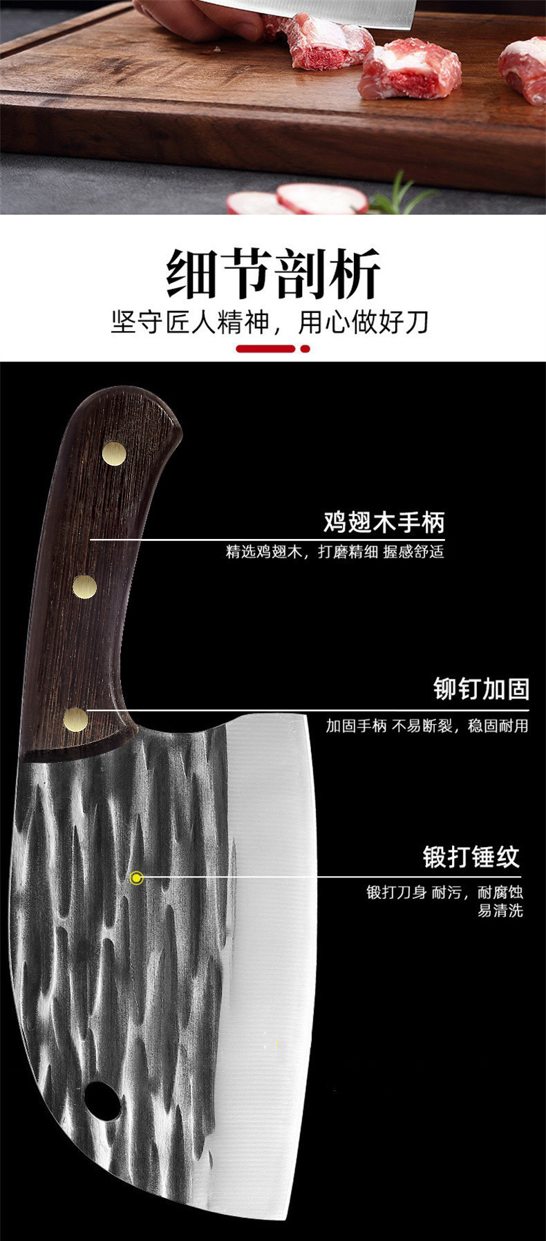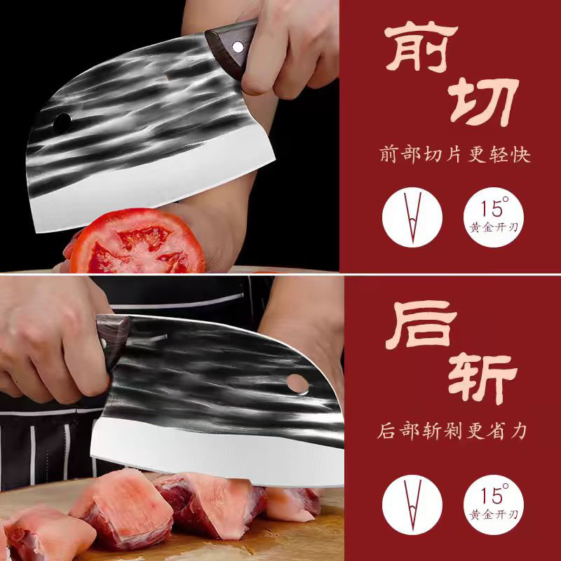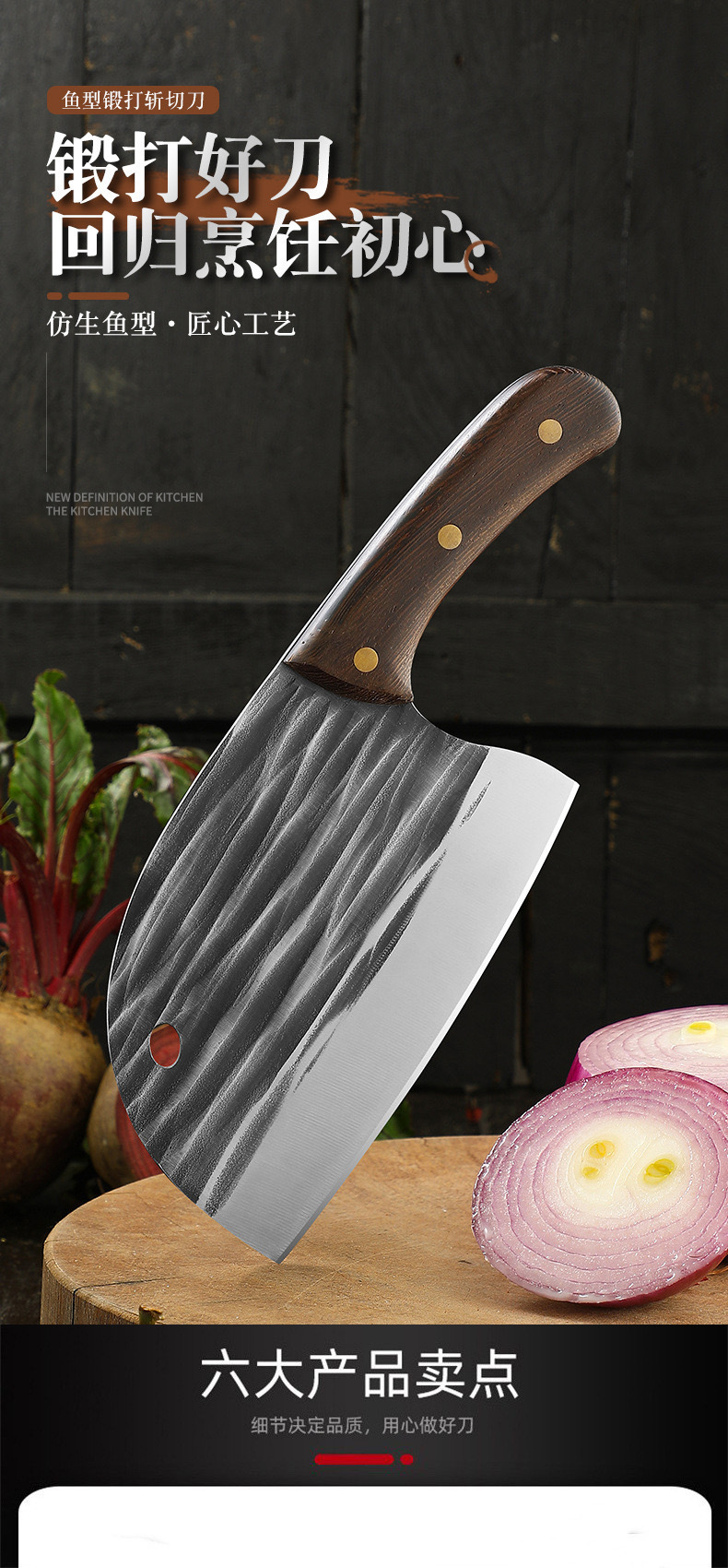 Кухонный нож ручной ковки для измельчения и нарезки, поварской нож двойного назначения для резки мяса, кухонный нож Longquan, нож для рыбной головы, специальная сталь.