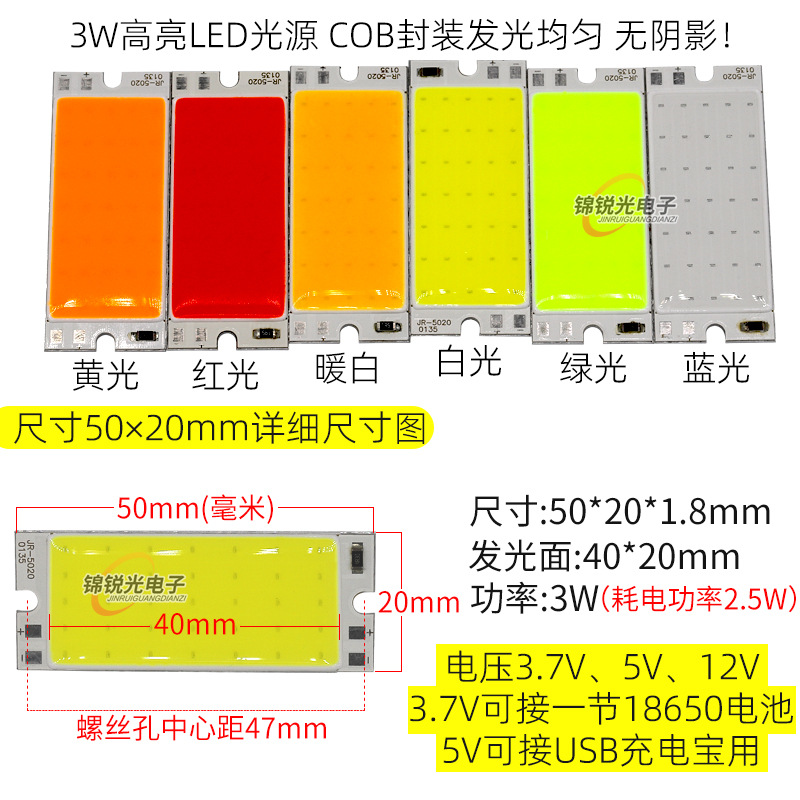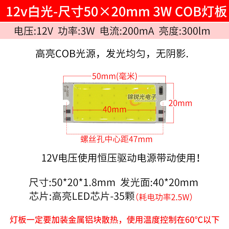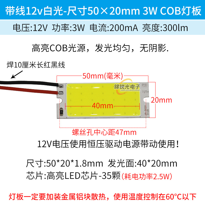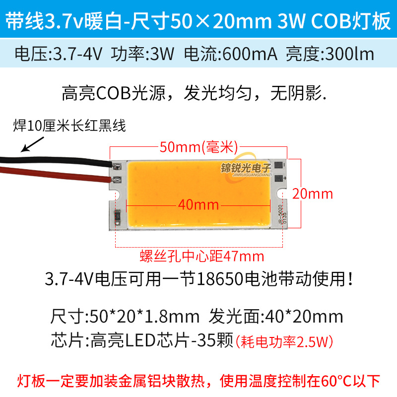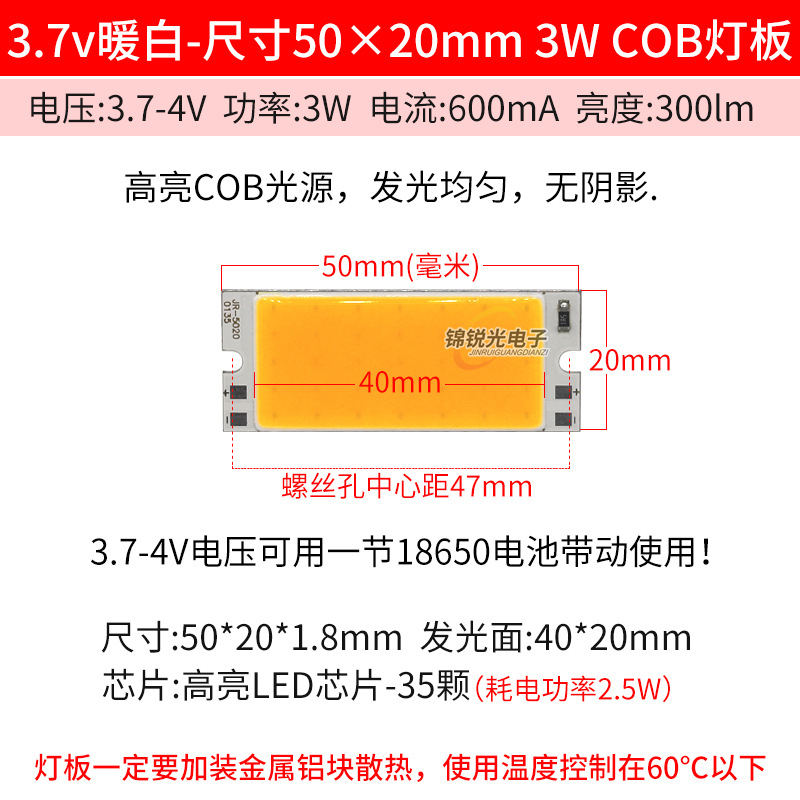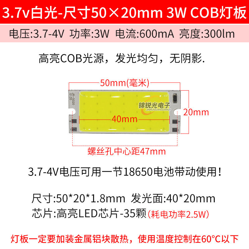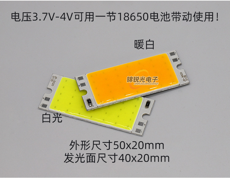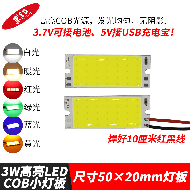 Светодиодный источник света COB 12В, высокояркий квадратный светильник 12В, светодиодная плата с питанием от батареи 3.7В и USB 5В, светодиодная лента 50*20мм, белый свет