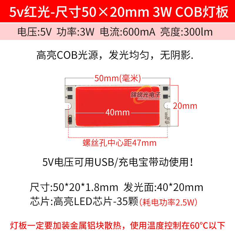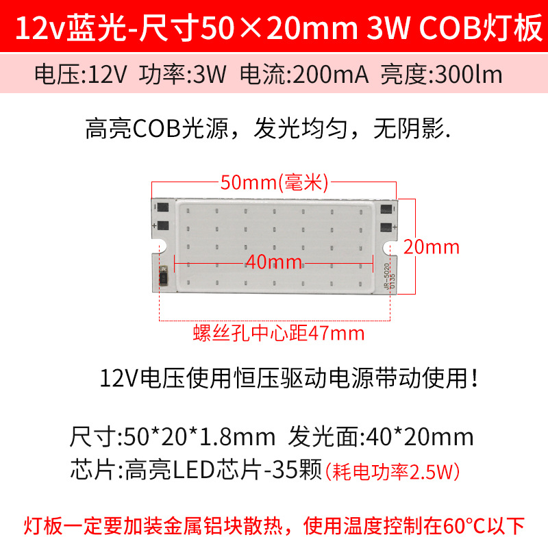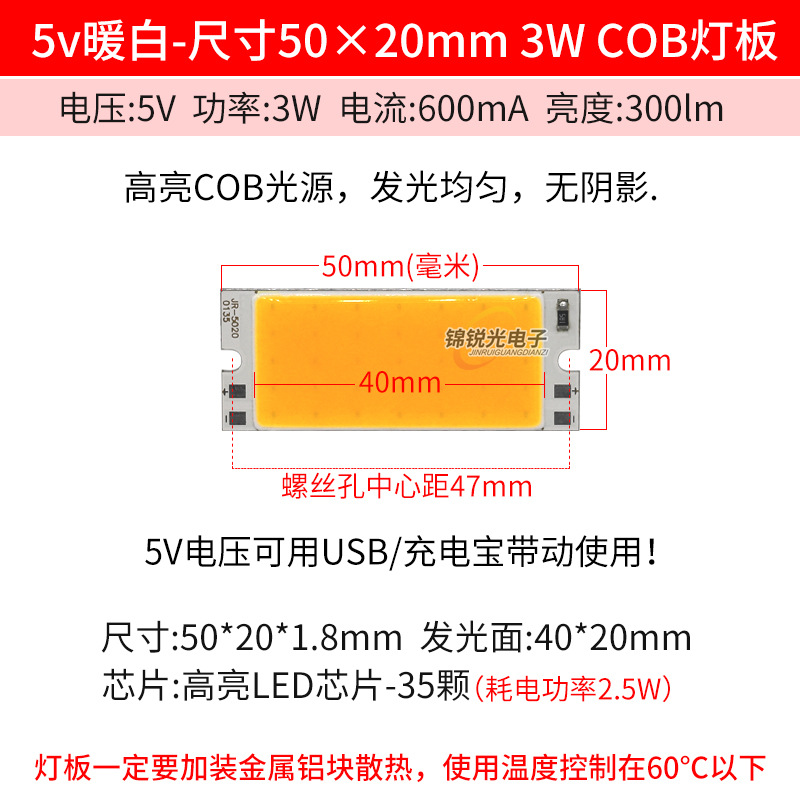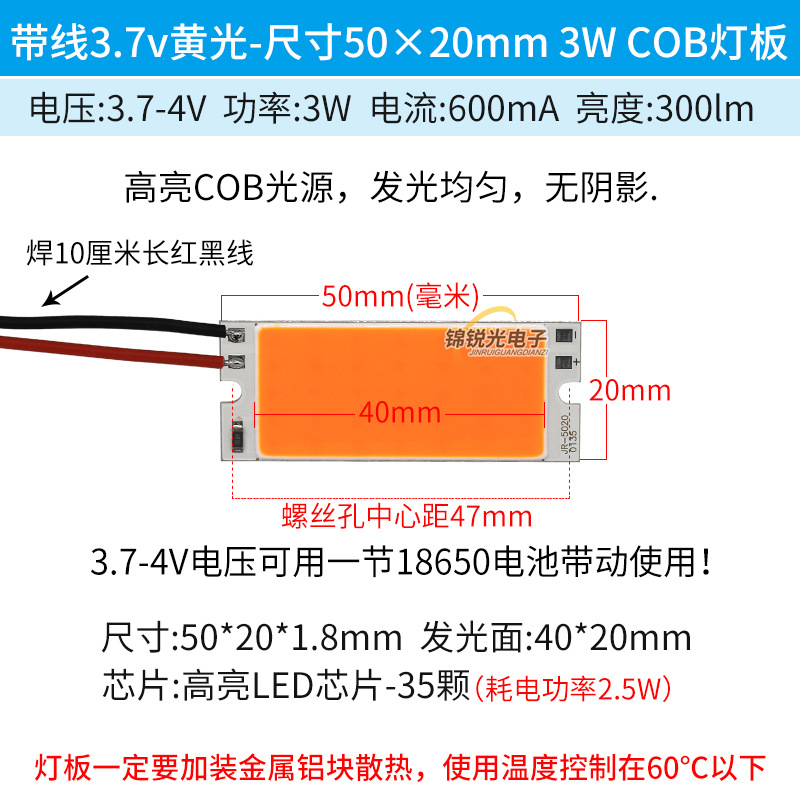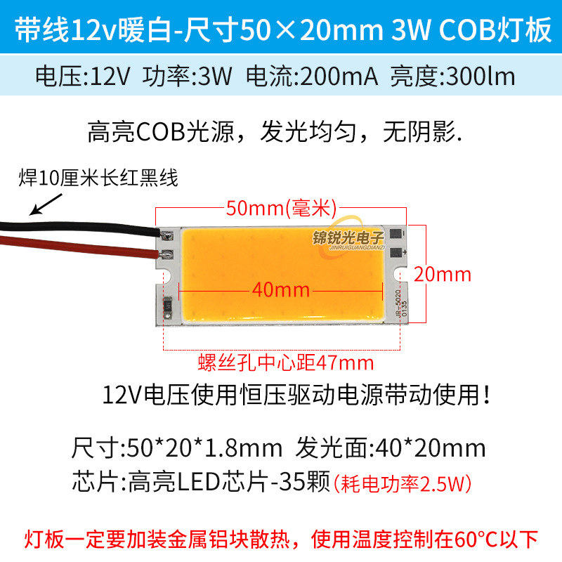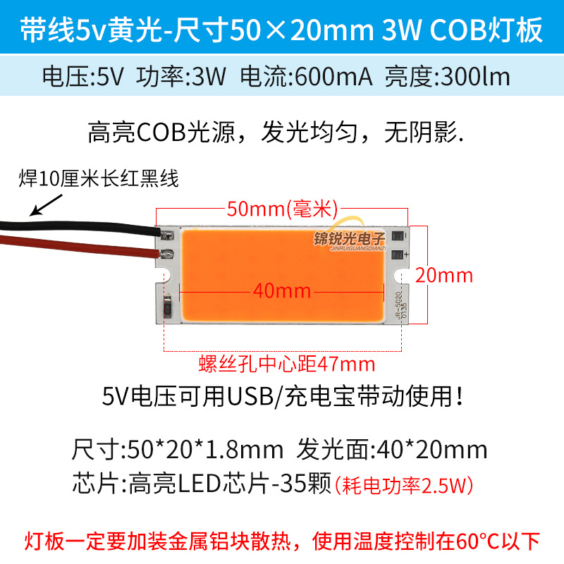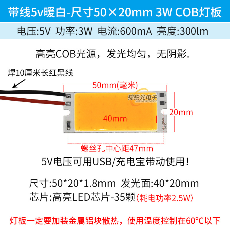 Светодиодный источник света COB 12В, высокояркий квадратный светильник 12В, светодиодная плата с питанием от батареи 3.7В и USB 5В, светодиодная лента 50*20мм, белый свет