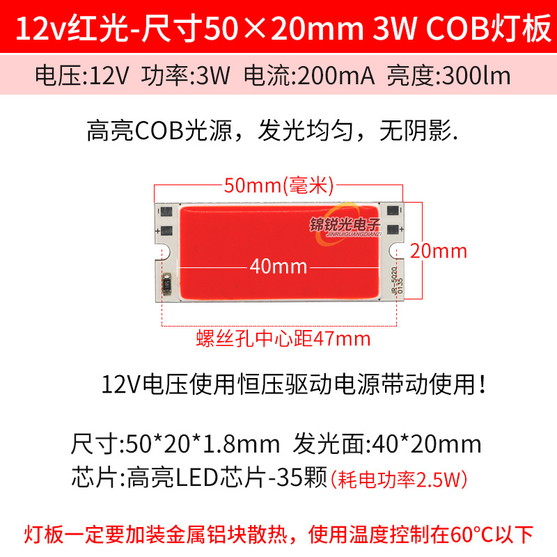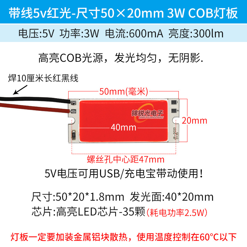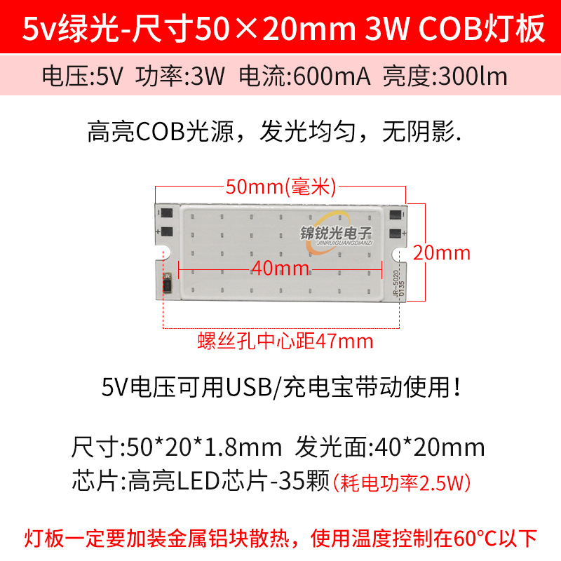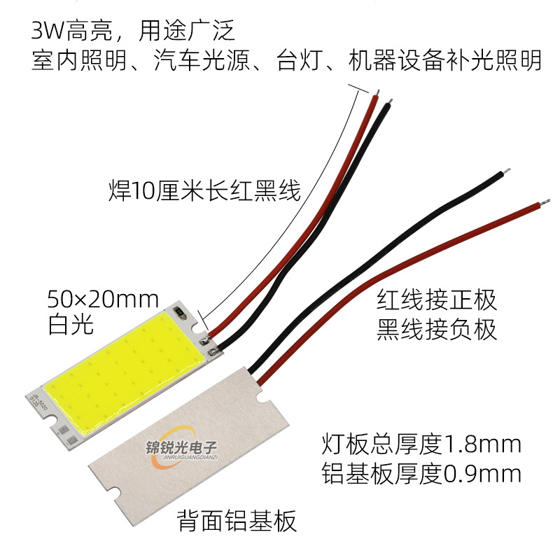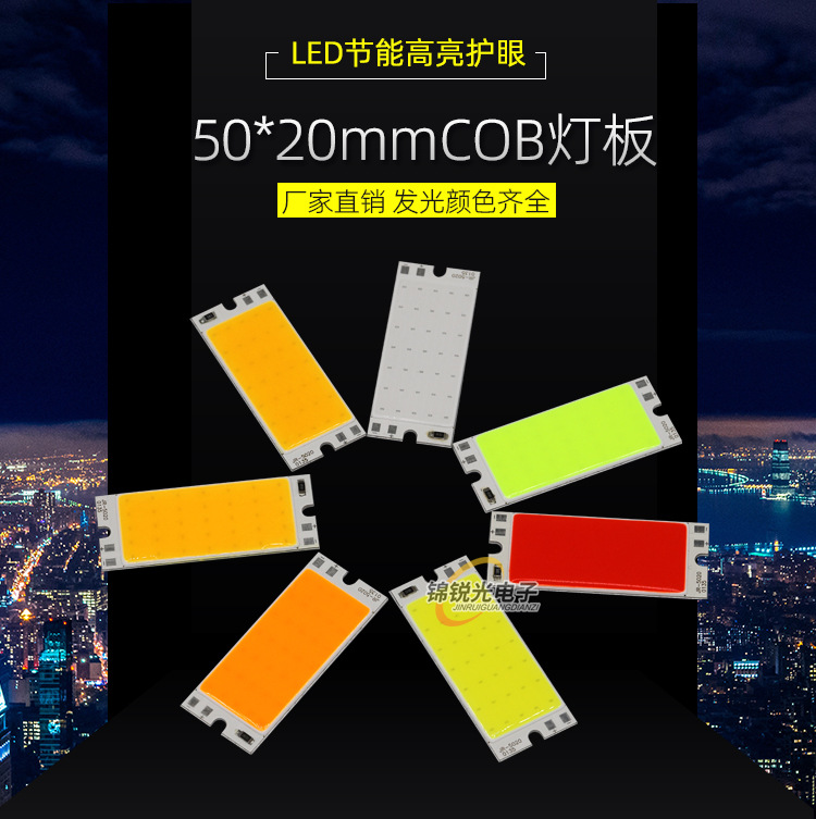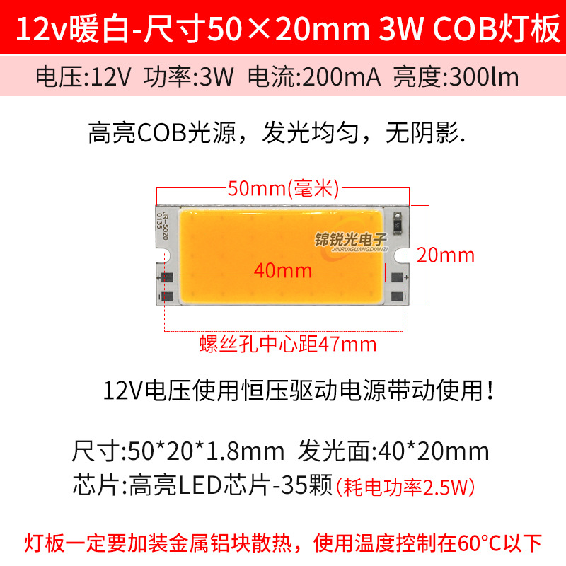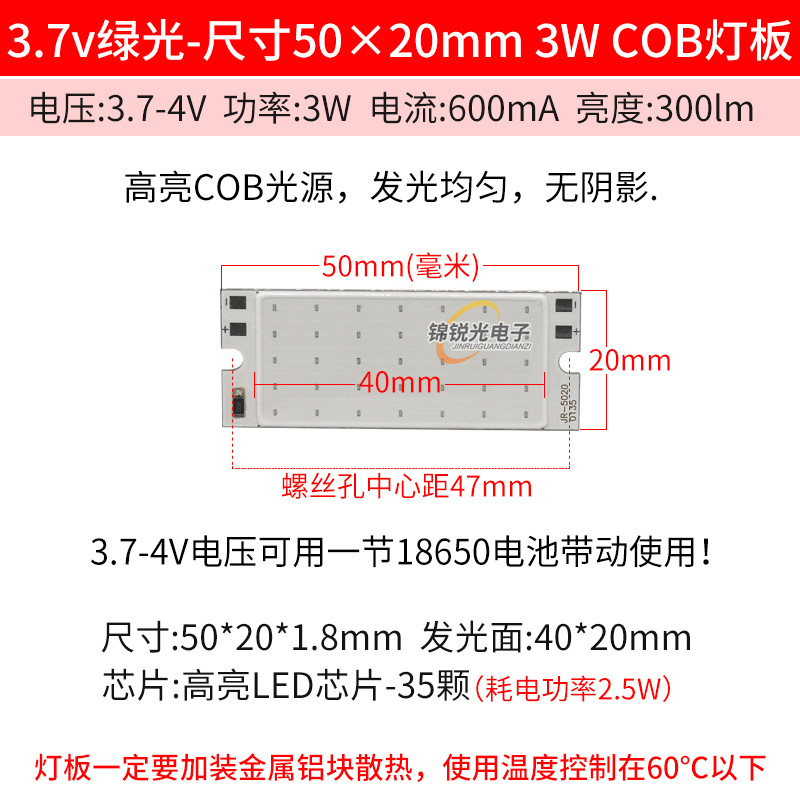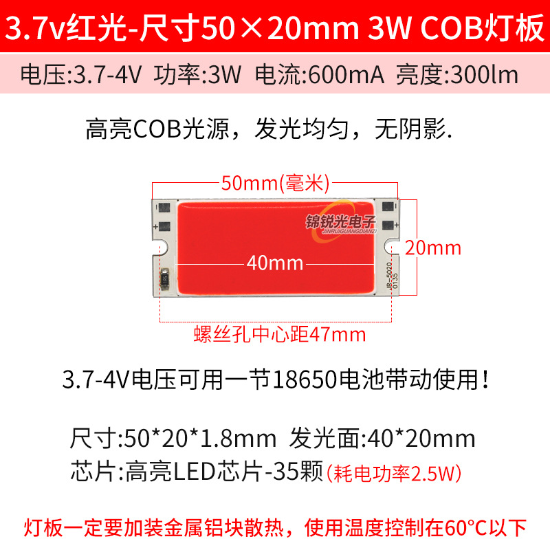 Светодиодный источник света COB 12В, высокояркий квадратный светильник 12В, светодиодная плата с питанием от батареи 3.7В и USB 5В, светодиодная лента 50*20мм, белый свет