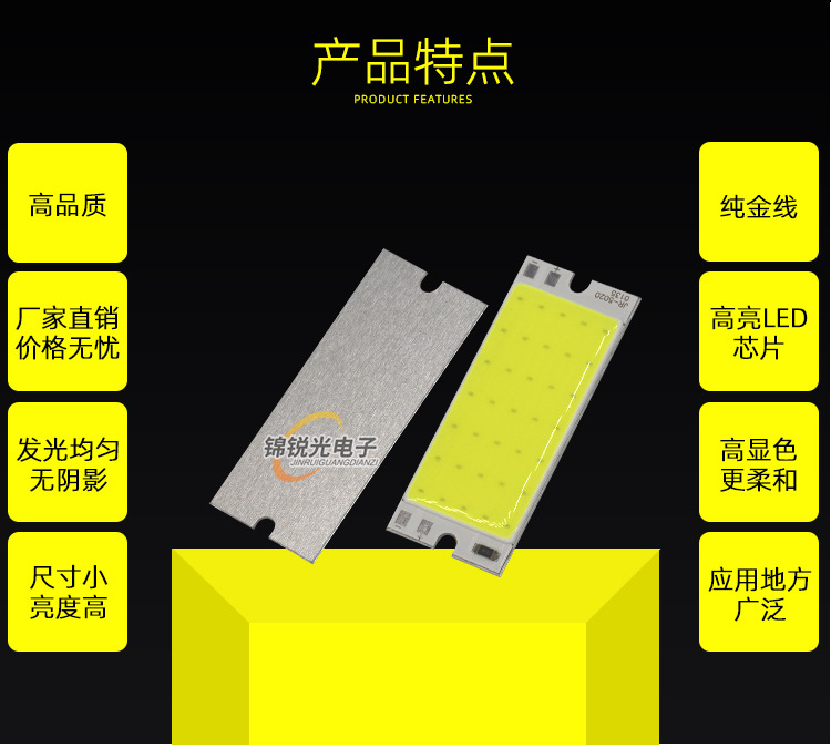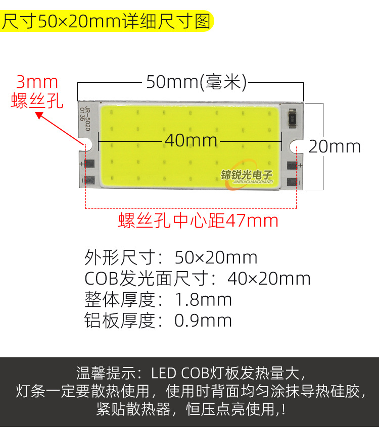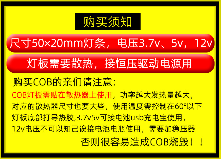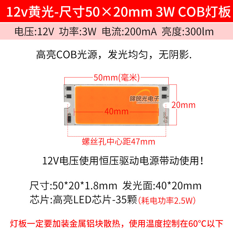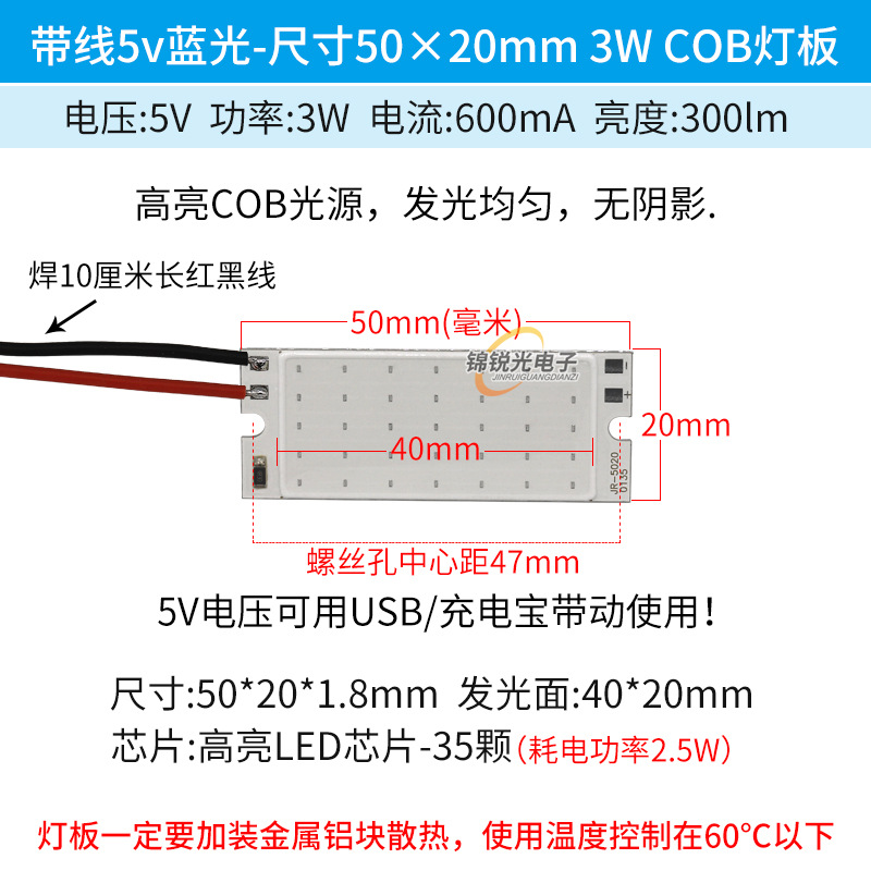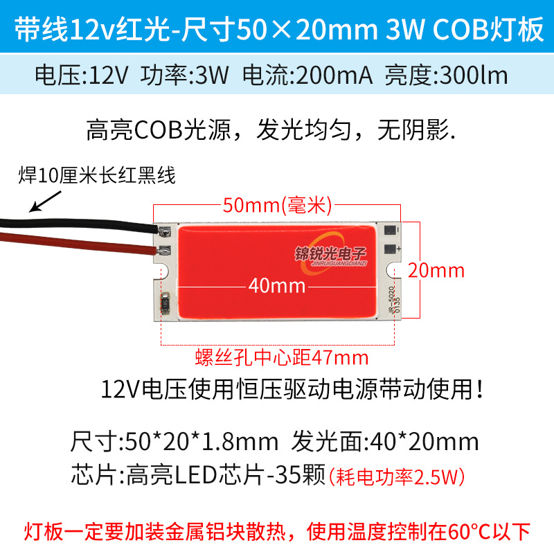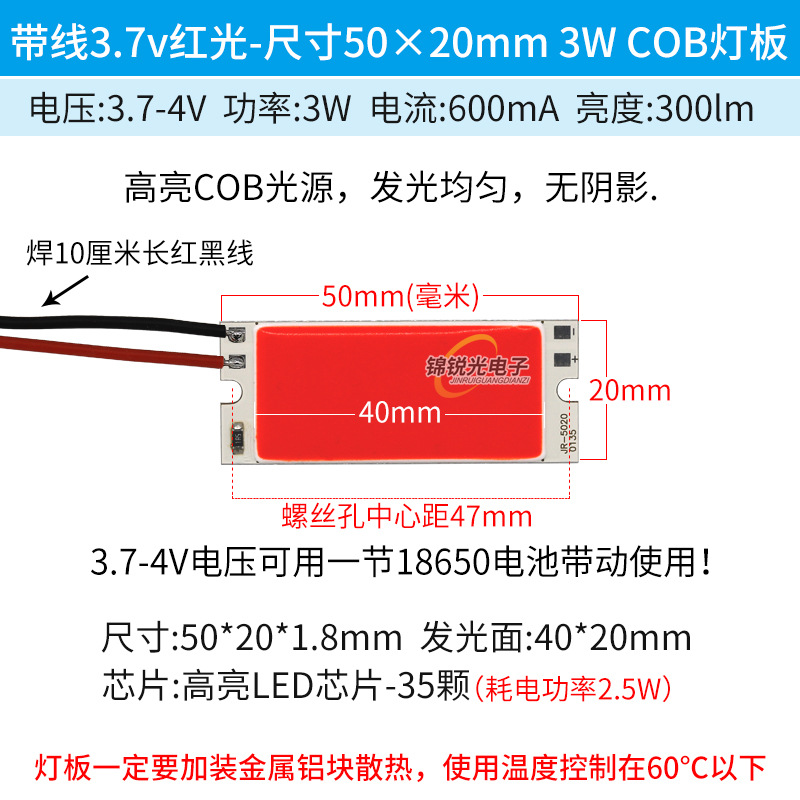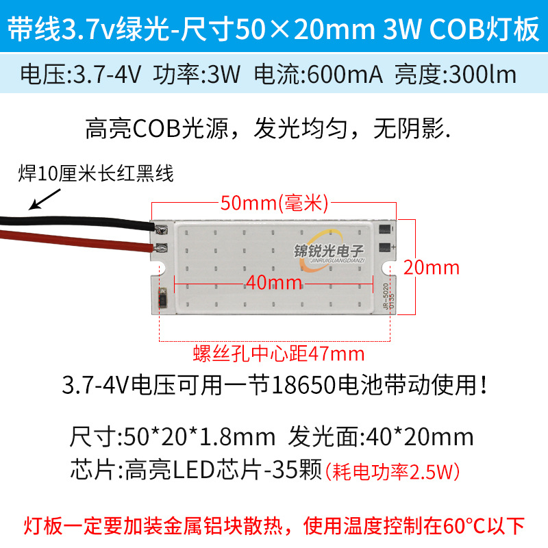Светодиодный источник света COB 12В, высокояркий квадратный светильник 12В, светодиодная плата с питанием от батареи 3.7В и USB 5В, светодиодная лента 50*20мм, белый свет