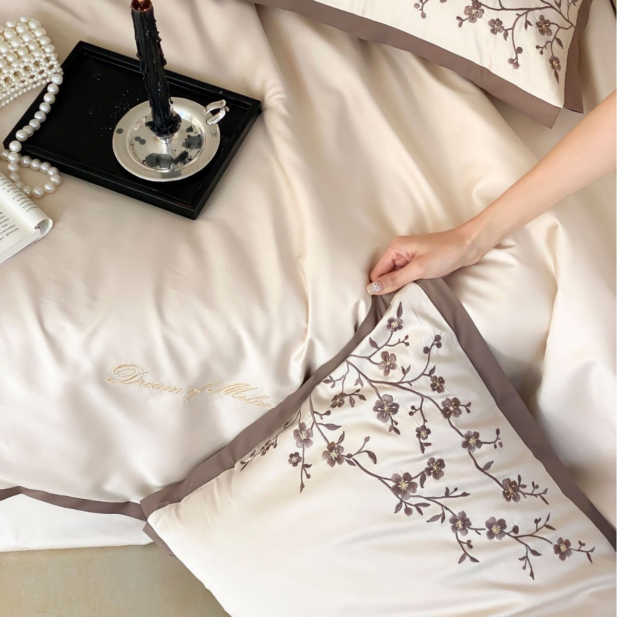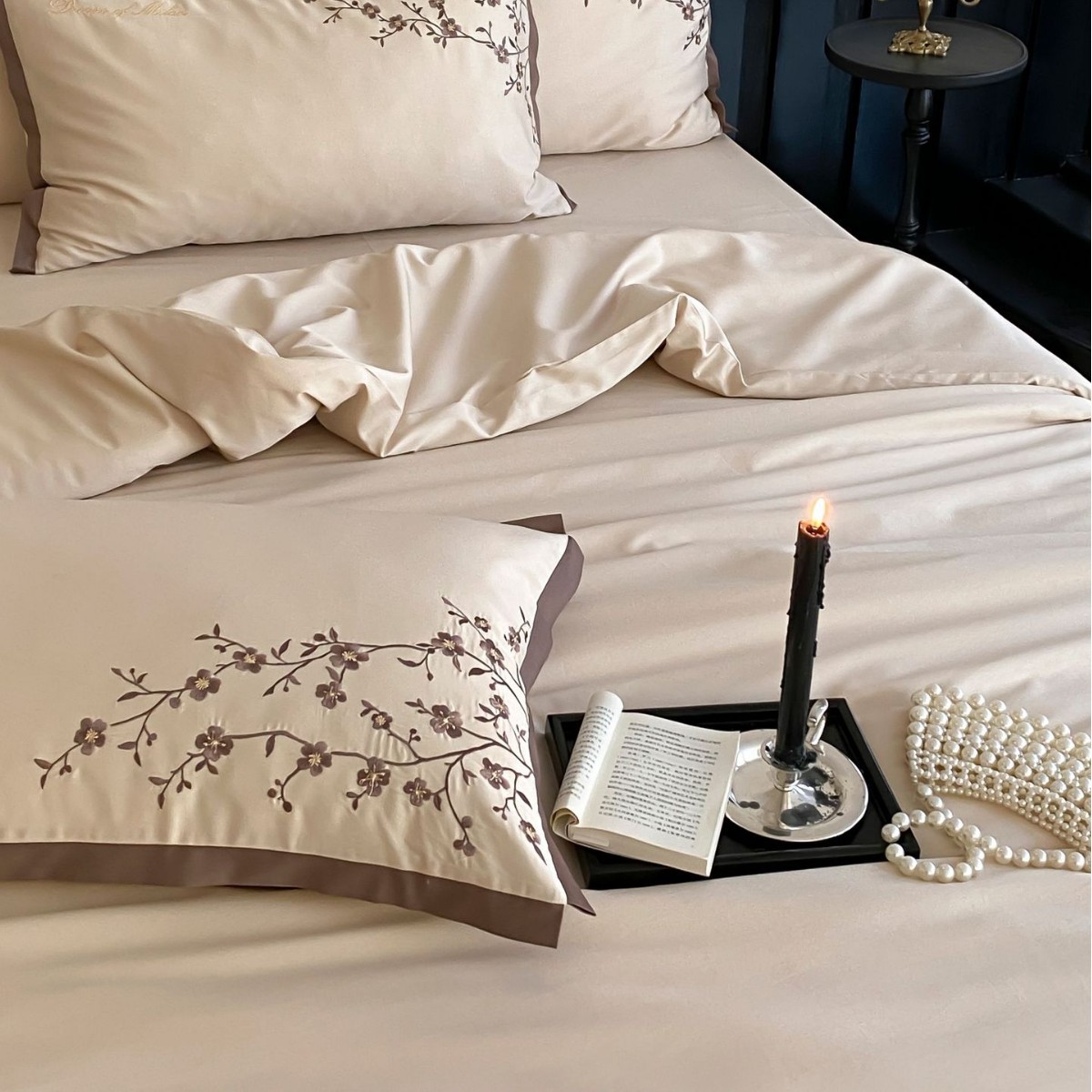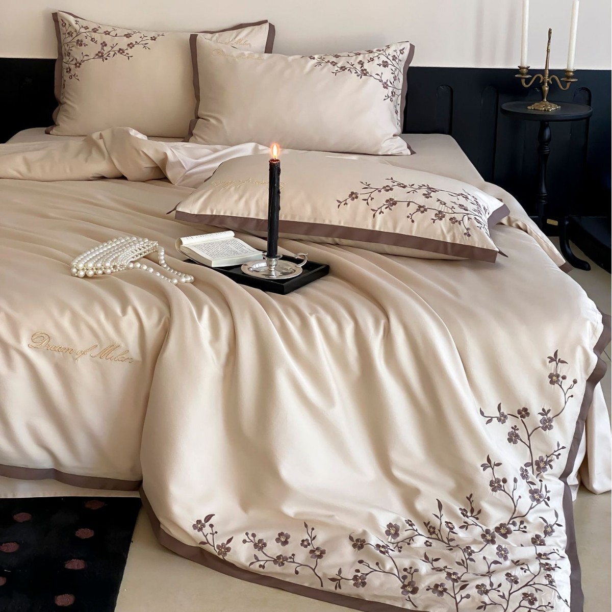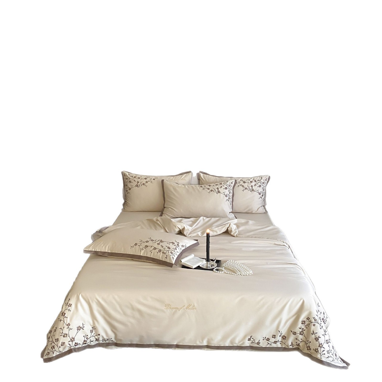 Элегантный комплект постельного белья в китайском стиле из чистого хлопка, четыре предмета: простыня, пододеяльник, с цветочной вышивкой в винтажном стиле, легкая роскошь.