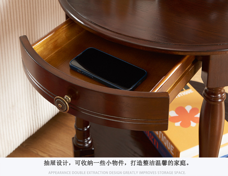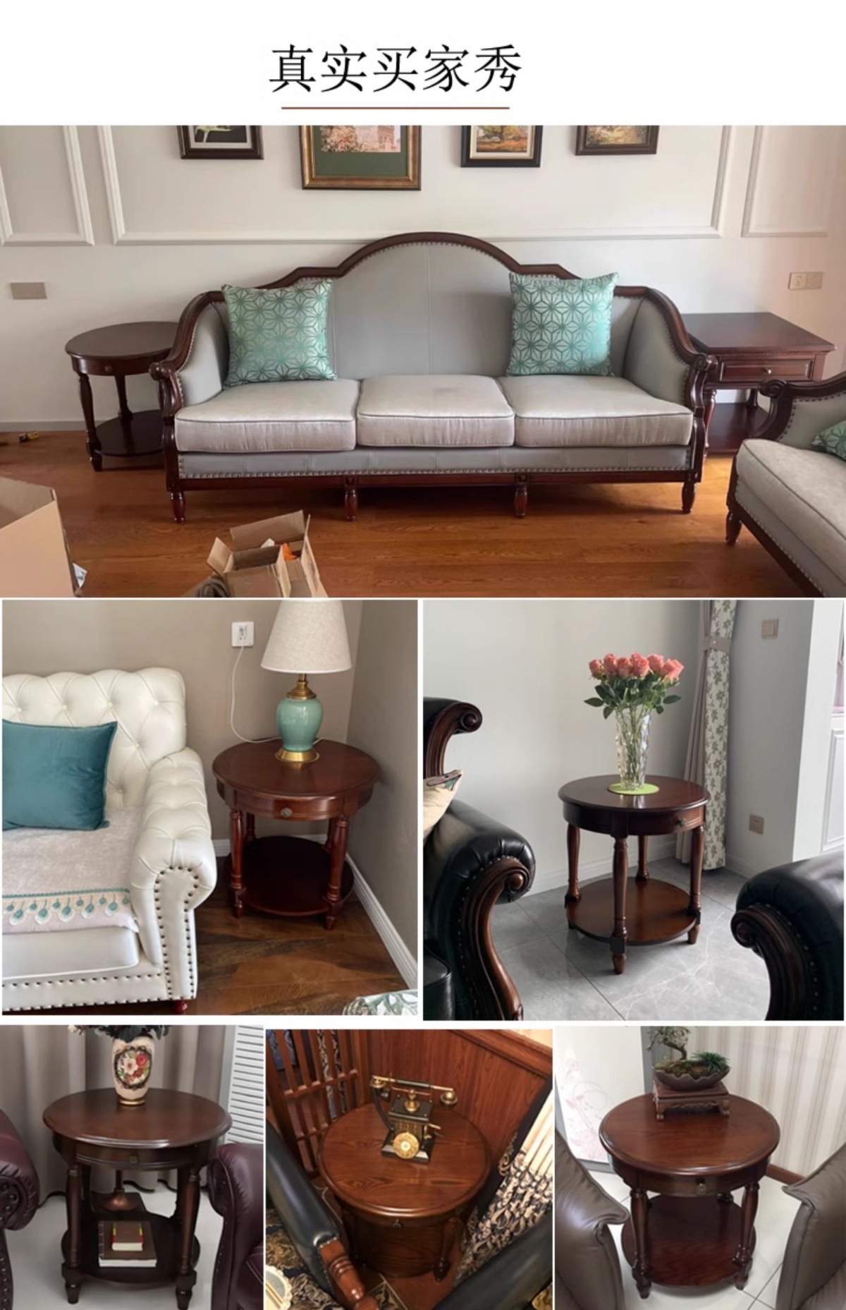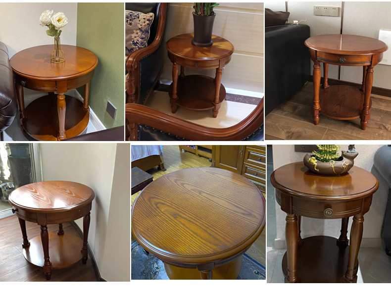 Небольшой столик на боковой стороне американской гостиной из массива дерева