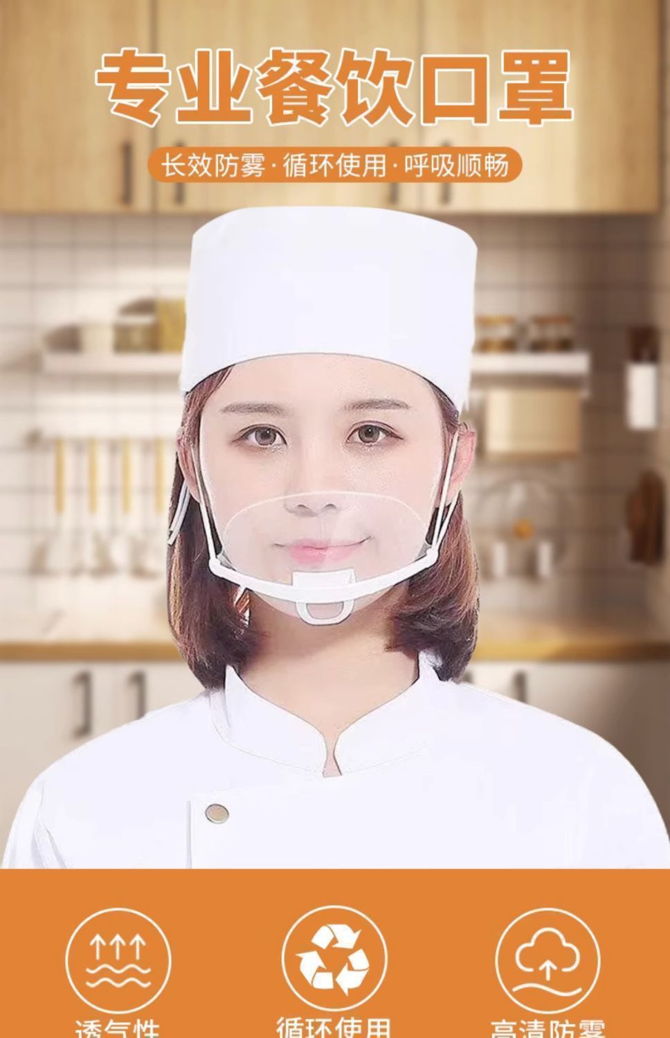 [Циркуляционный] Прозрачная столовая маска противотуманная кухня Ресторан слюны повара против слюны пластиковая маска