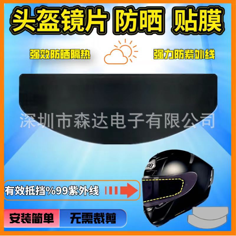 - 操作简单:1清洁好头盔面罩2用固定贴固定白色定位片在面罩外面3撕掉1号离型膜4带胶面贴在面罩里面5用刮卡刮或者手把膜压平)6撕掉2号保护膜。