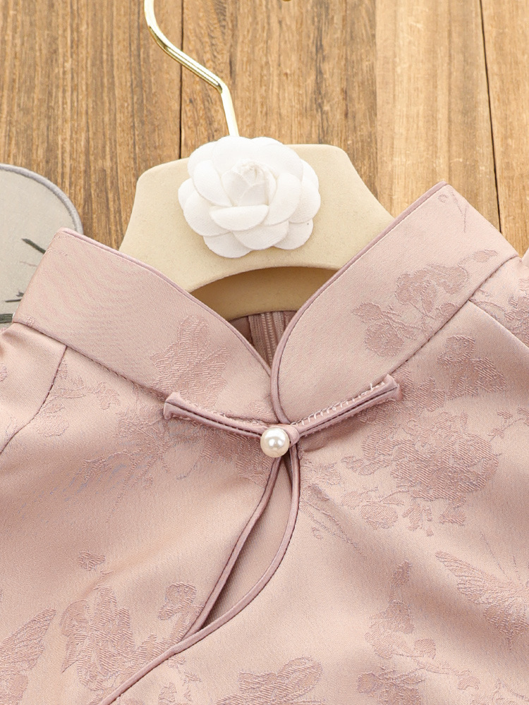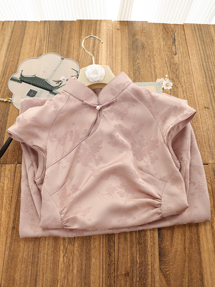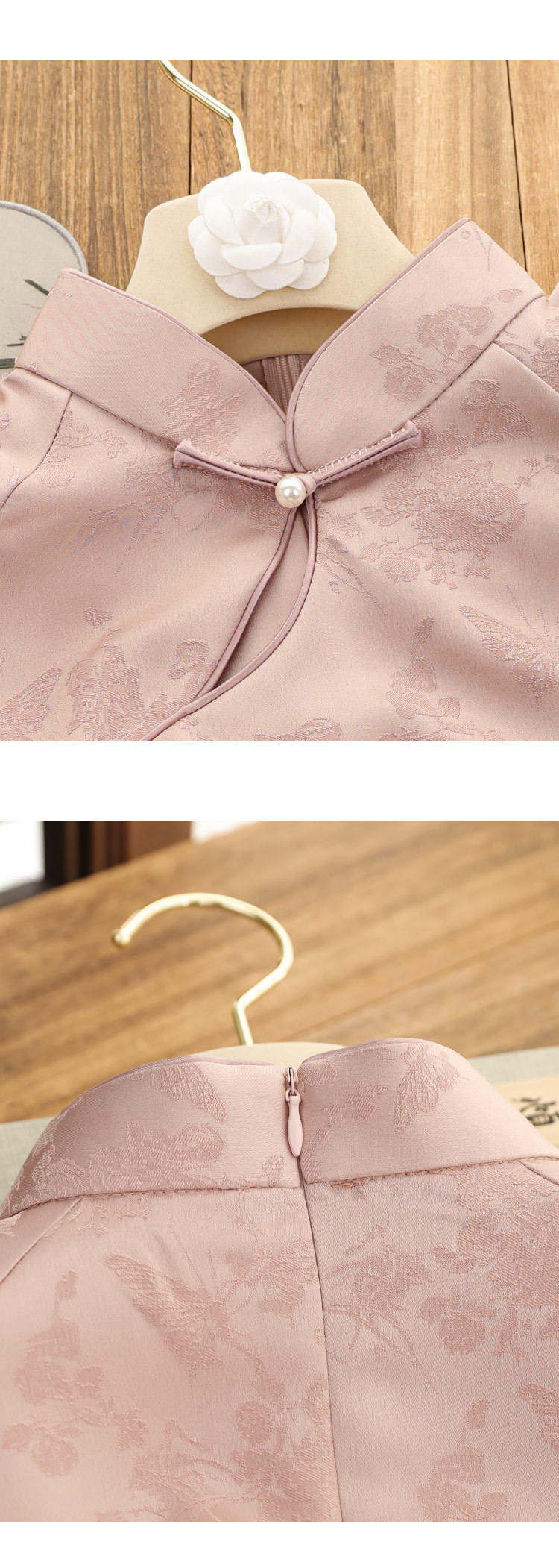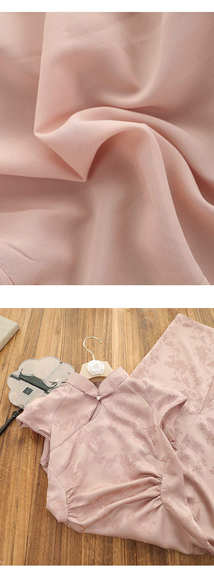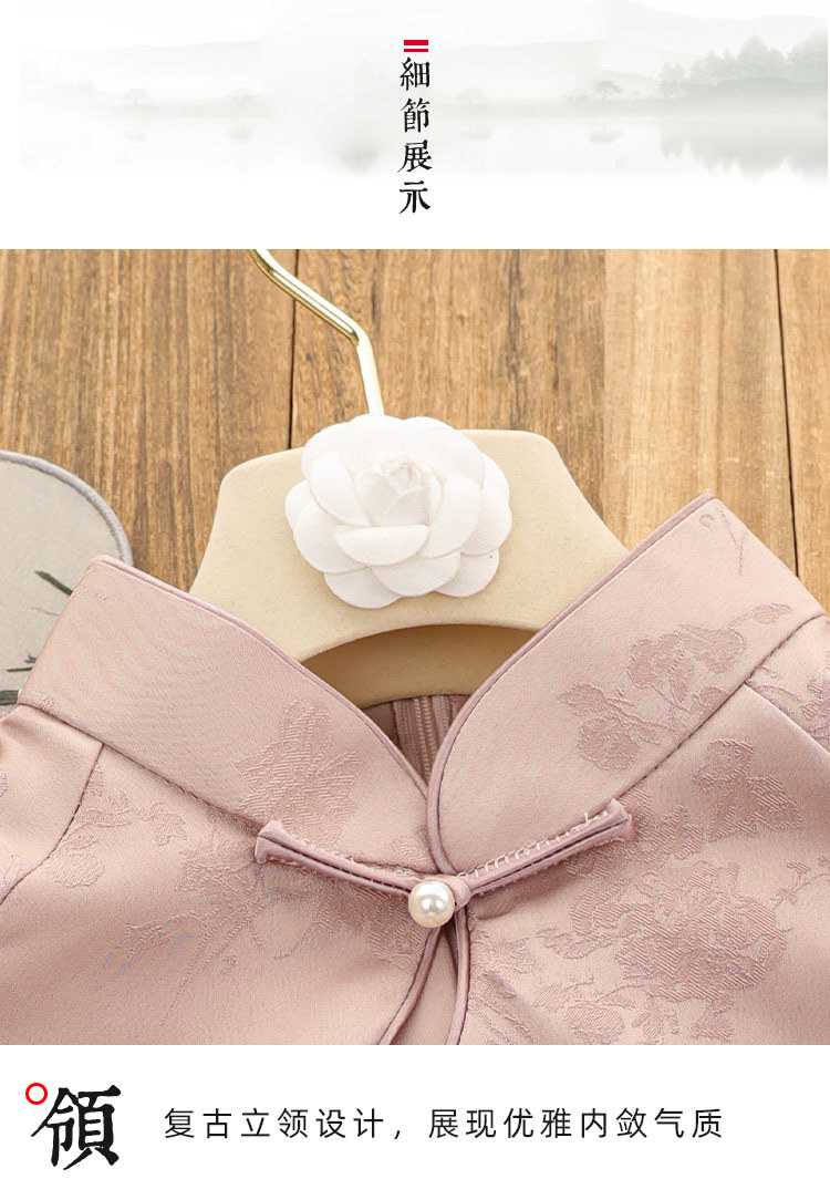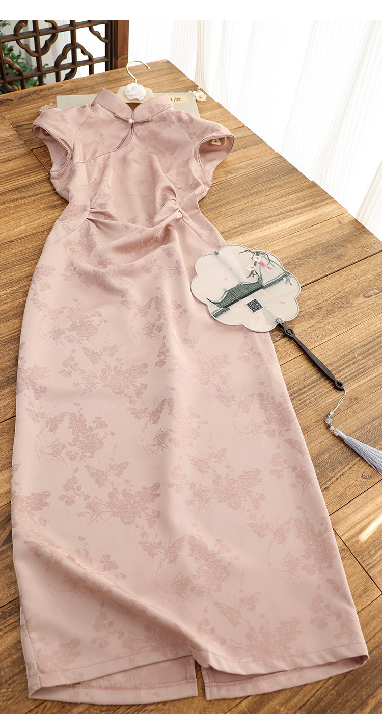 Цяо Ньянг Рыбка Розовый жаккард Леди Фан с короткими рукавами чонсам весной 2025 новый улучшенный новый китайский стиль элегантный