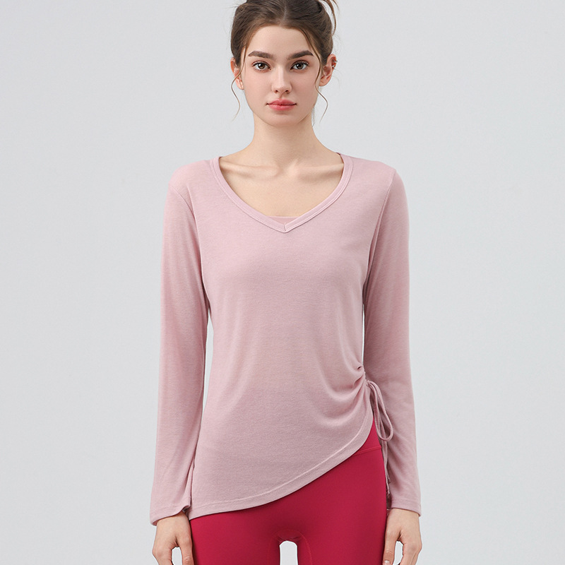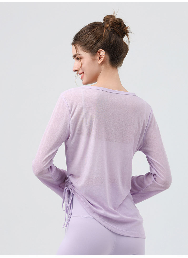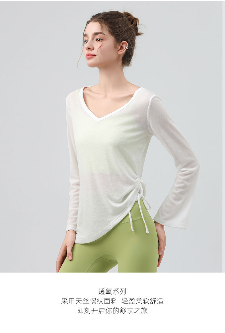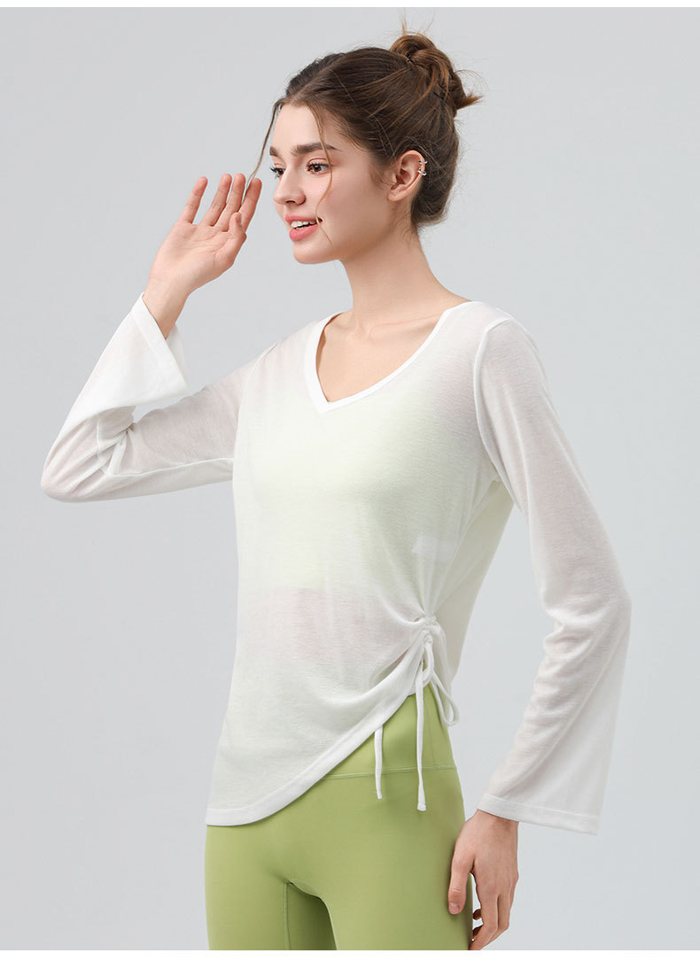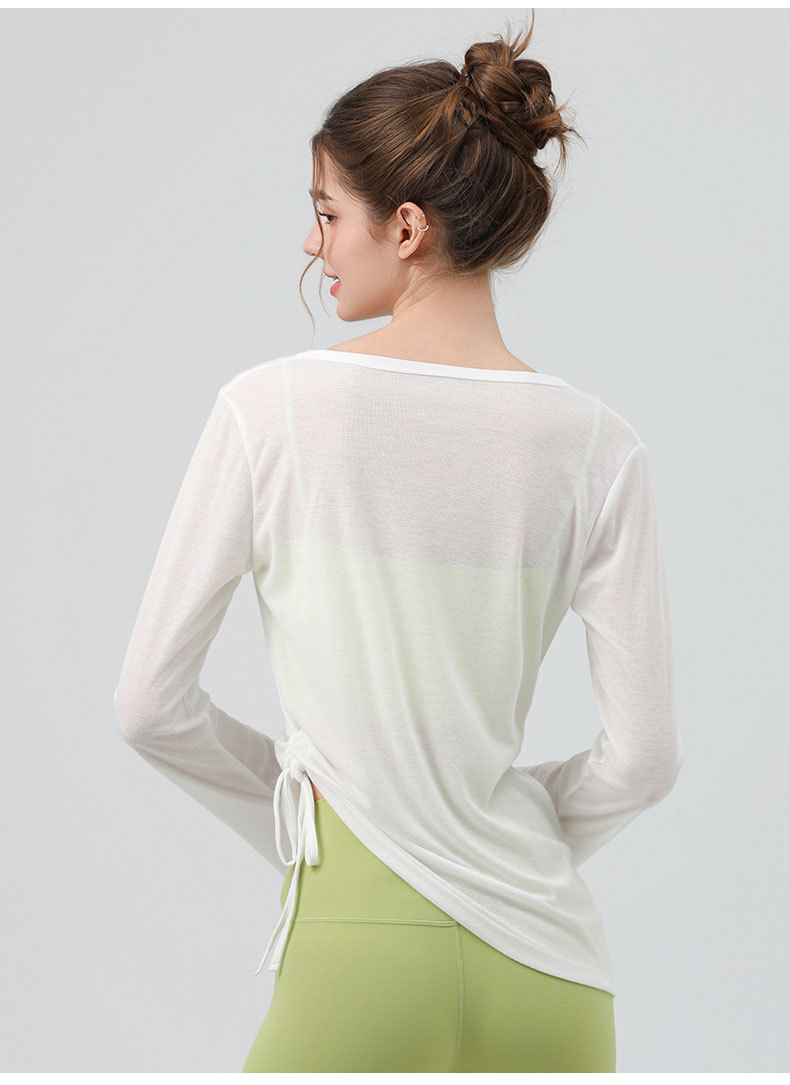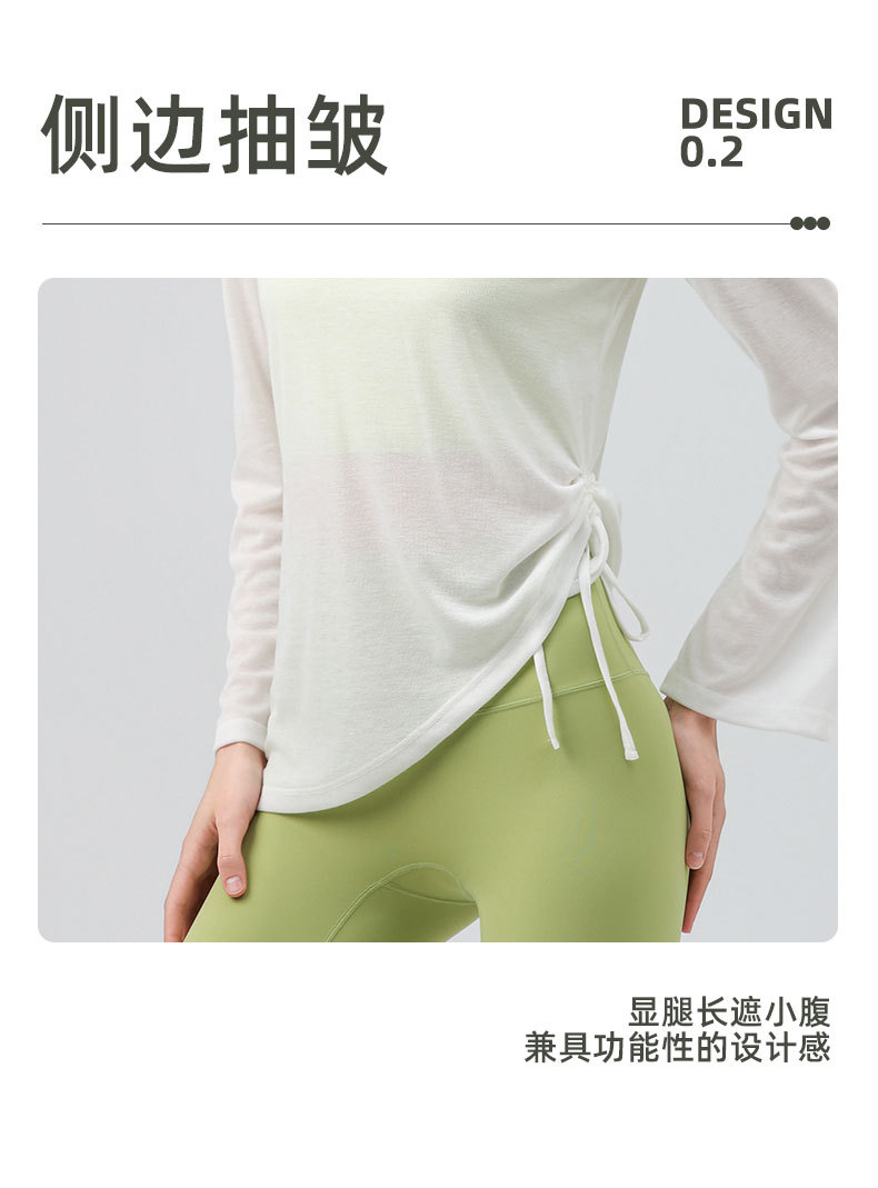 Тонкая блузка для йоги с длинными рукавами, закрывающая бедра, женская плиссированная футболка на шнурке, свободная повседневная весенне-летняя одежда для фитнеса и йоги