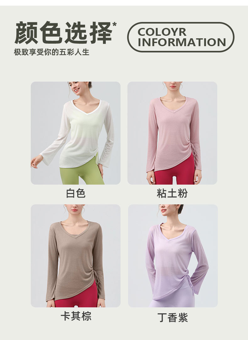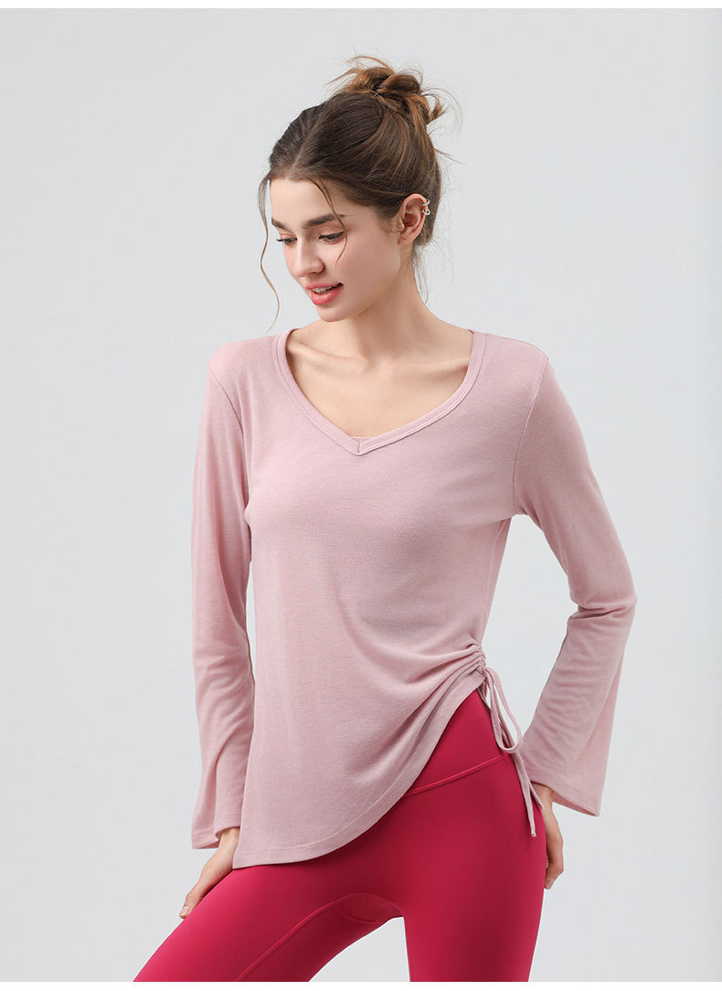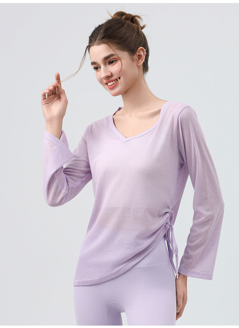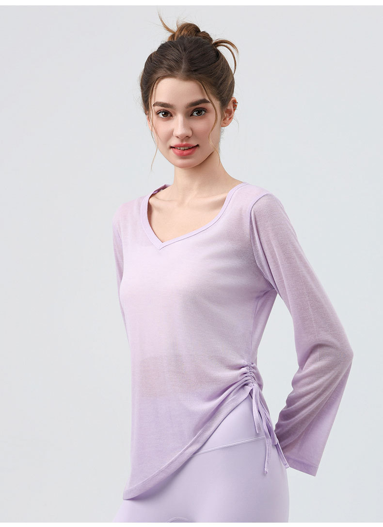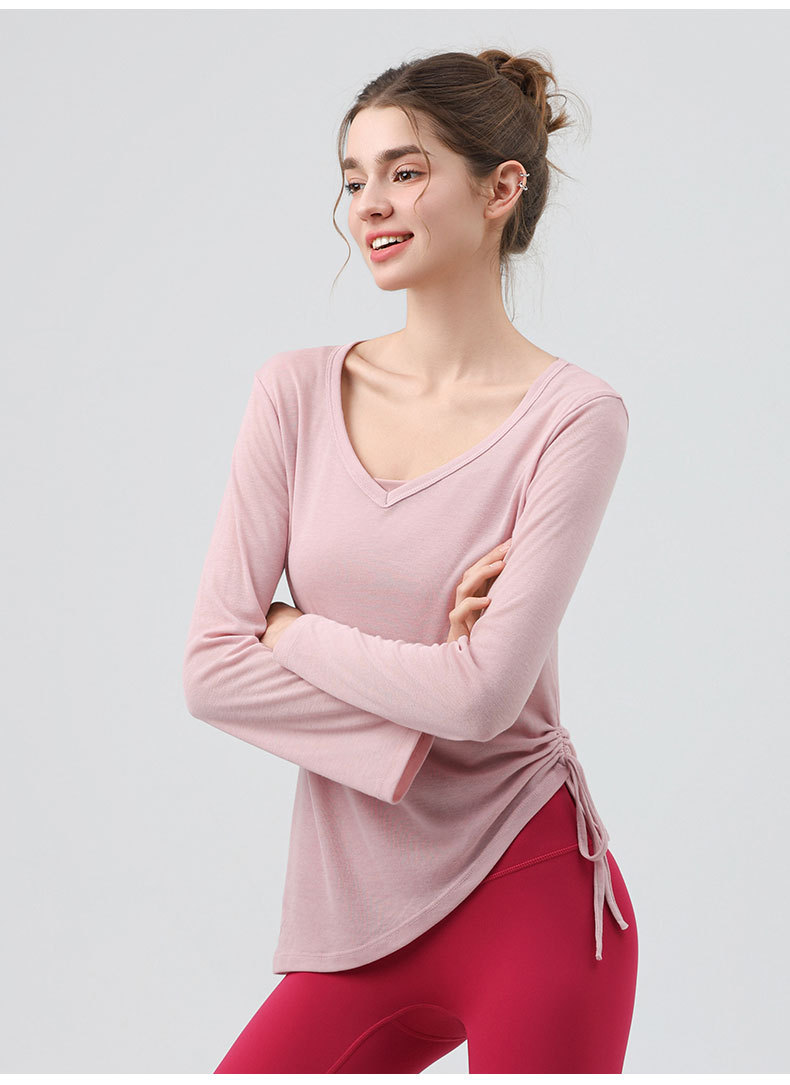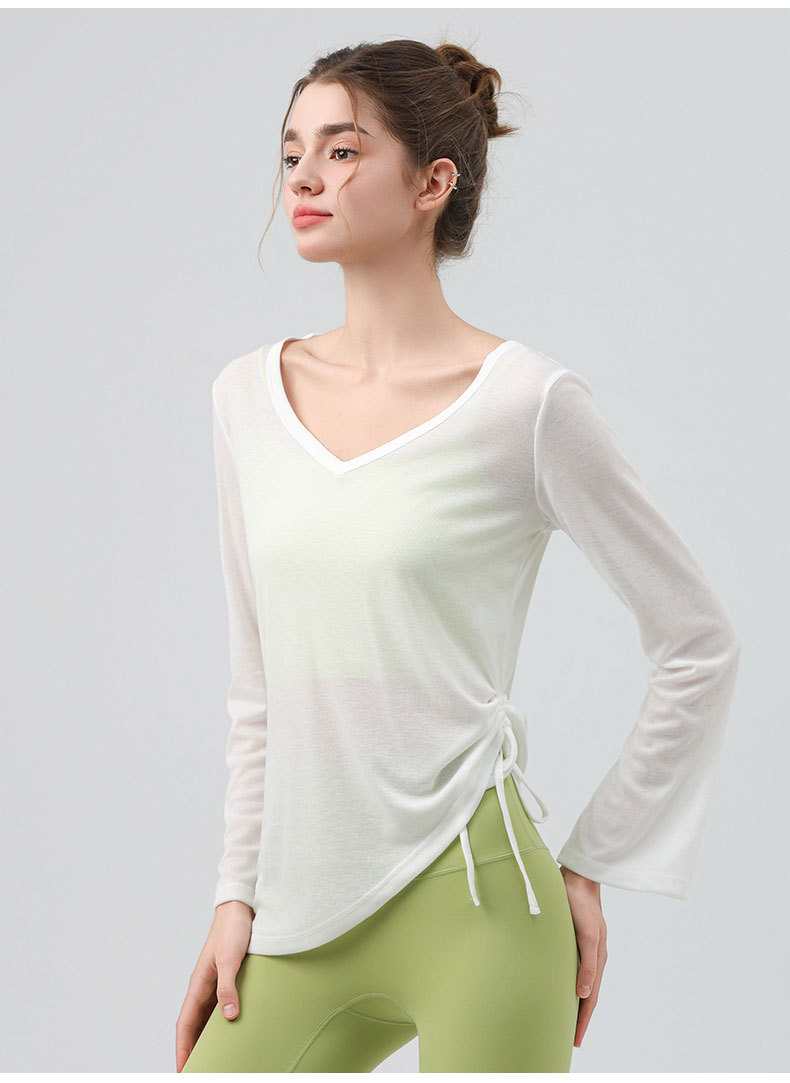 Тонкая блузка для йоги с длинными рукавами, закрывающая бедра, женская плиссированная футболка на шнурке, свободная повседневная весенне-летняя одежда для фитнеса и йоги