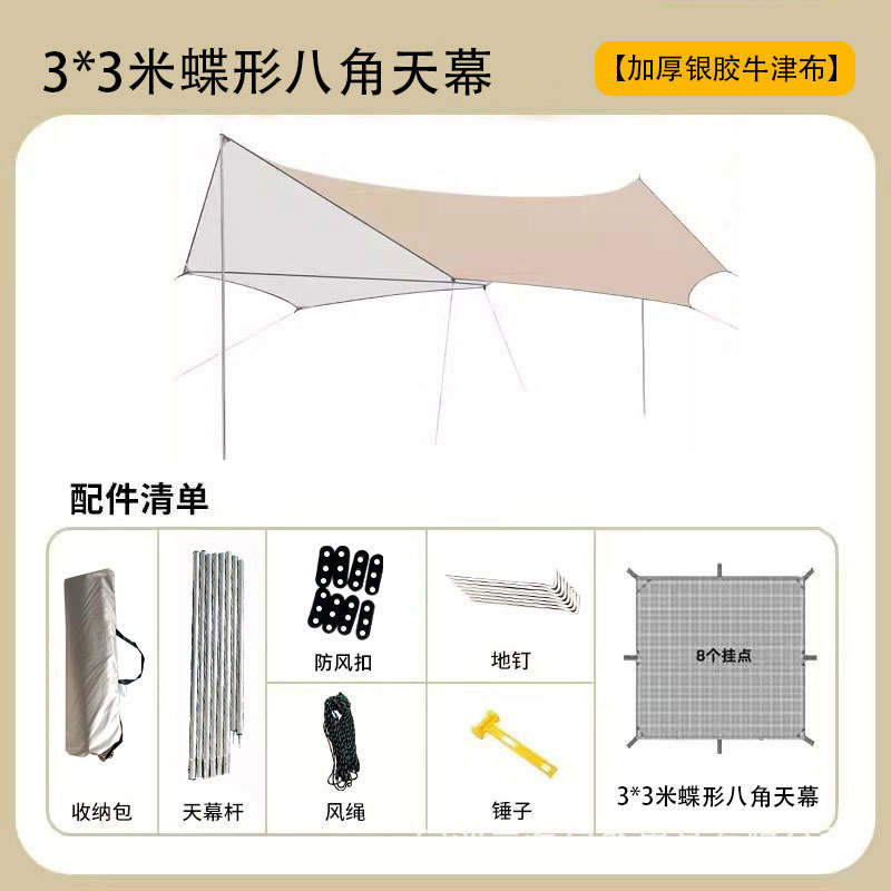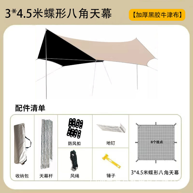 Тент-шатер для защиты от солнца и дождя, портативный кемпинговый тент-навес, черный, с октагональной конструкцией, для использования на открытом воздухе