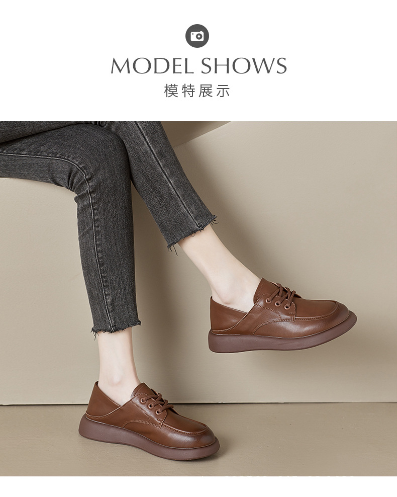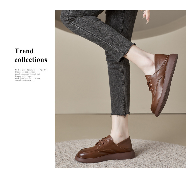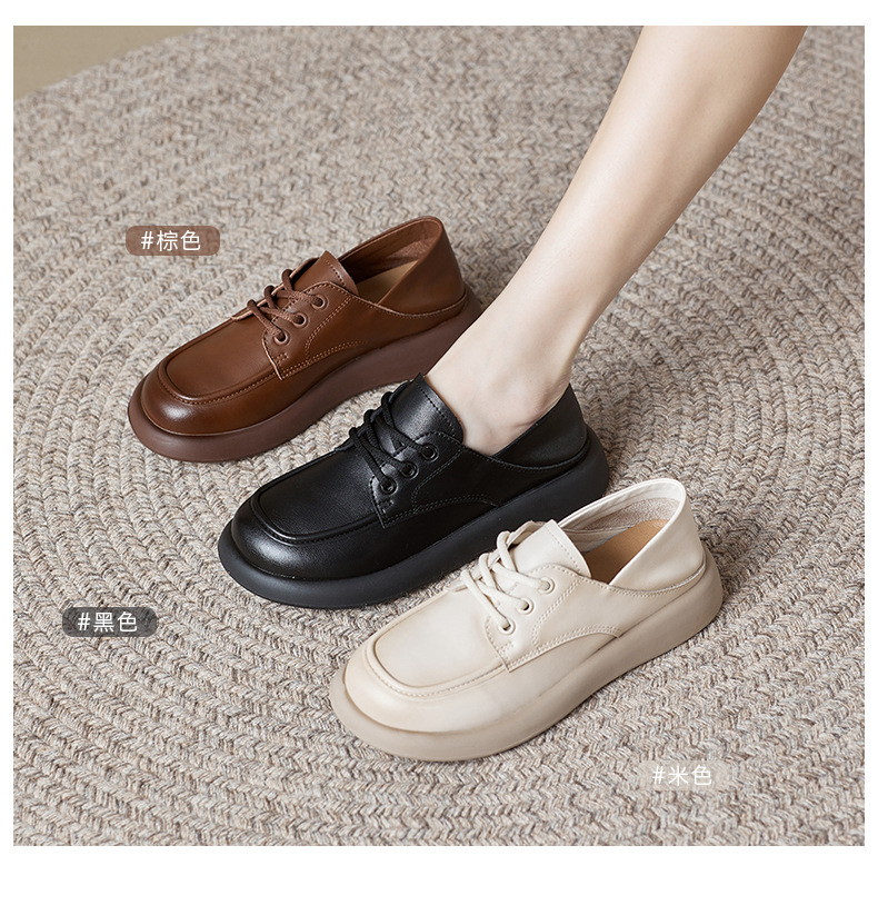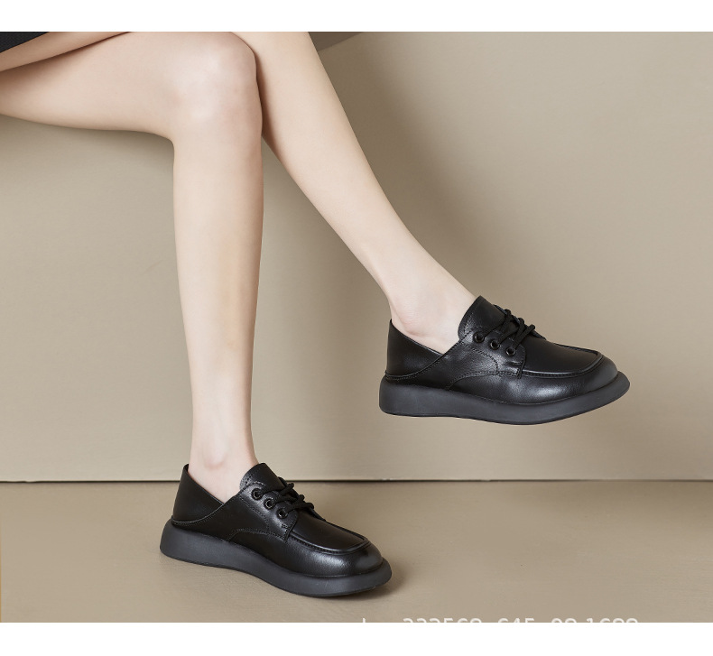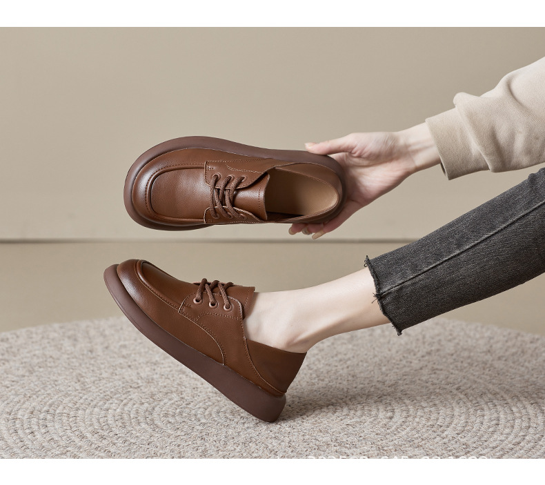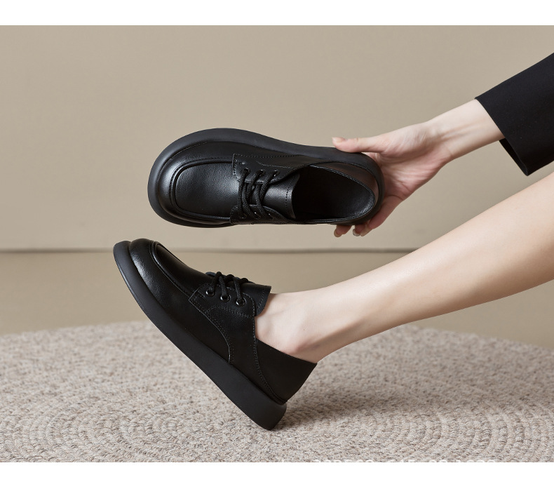 Кожаные Lefu обувь женский 2024 весна новый английский стиль толстые кожаные туфли на плоской подошве с круглой головкой