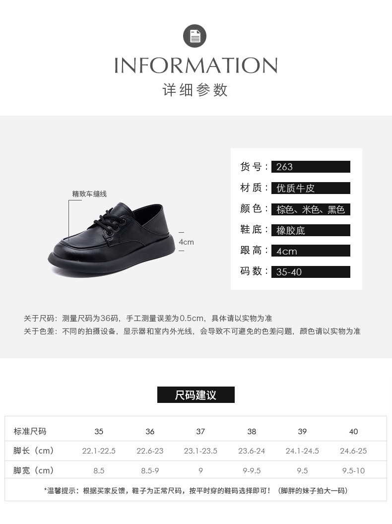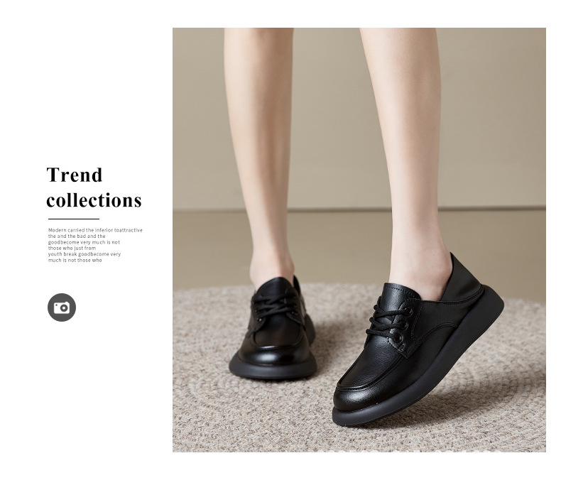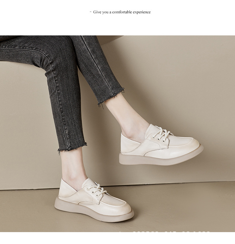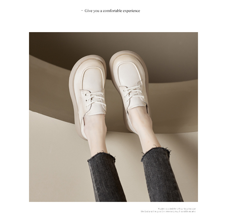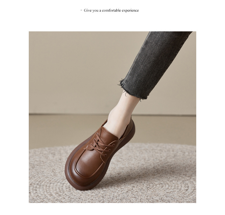 Кожаные Lefu обувь женский 2024 весна новый английский стиль толстые кожаные туфли на плоской подошве с круглой головкой