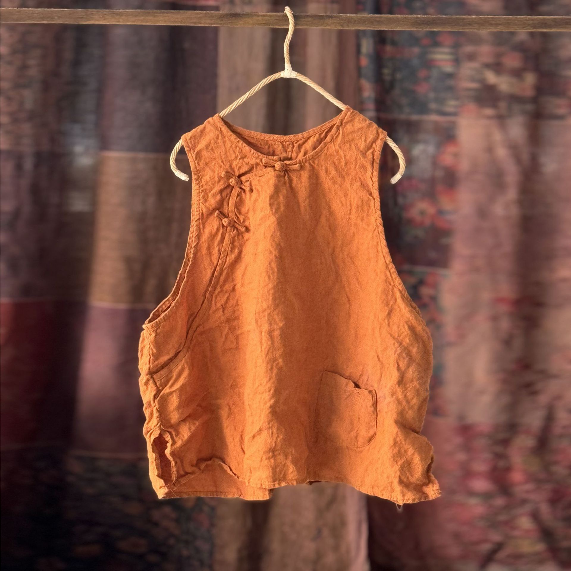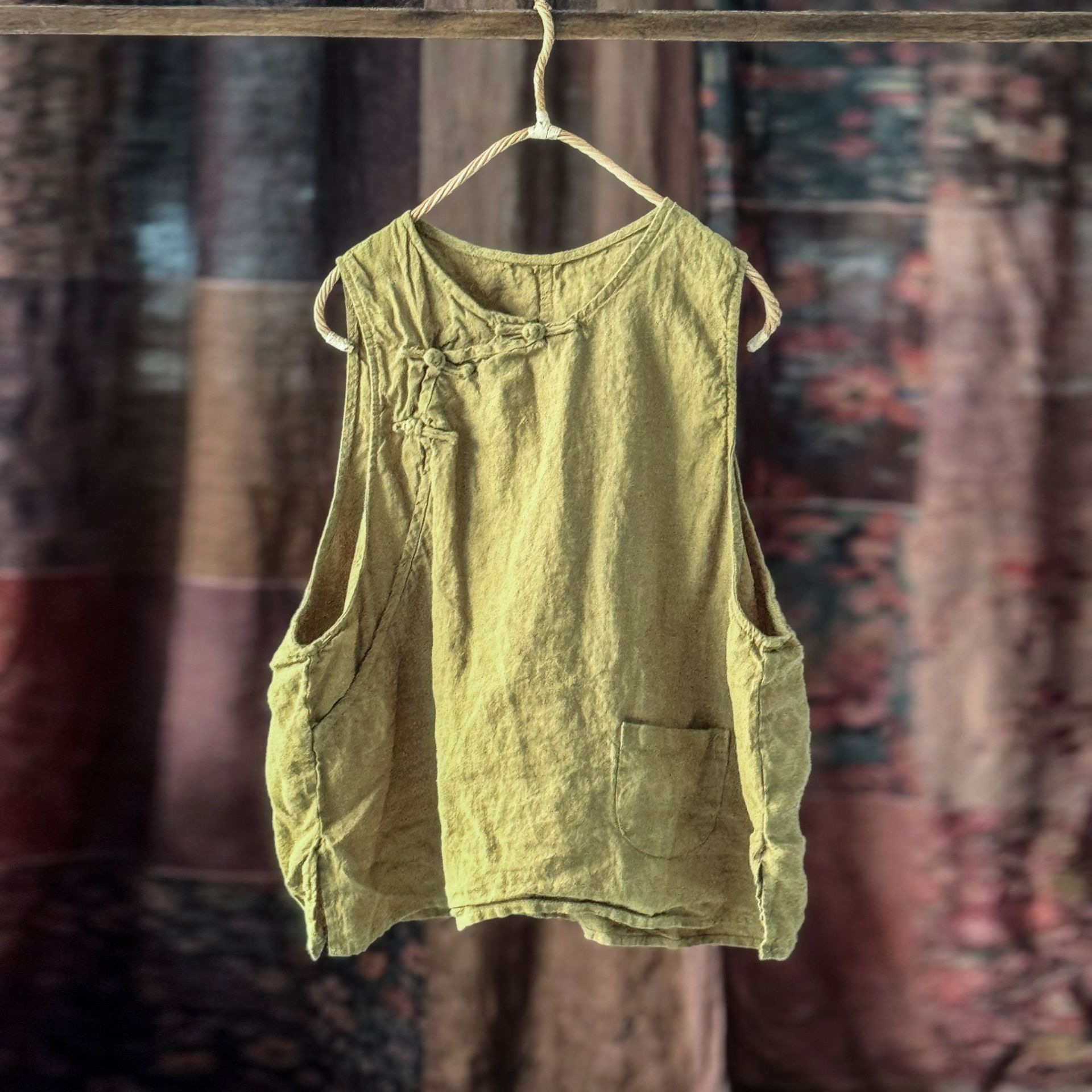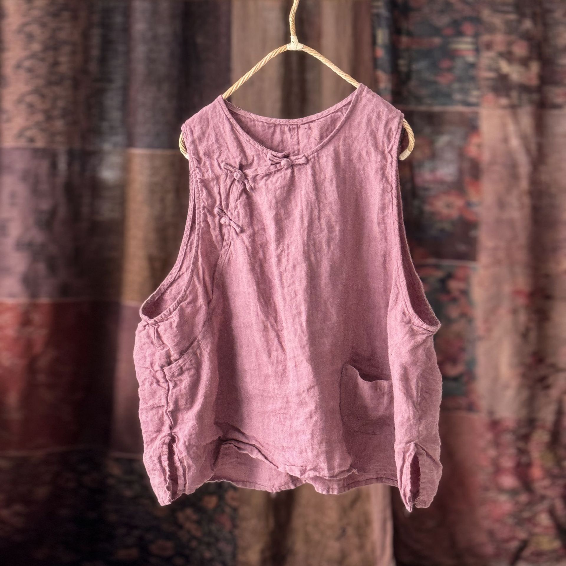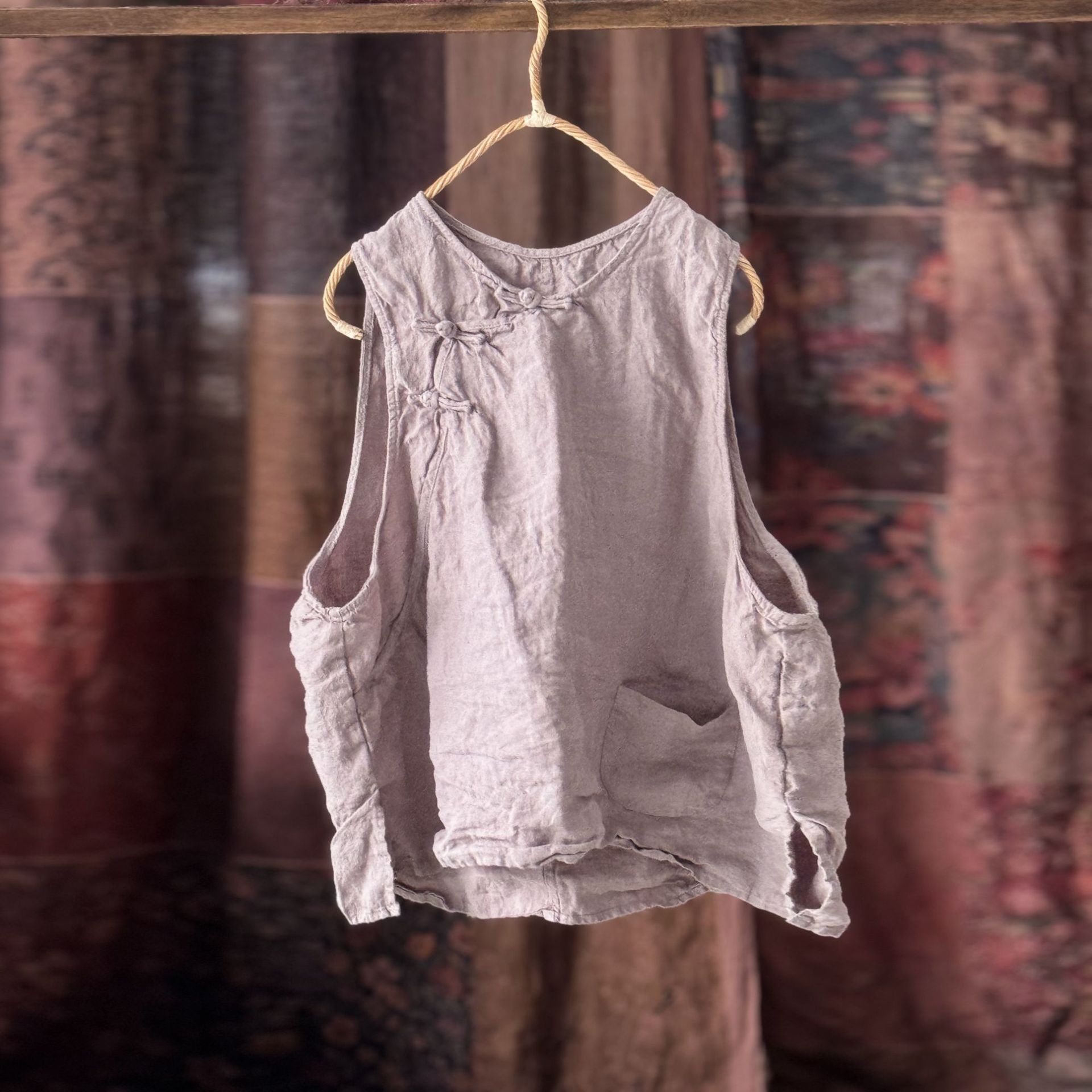 4397 ручная сшитая пряжка свободно вымытый жилет жилет высокое качество вымытый бельем ретро женская одежда