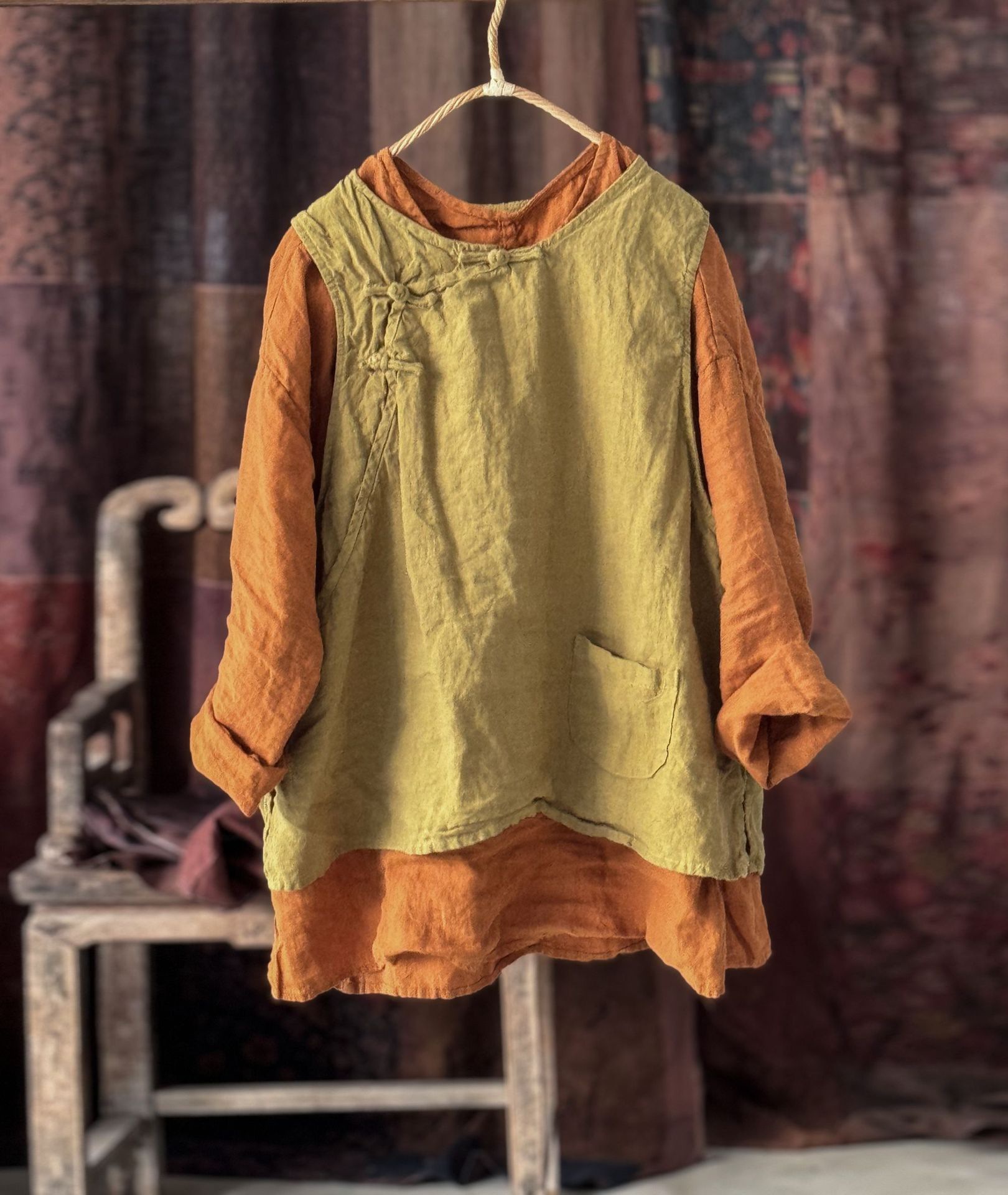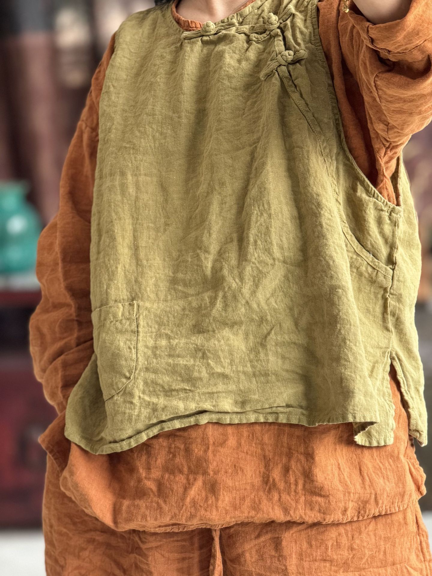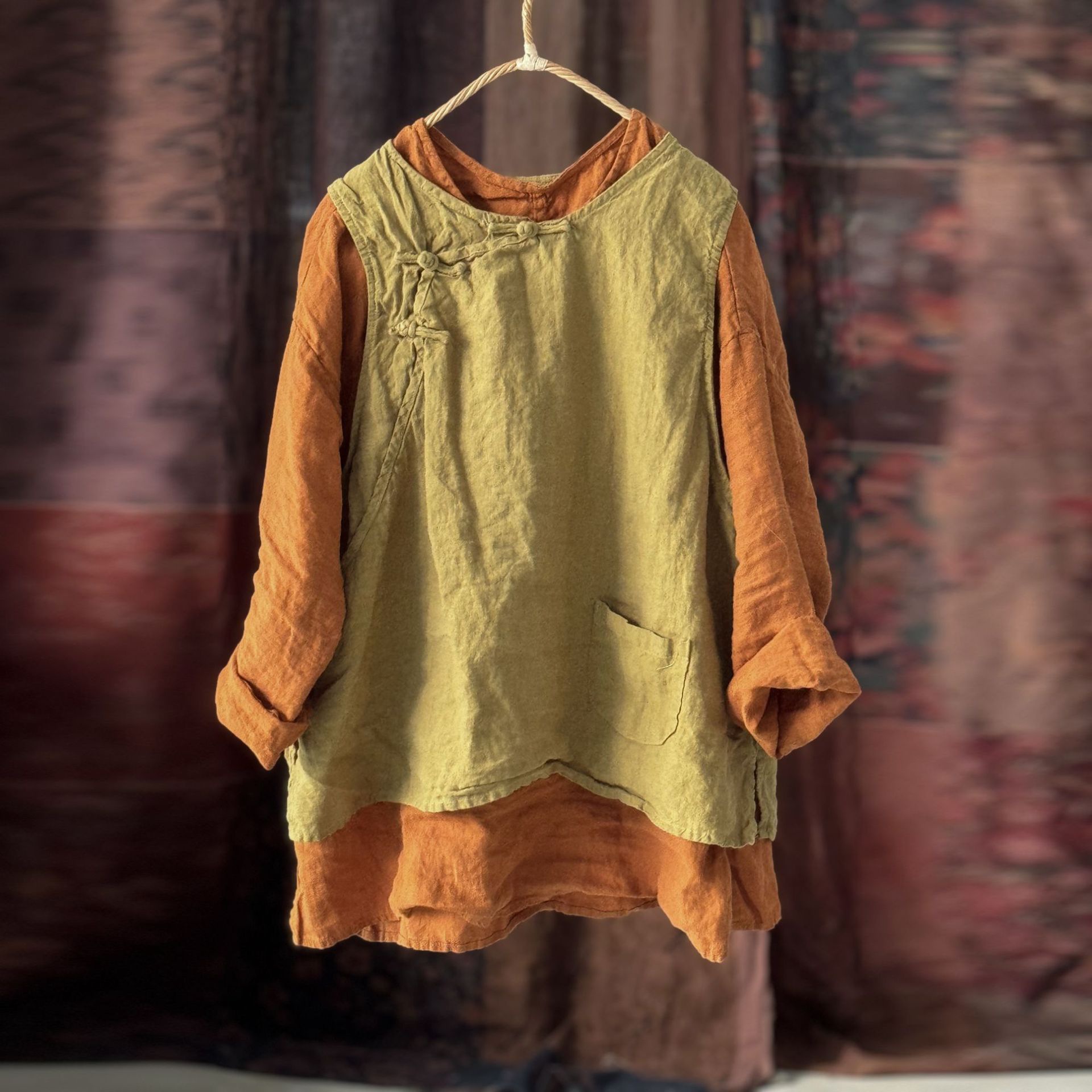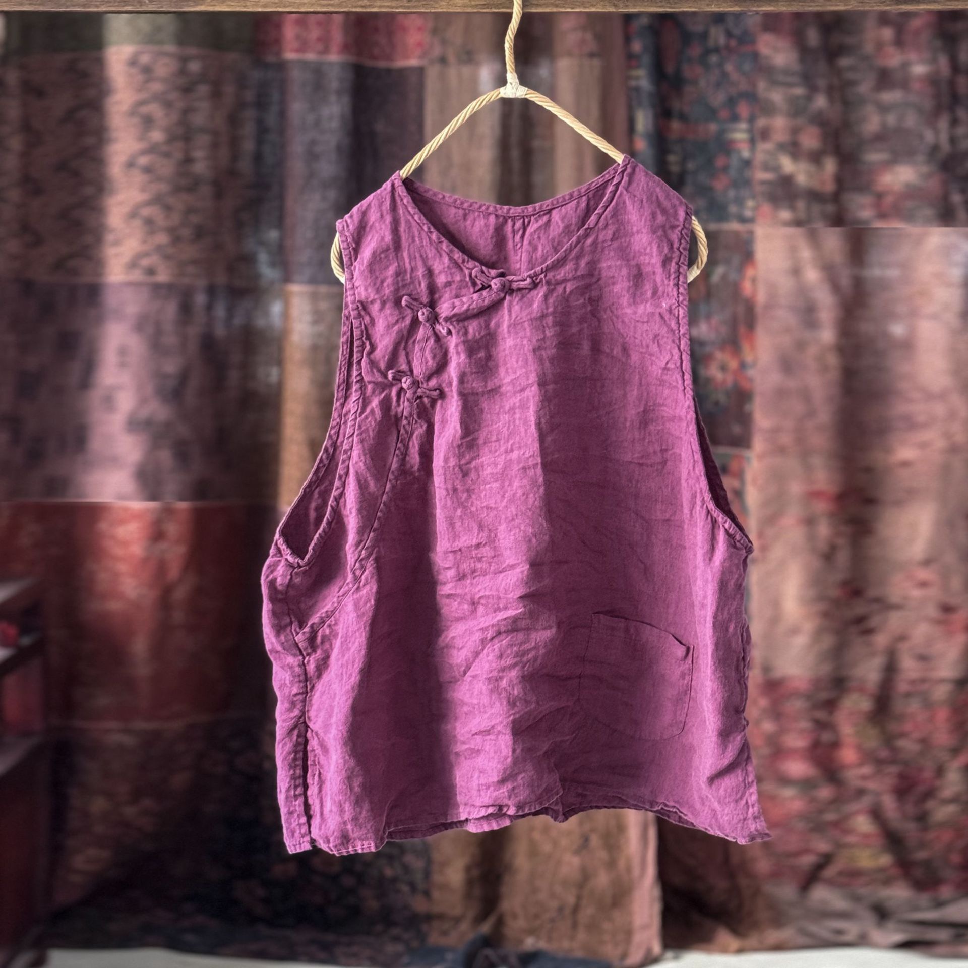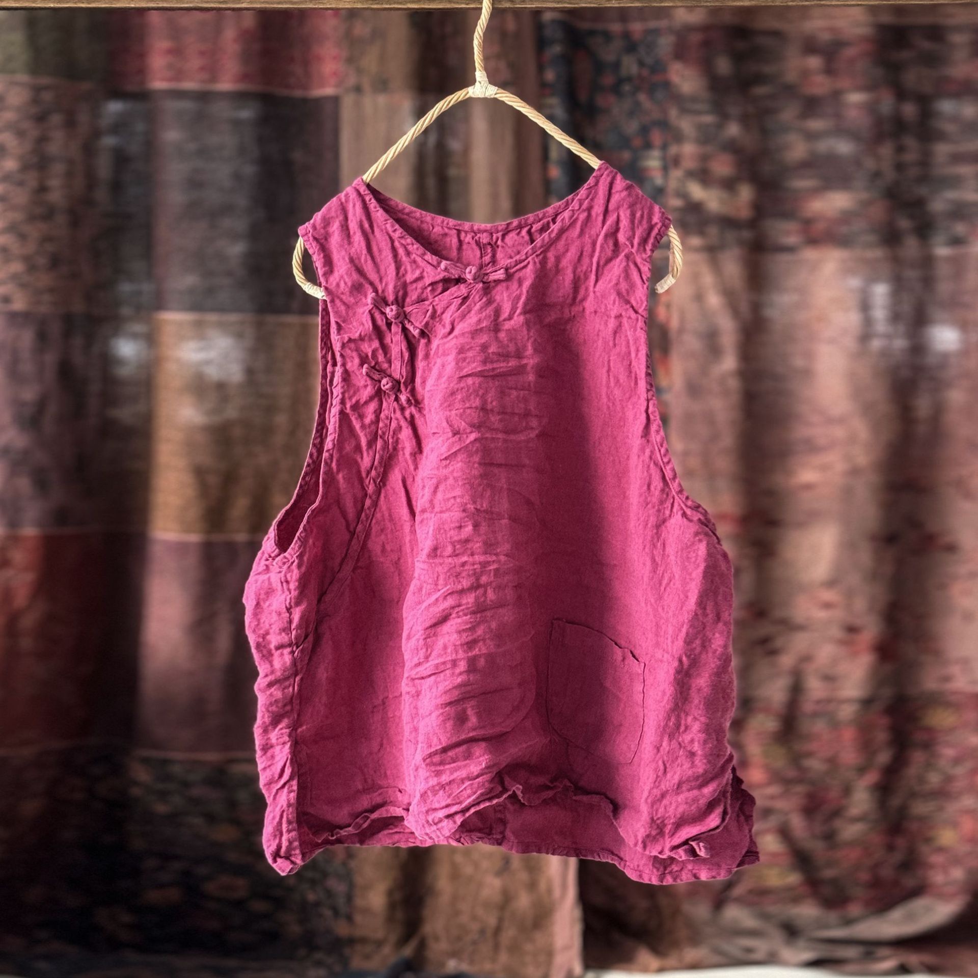 4397 ручная сшитая пряжка свободно вымытый жилет жилет высокое качество вымытый бельем ретро женская одежда