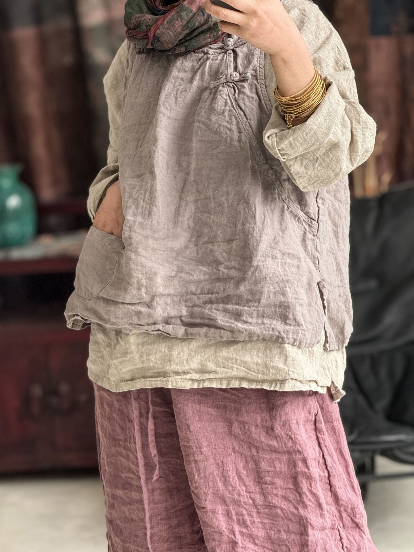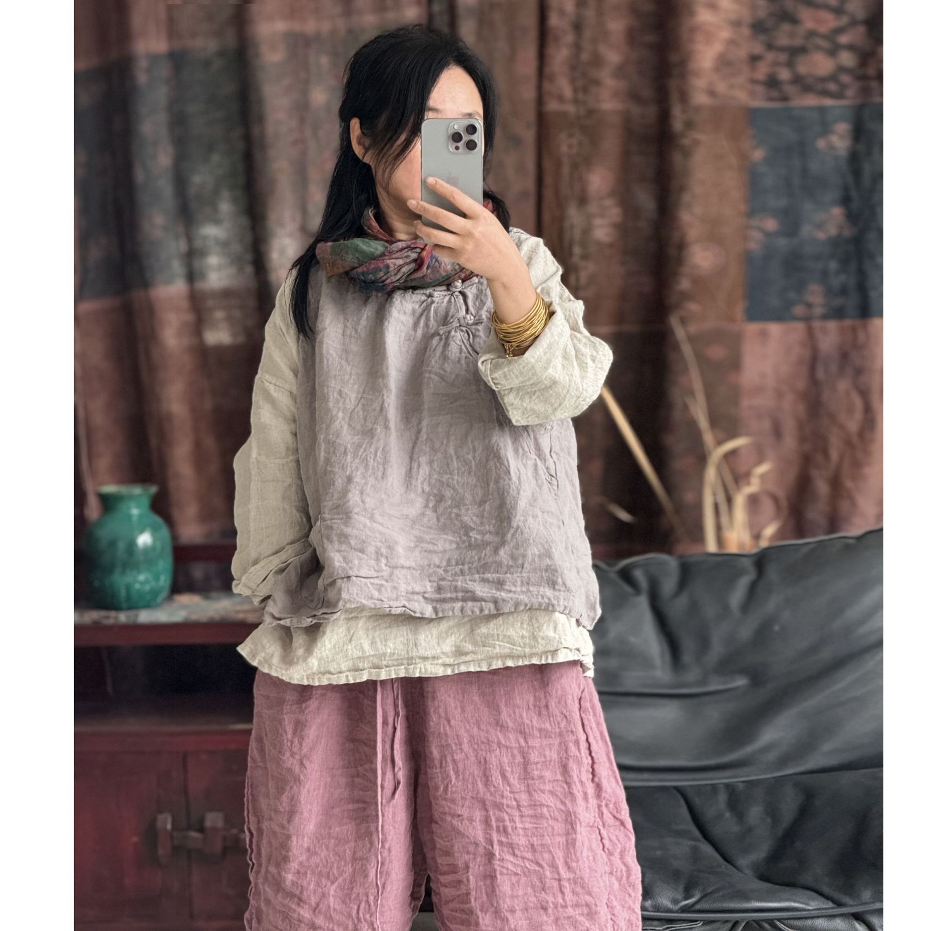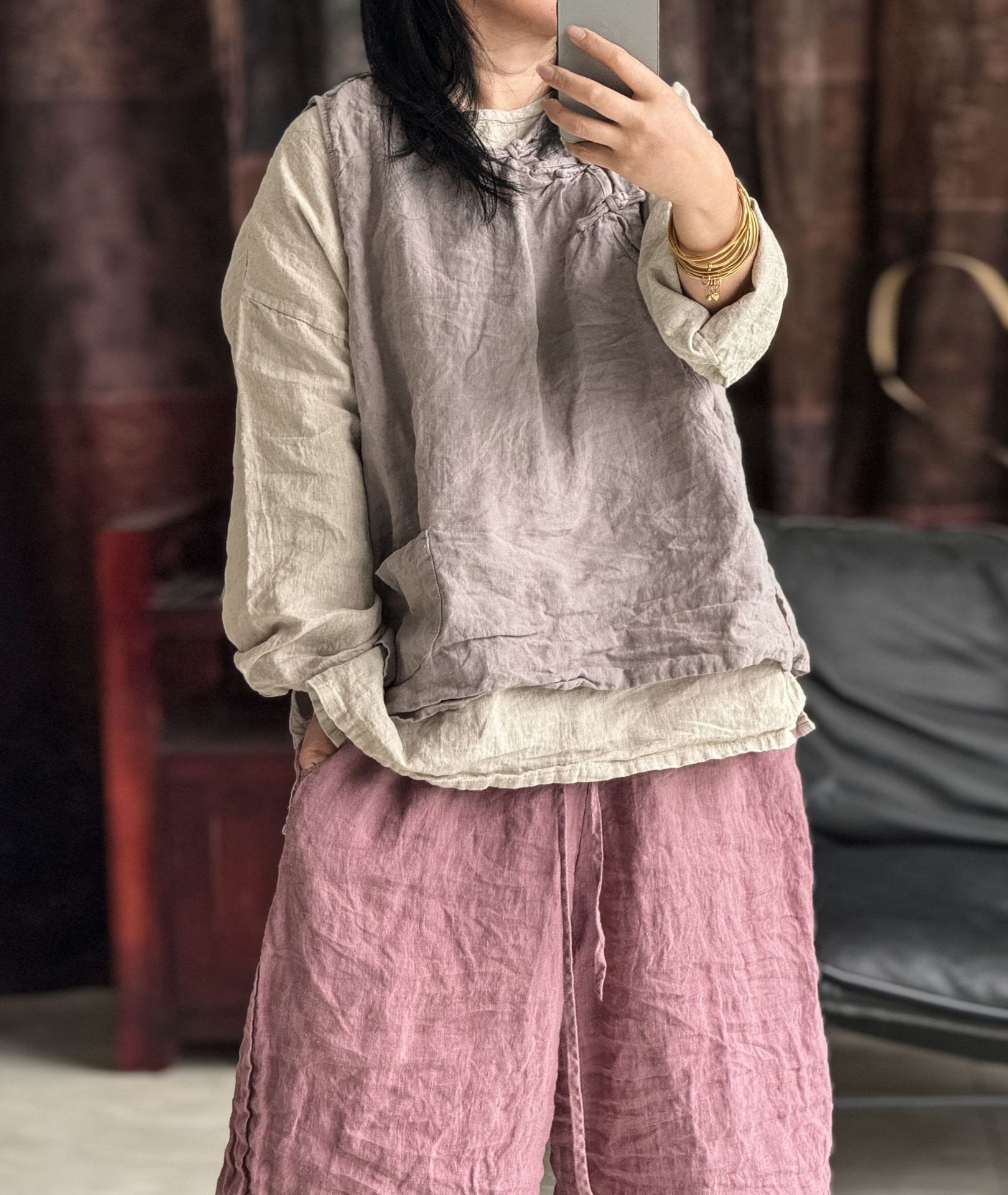 面料:砂洗亚麻