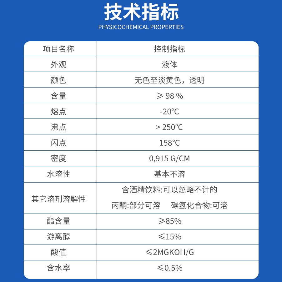 4、本品与十三烷基水杨酸酯(ESI)及十二—十三烷基马来酸酯(EMI)配合具有很好的抑制暗疮及平衡油脂分泌的作用。还有缓和红斑的作用。