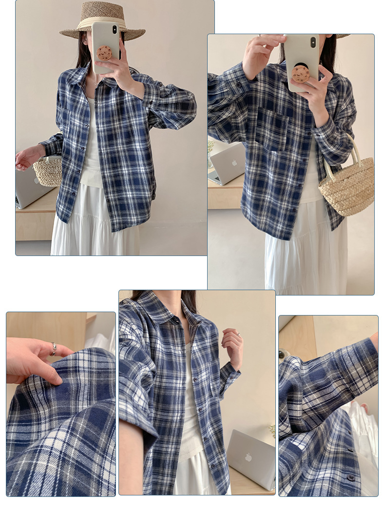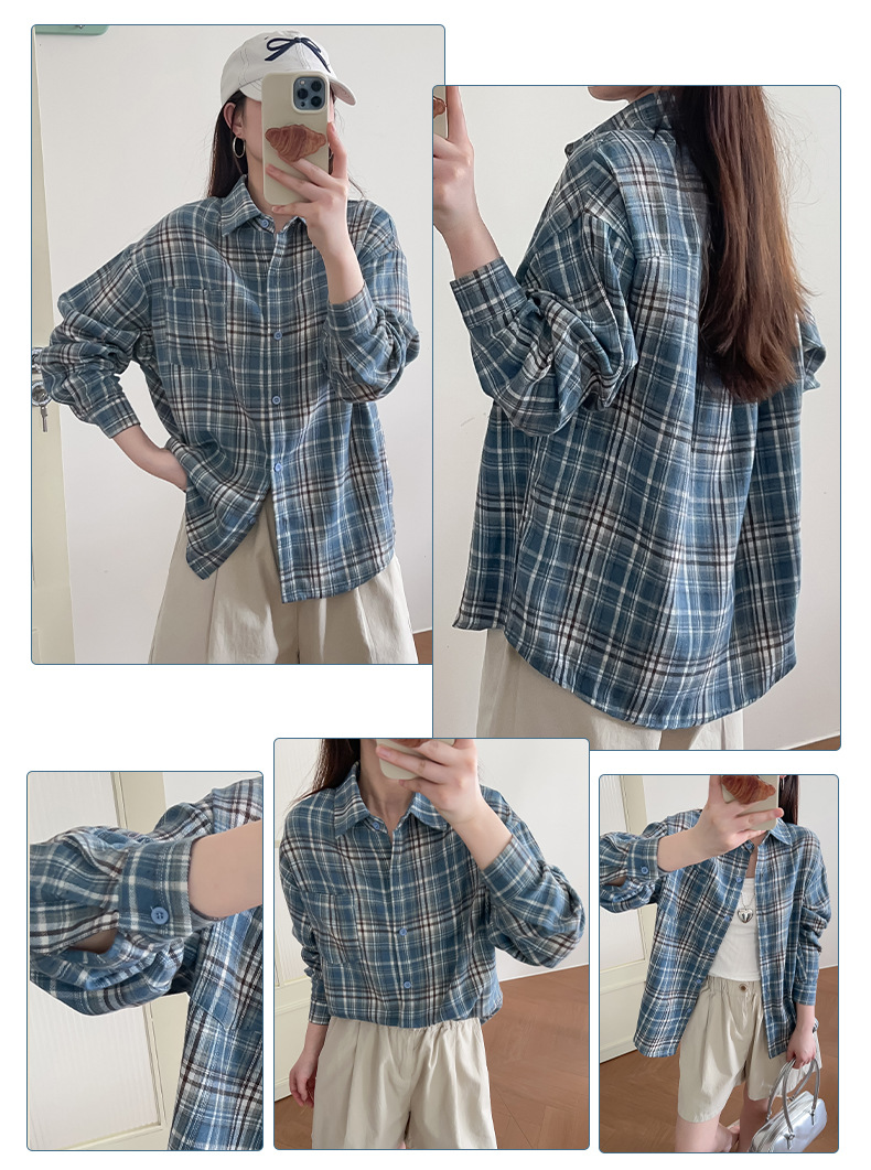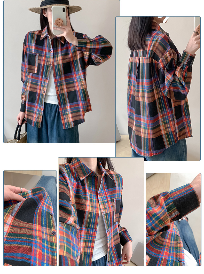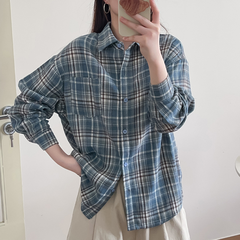 Весенние и осенние американские клетчатые рубашки женские новые гонконгские тренды ретро свободные модные клетчатые рубашки с длинными рукавами