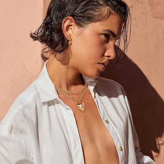 Новинка для трансграничной торговли: модное и стильное ожерелье-сердце в нежном стиле, позолоченное 18-каратным золотом, с нелиняющим изображением персикового сердца, цепочка для свитера, универсальная цепочка на ключицу.