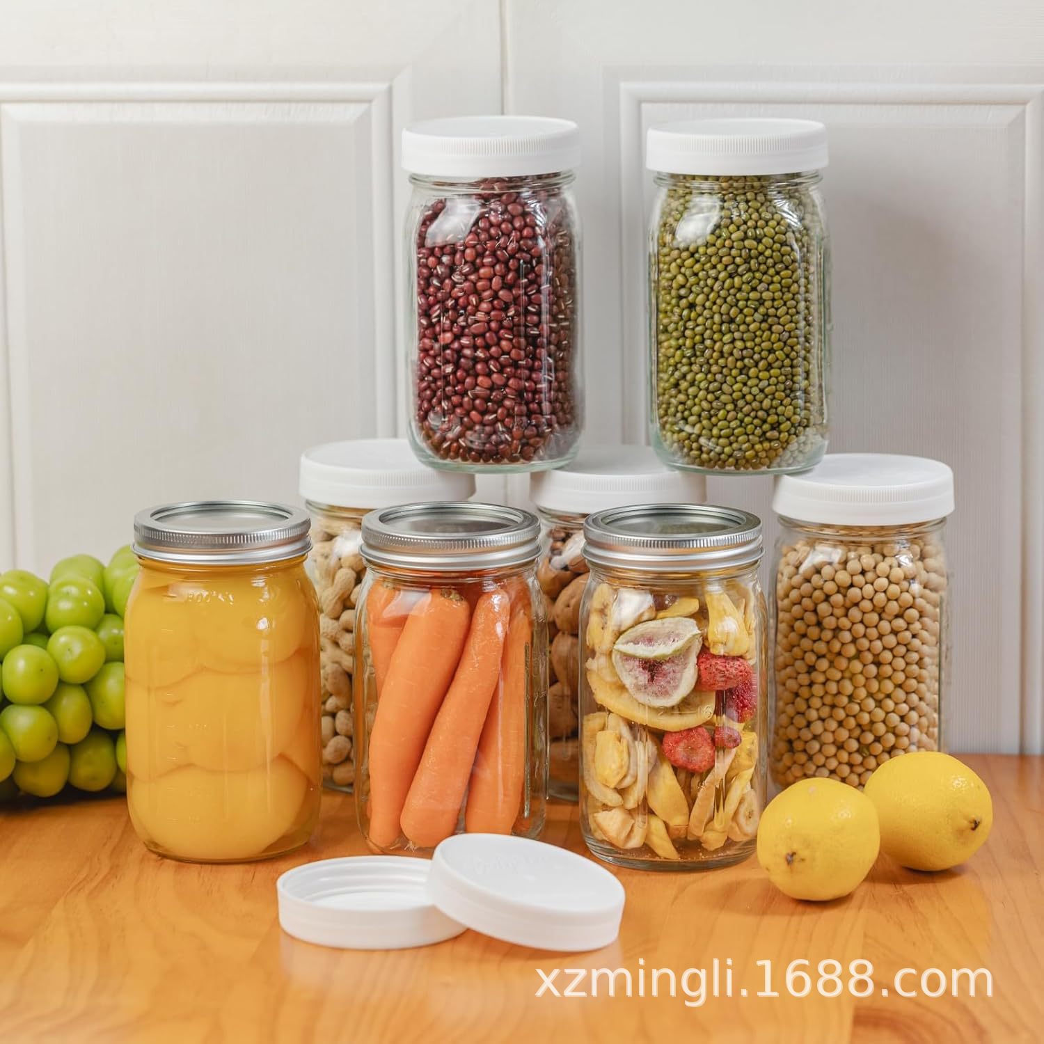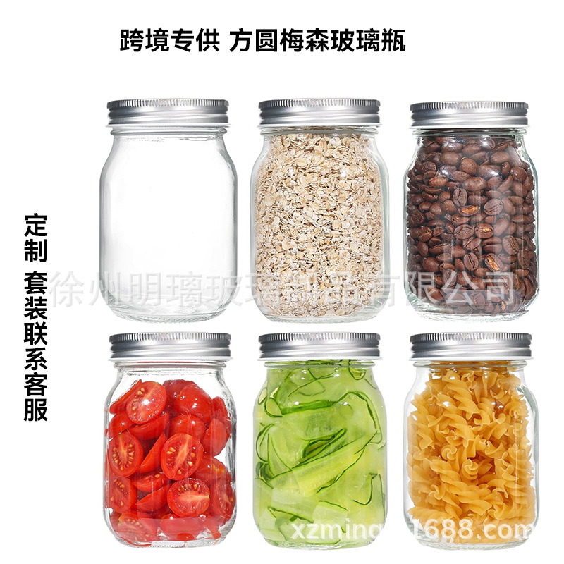Оптовые стеклянные банки для пищевых продуктов: квадратные и круглые банки с крышками, утолщенные прозрачные круглые стеклянные банки, банки для солений, банки Мейсон.