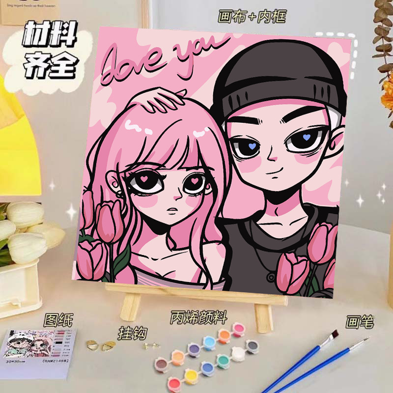 Diy детская цифровая живопись рисованной продвинутого чувства исцеления мультфильм масляной живописи киоск оптом 20*20cm небольшой размер