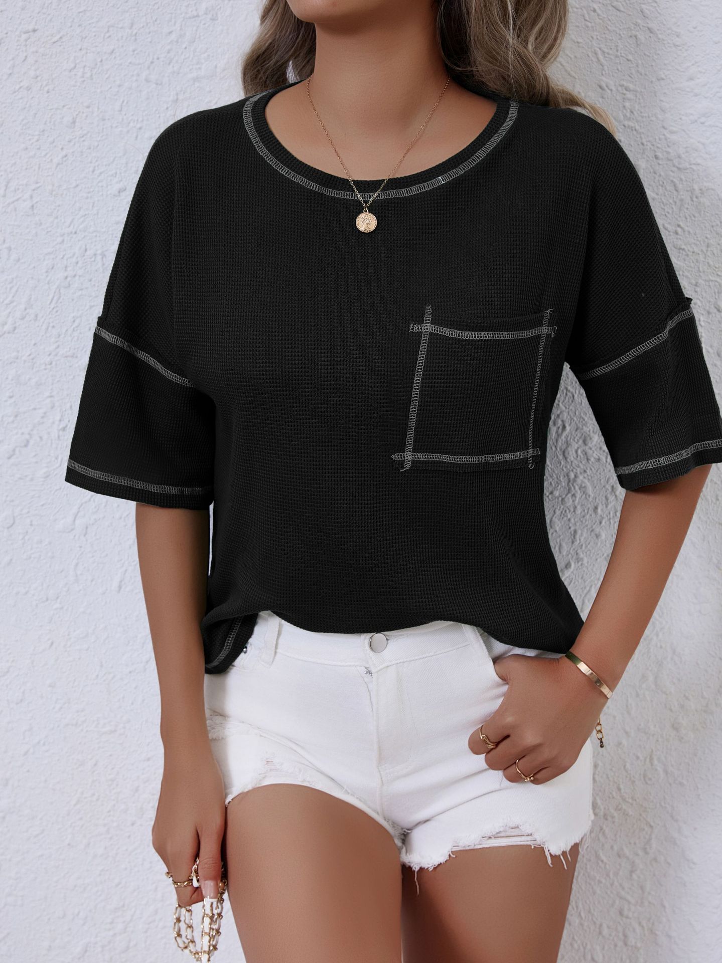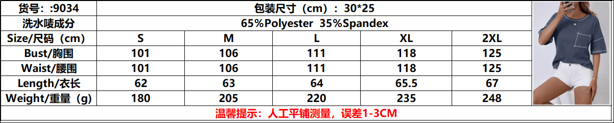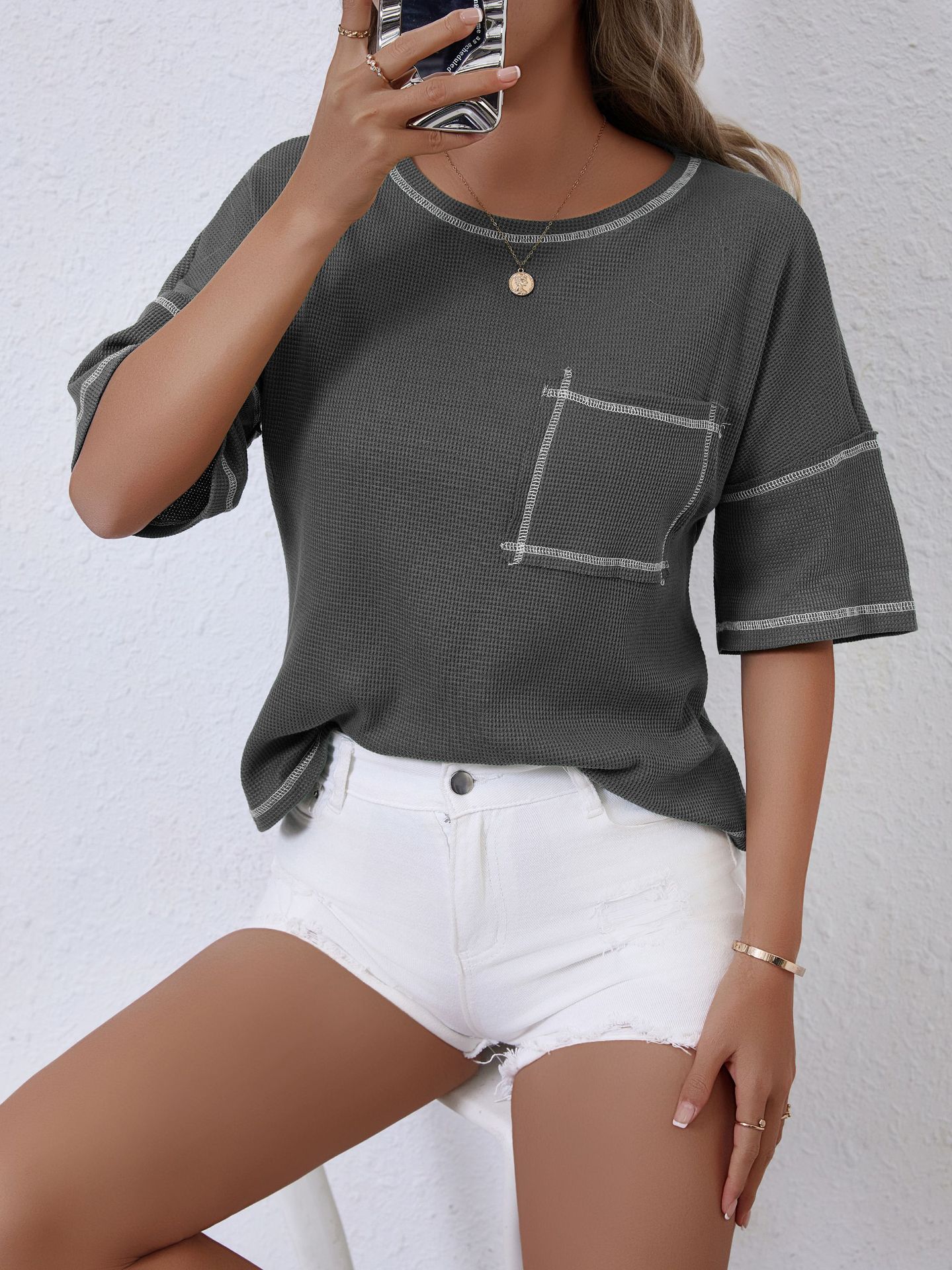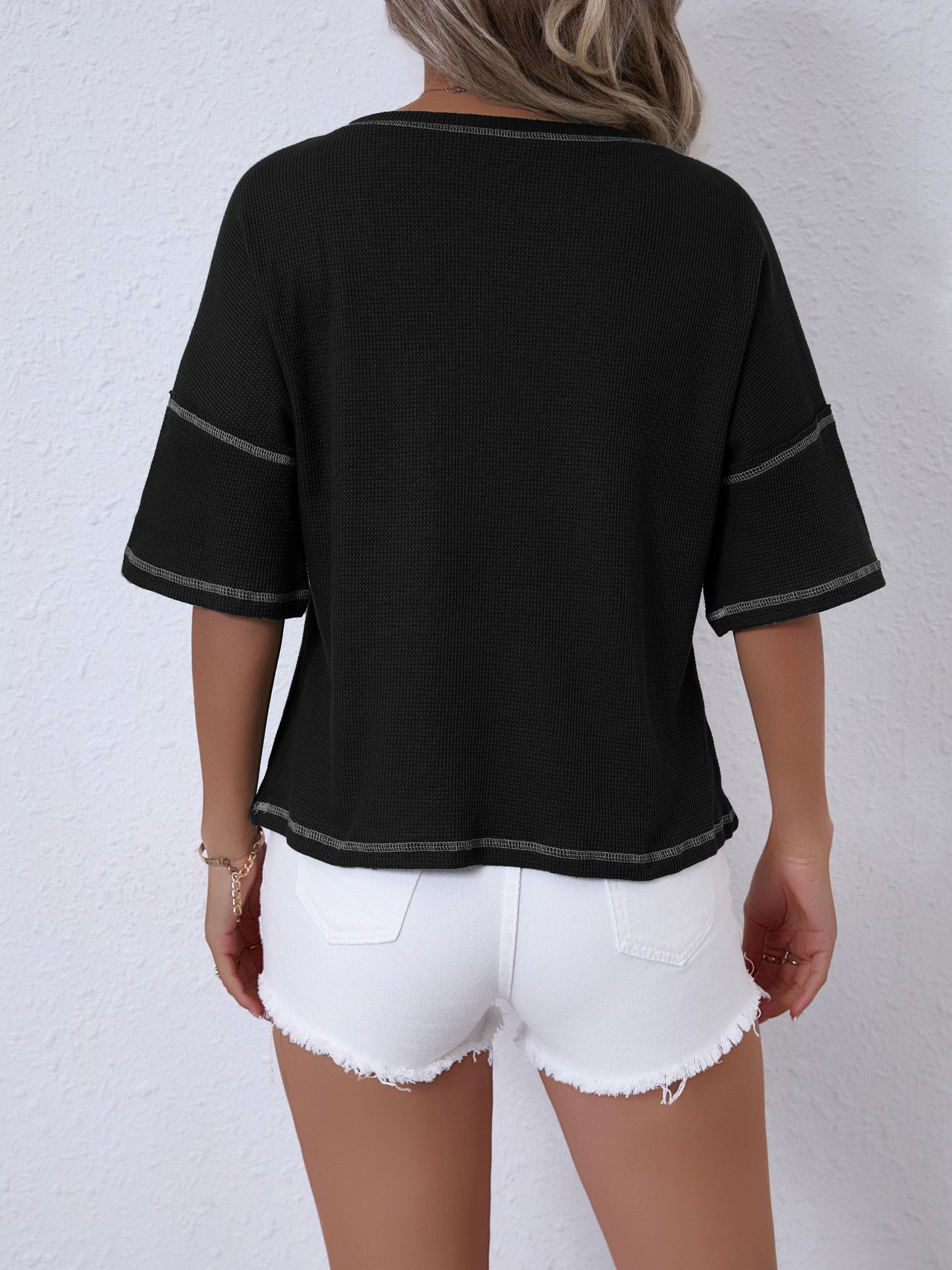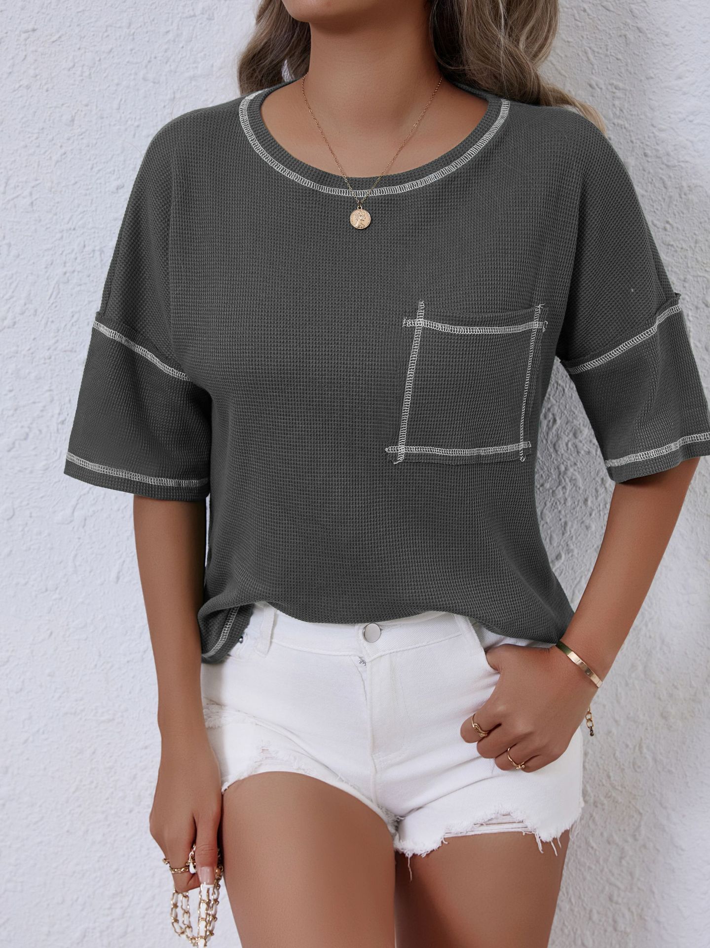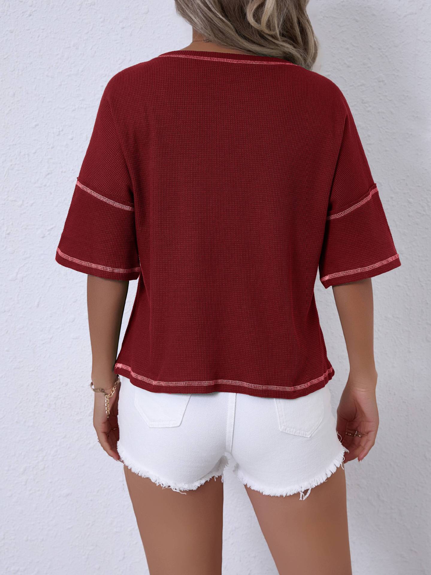 Женская футболка из вафельного трикотажа с круглым вырезом и коротким рукавом, однотонная, повседневная, универсальная, коллекция Весна/Лето 2025, для внешней торговли Amazon, в европейском и американском стиле.