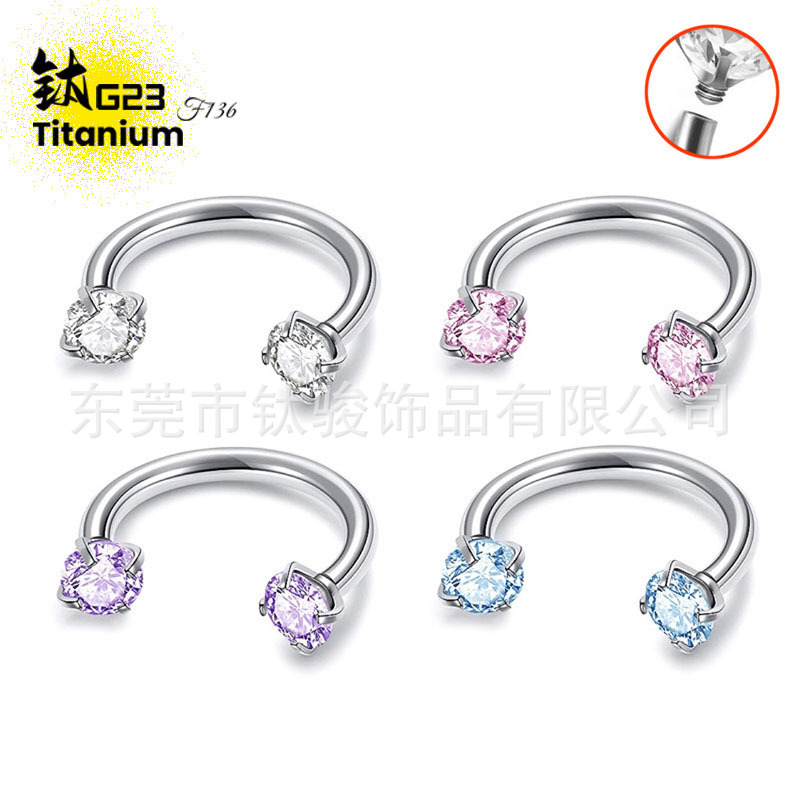 16G титанового сплава внутренняя резьба подкова кольцо носовое кольцо F136 двухголовый циркон внутренняя зубная губная петля носовой перегородки украшения