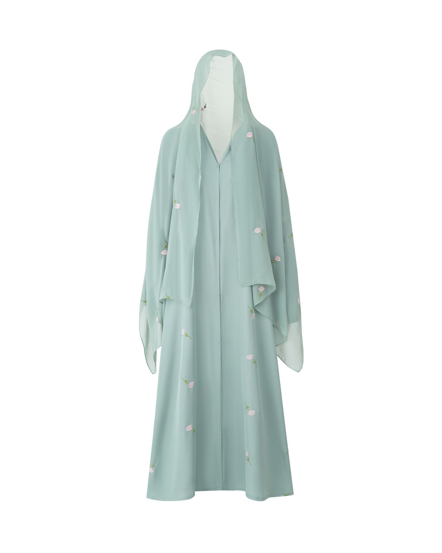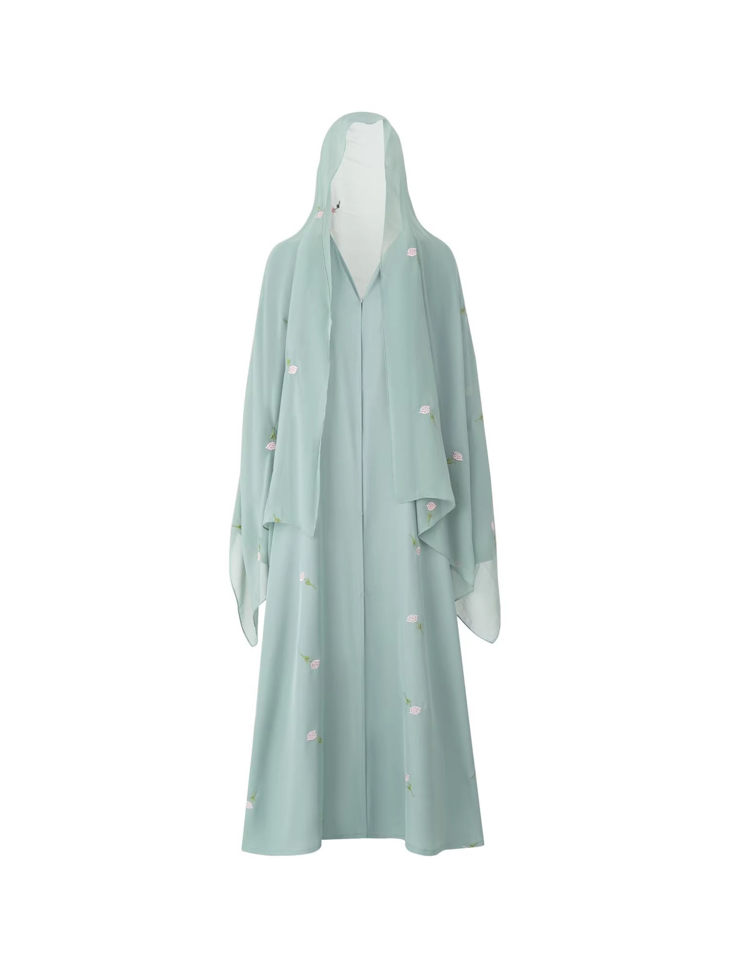 Одежда с зелеными цветами; Розовый платок с большими цветами; Зеленый платок с большим цветком; Одежда с большими розовыми цветами; Зеленый комплект одежды с крупным цветочным узором (одежда + платок)); Комплект одежды с розовым цветочным принтом (платок + одежда)